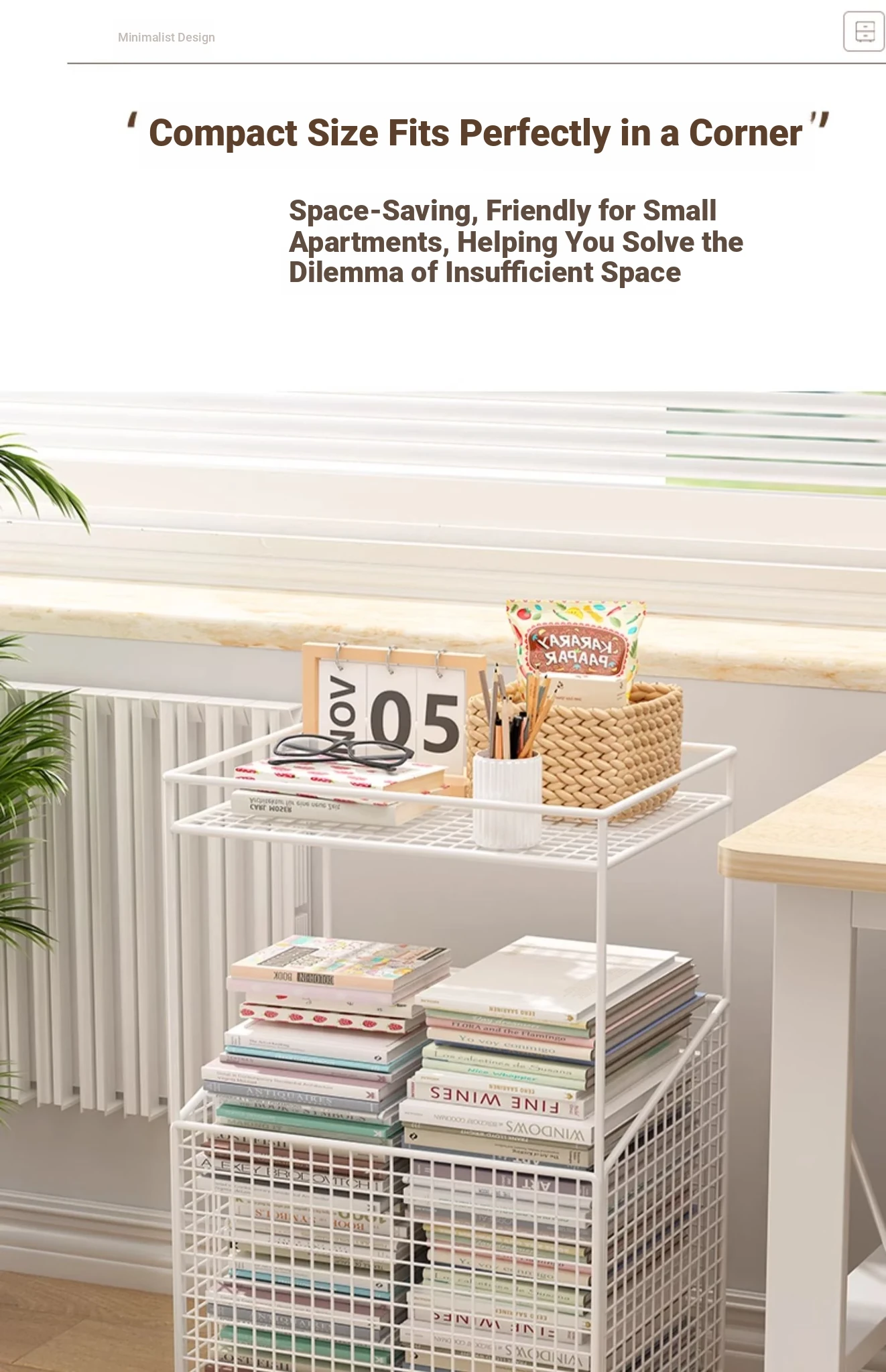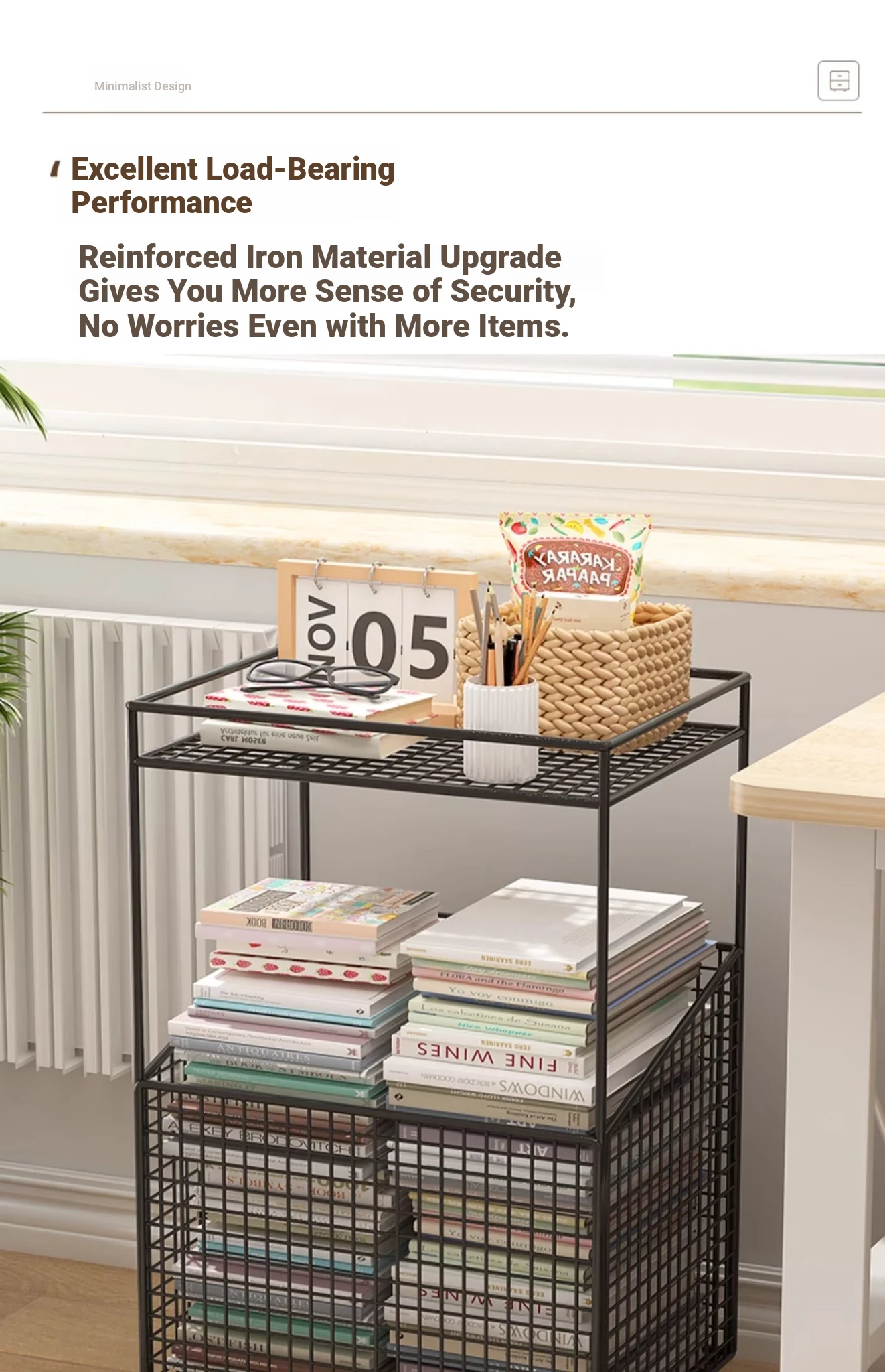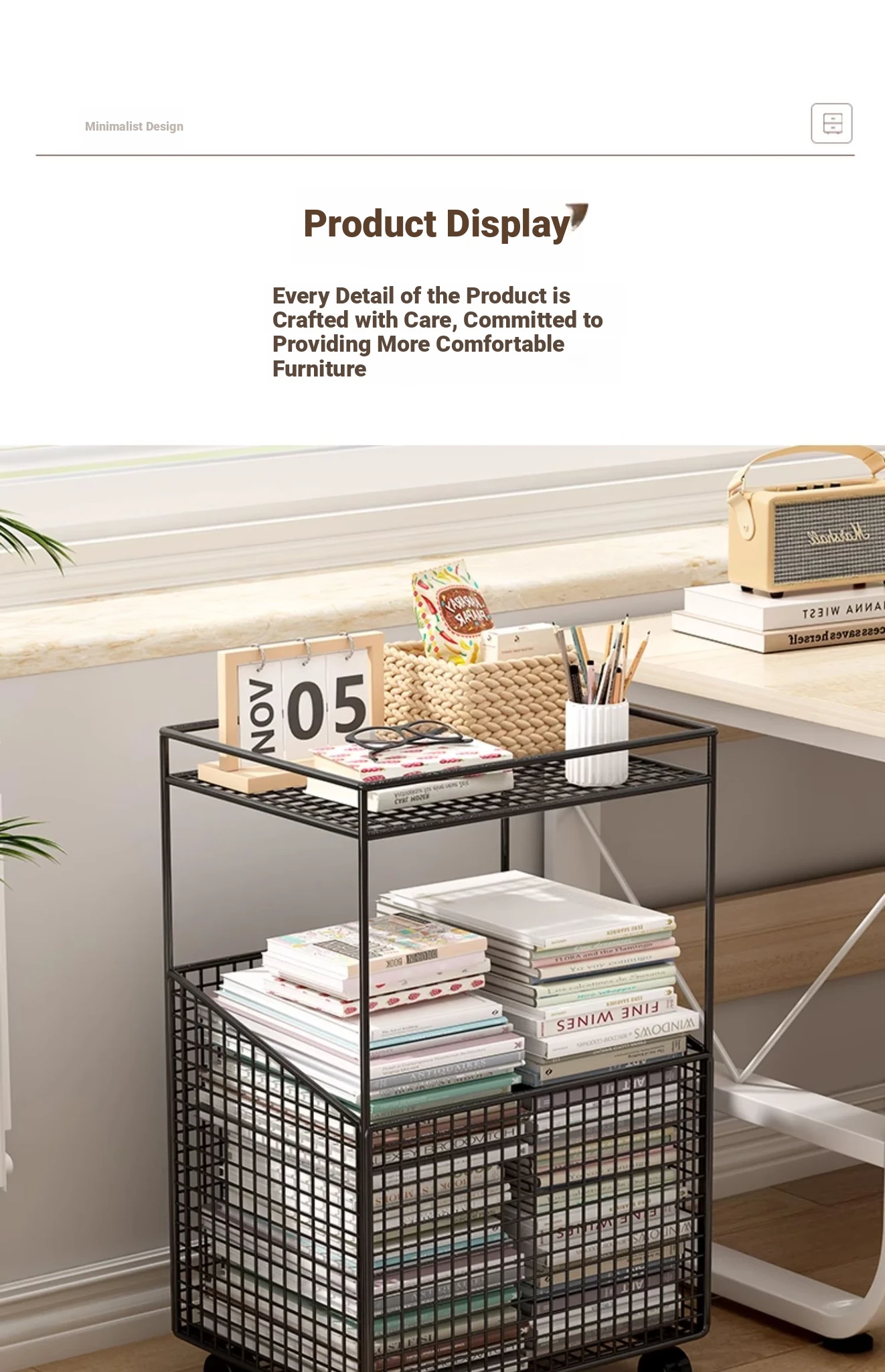 Mobile Bookshelf for Kids - Rolling Storage Cabinet Under Desk with Book Organizer and Backpack Rack, Simple and Stylish Freestanding Bookshelf for Home Use