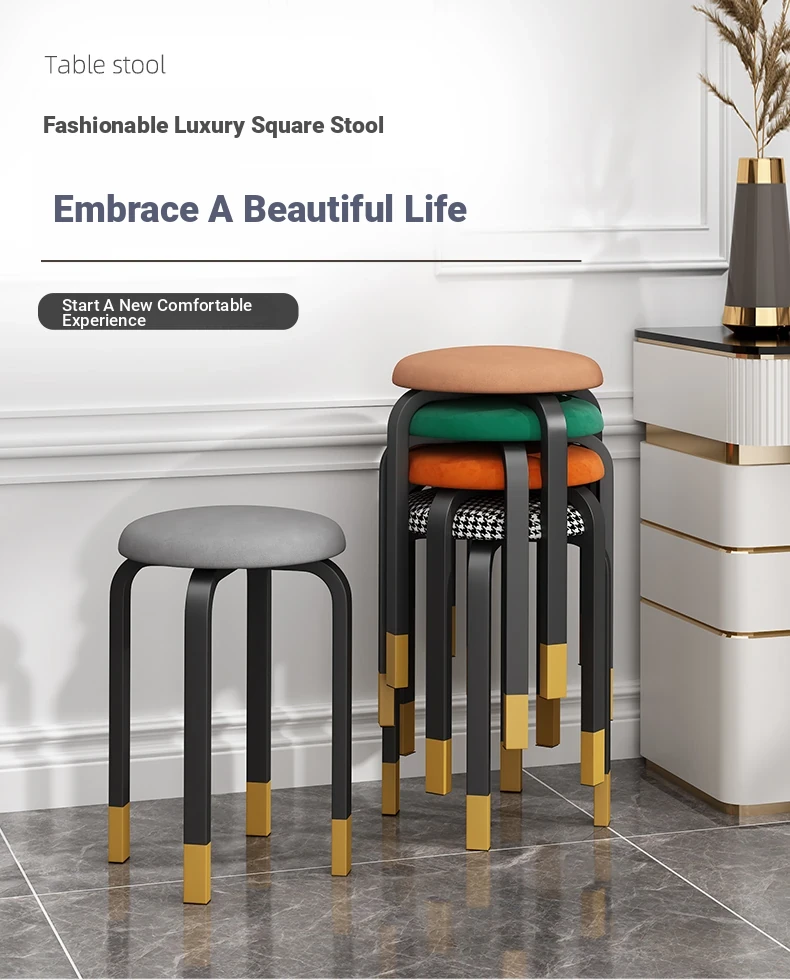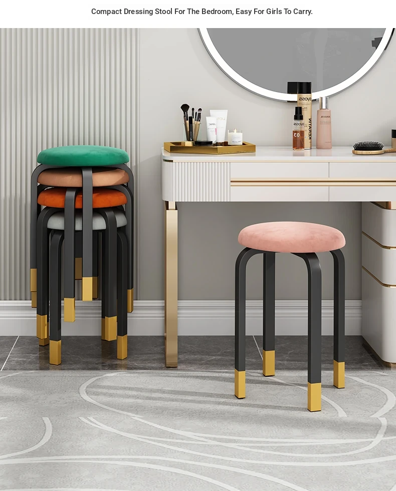 Modern Minimalist Makeup Stool - Versatile Low Stool for Home Use, Dining Table, or Living Room; Stackable Round Chair for Convenient Storage.