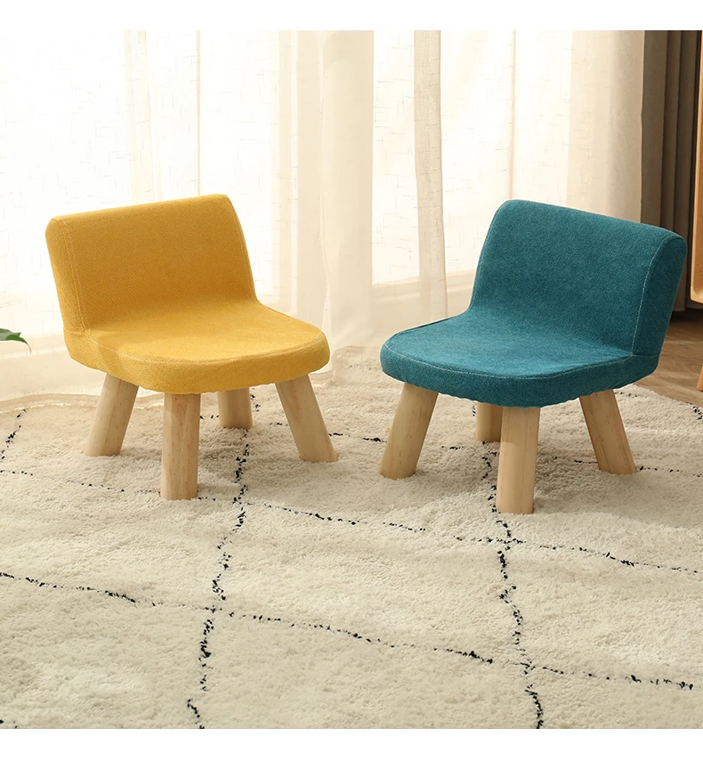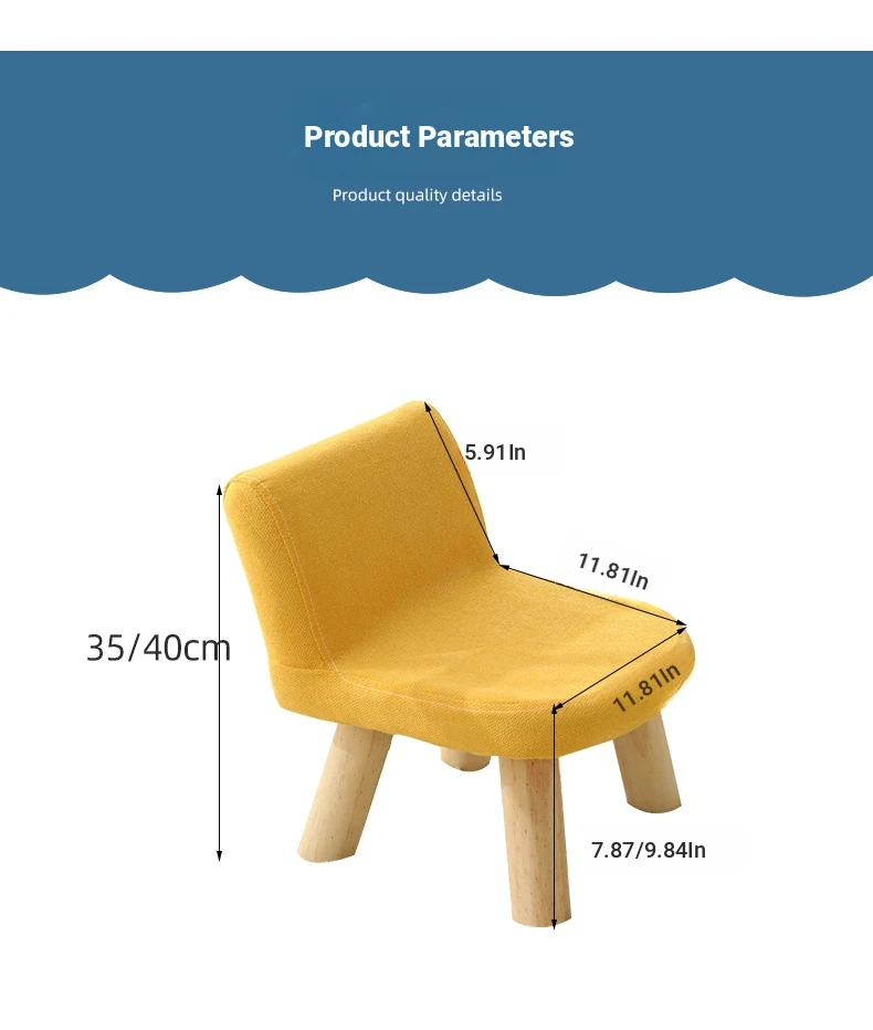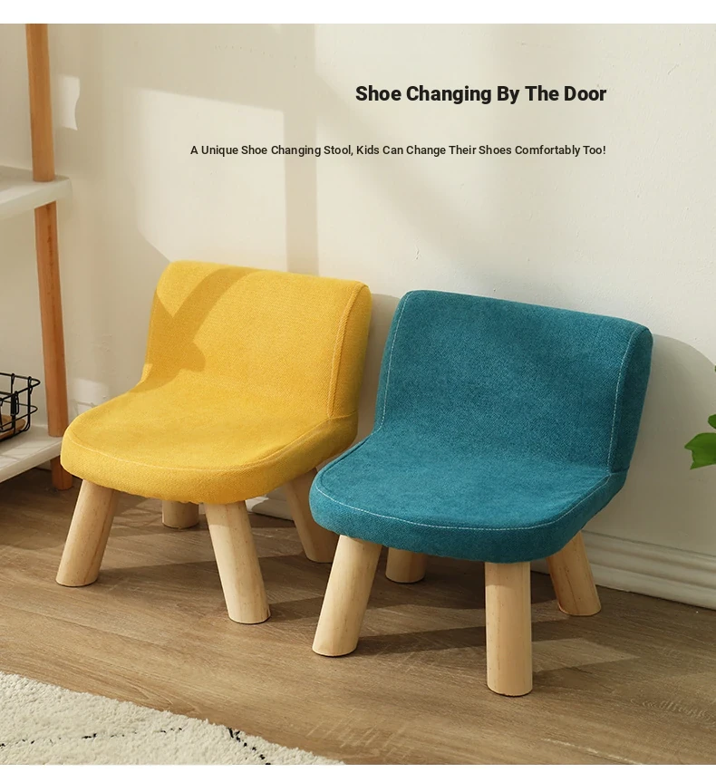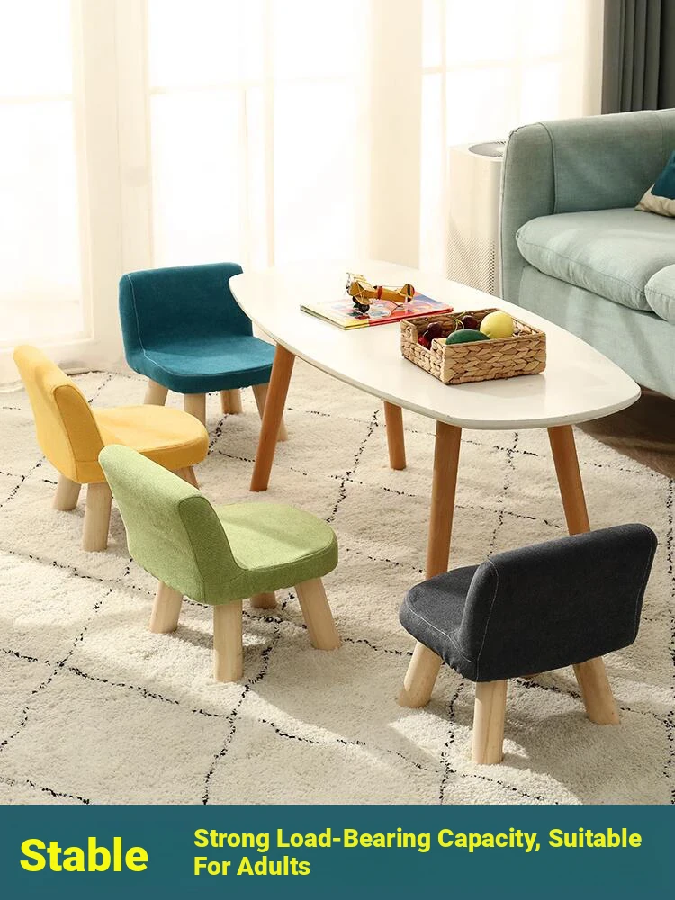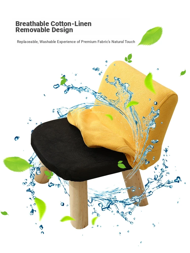 Modern Minimalist Solid Wood Stool - Stylish Low Chair with Fabric Backrest for Kids, Perfect for Home Use, Versatile Square Design, Trendy and Functional!