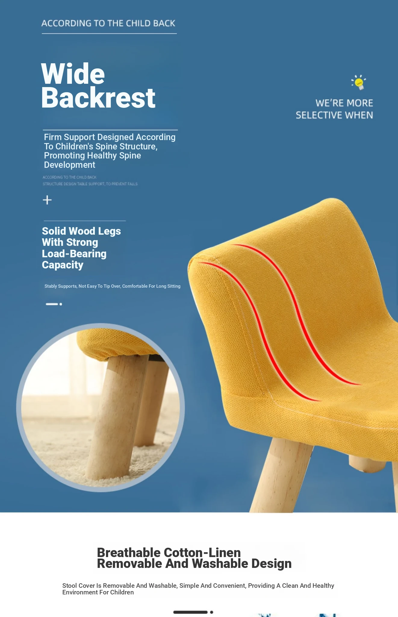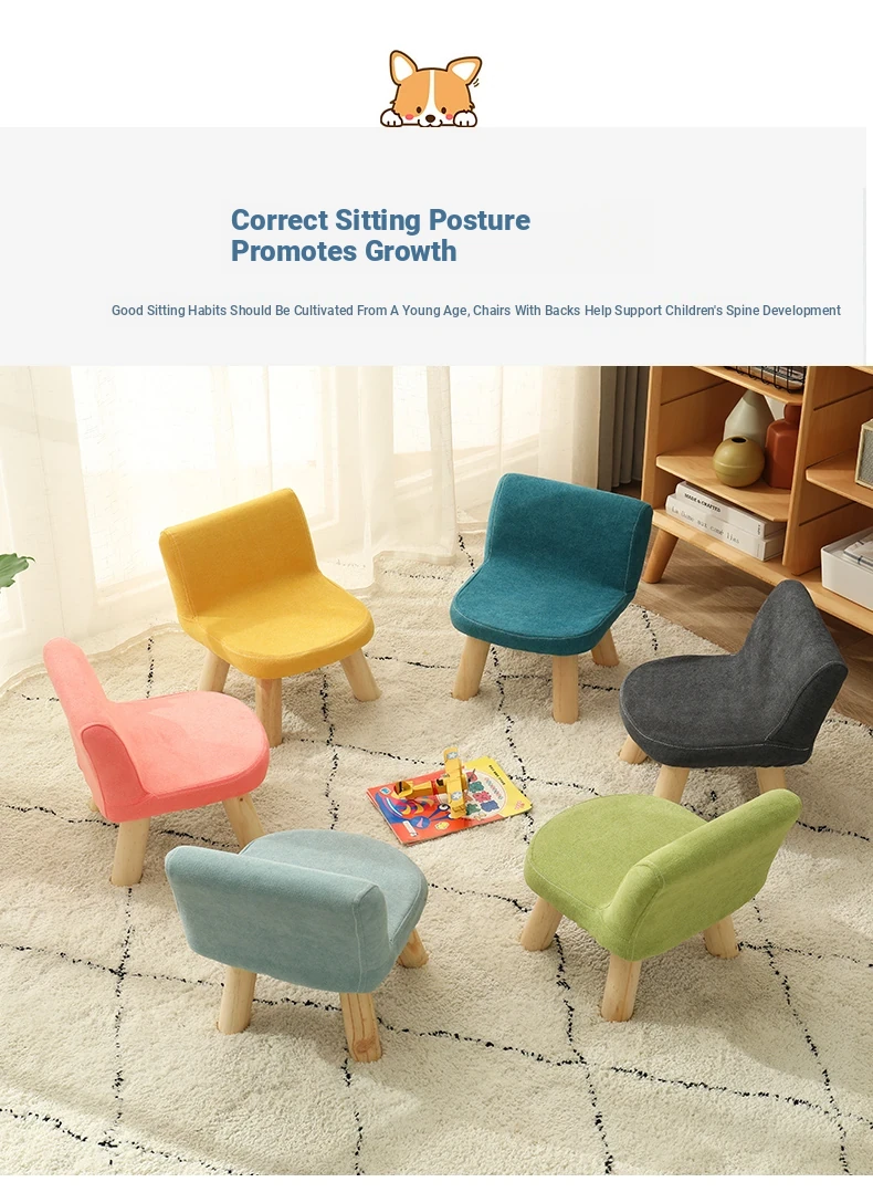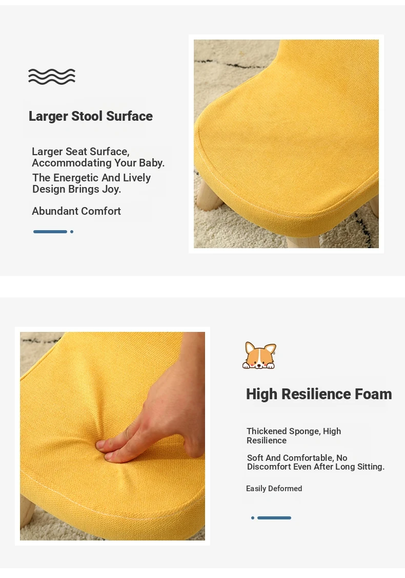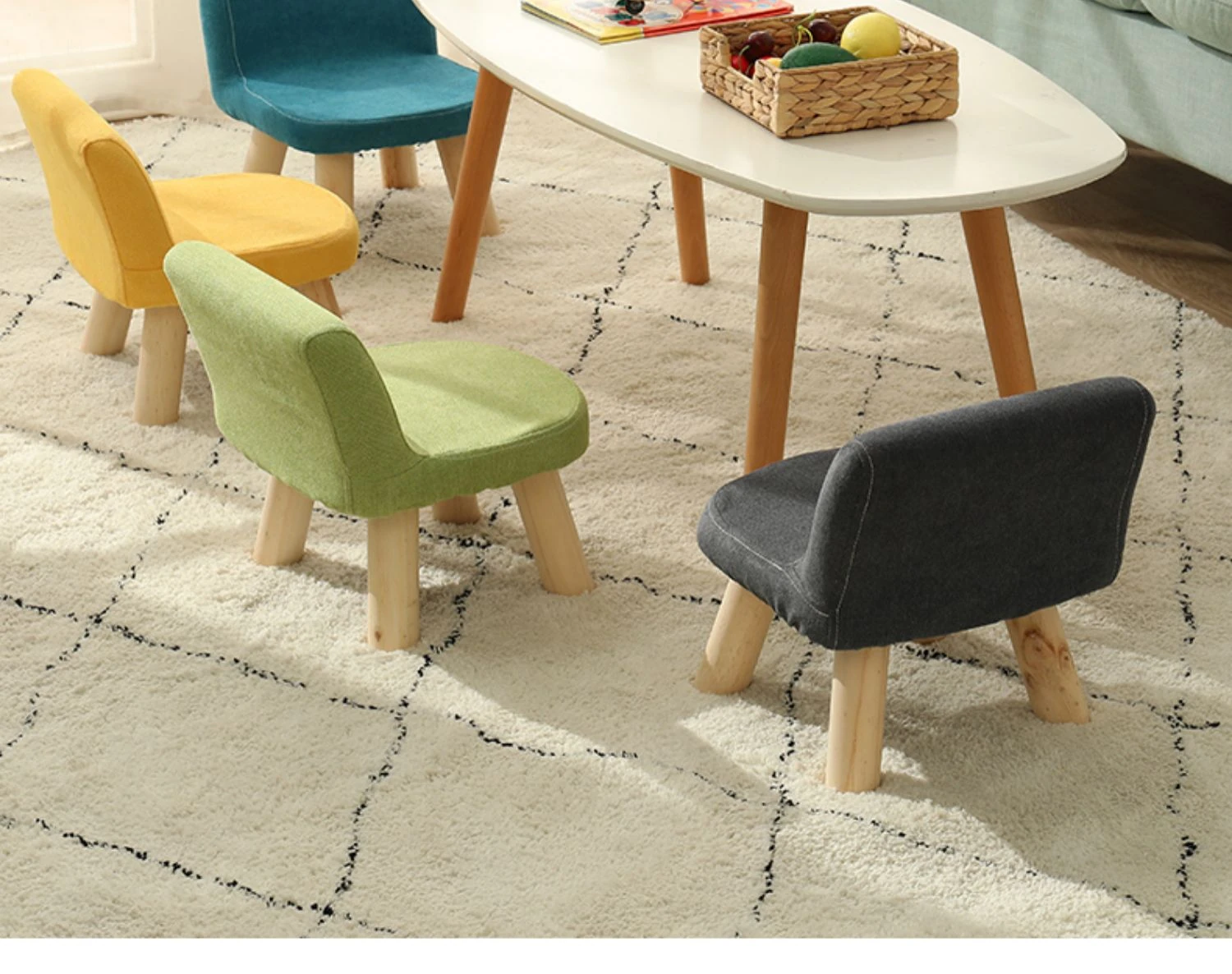 Modern Minimalist Solid Wood Stool - Stylish Low Chair with Fabric Backrest for Kids, Perfect for Home Use, Versatile Square Design, Trendy and Functional!