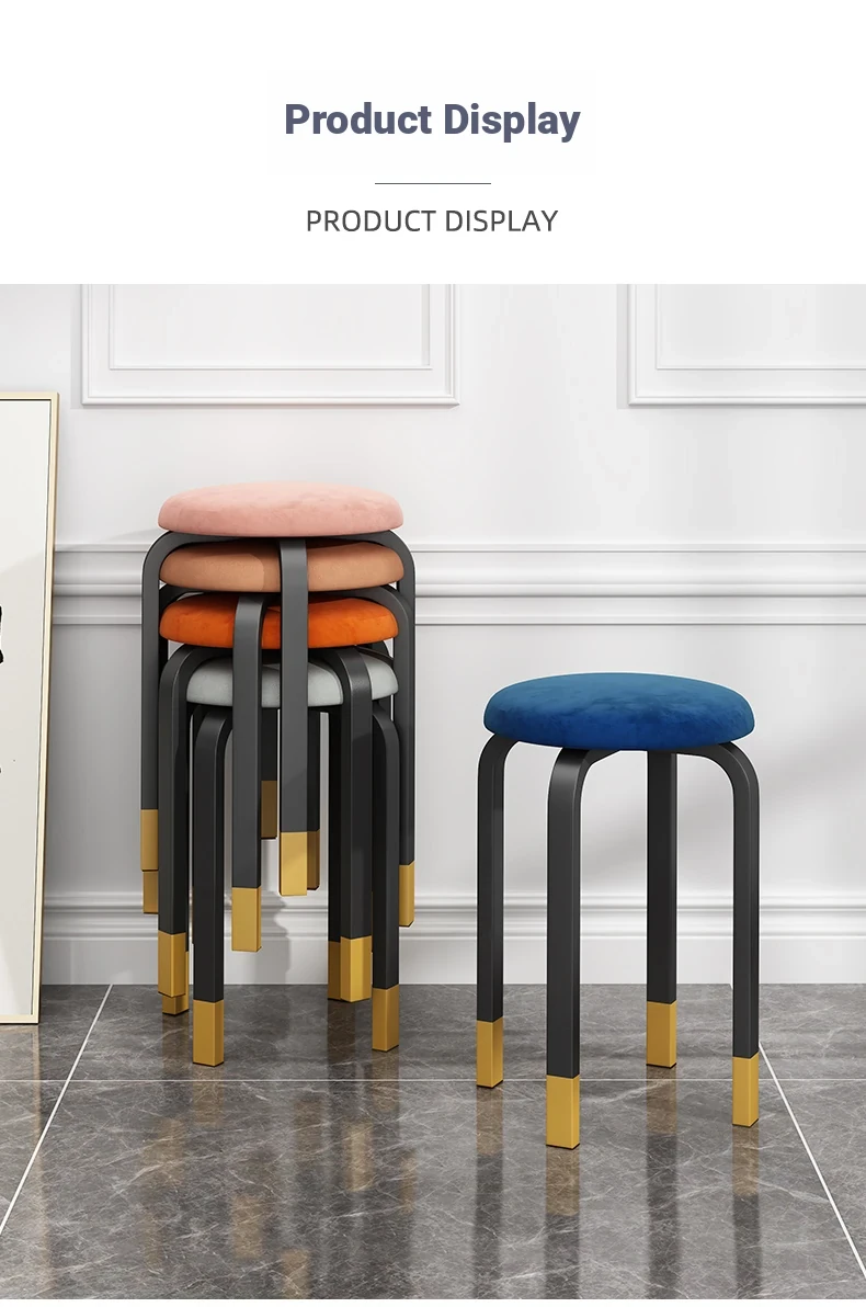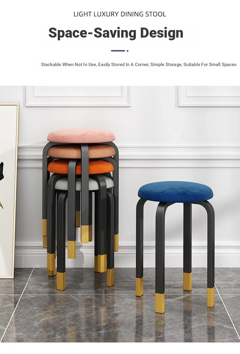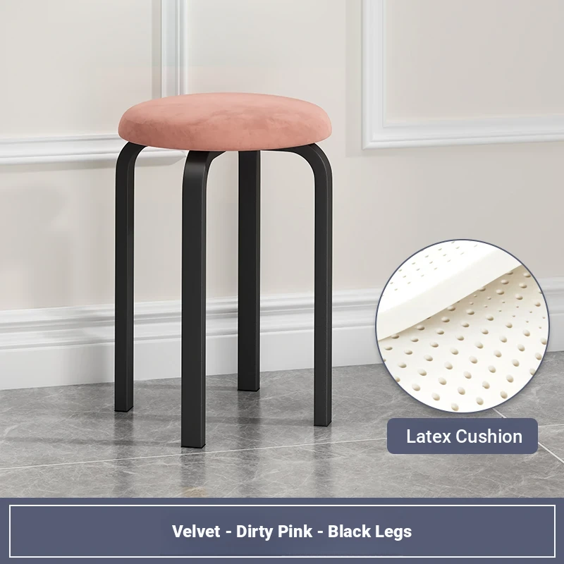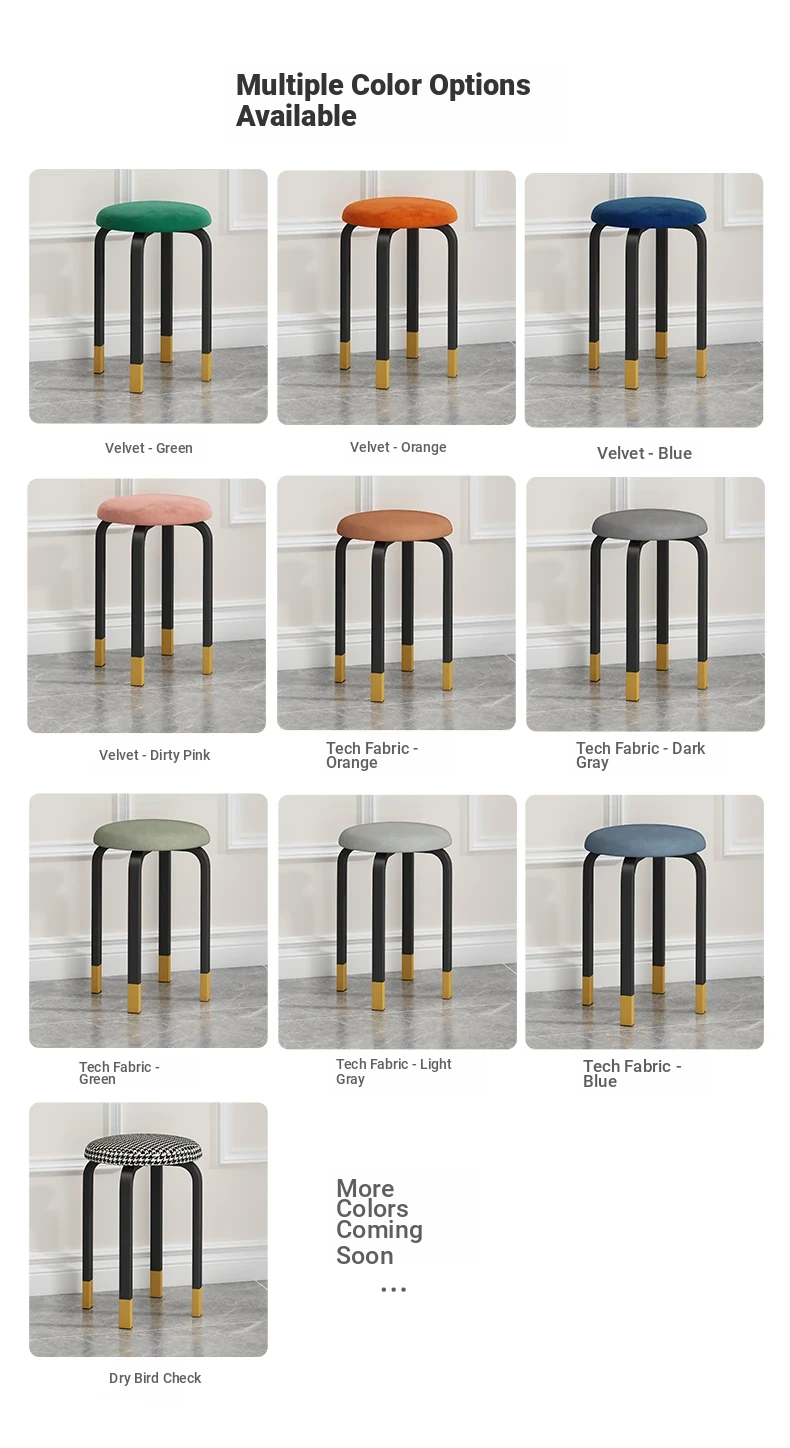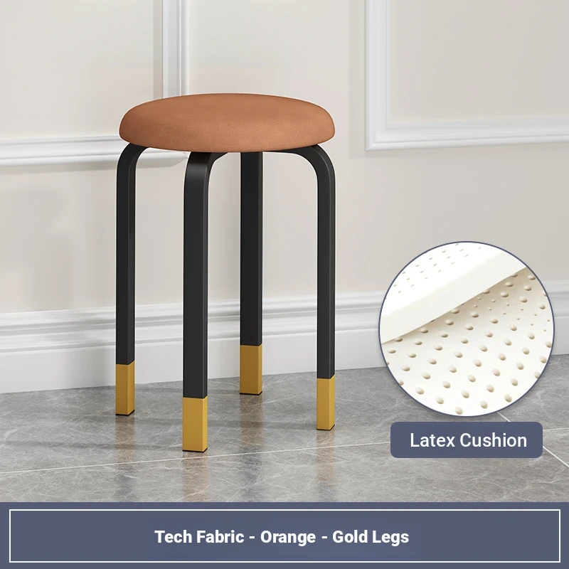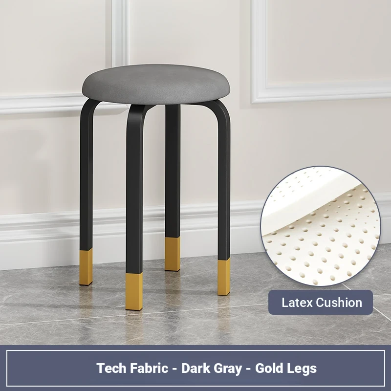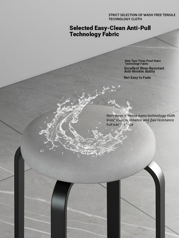 Modern Stackable Round Stool for Home - Trendy Minimalist Design, Easy-Clean Tech Fabric, Perfect for Living Room and Dining, Chic Vanity Seating Solution.