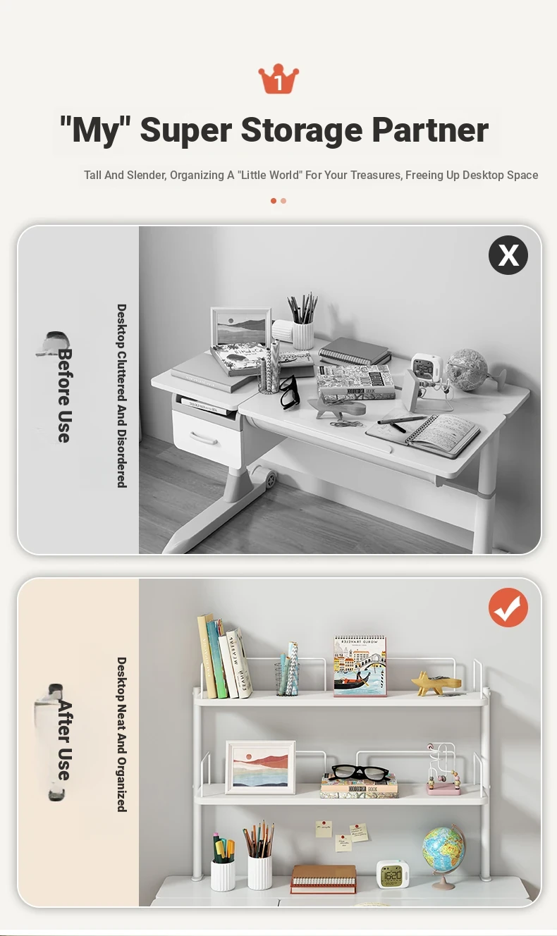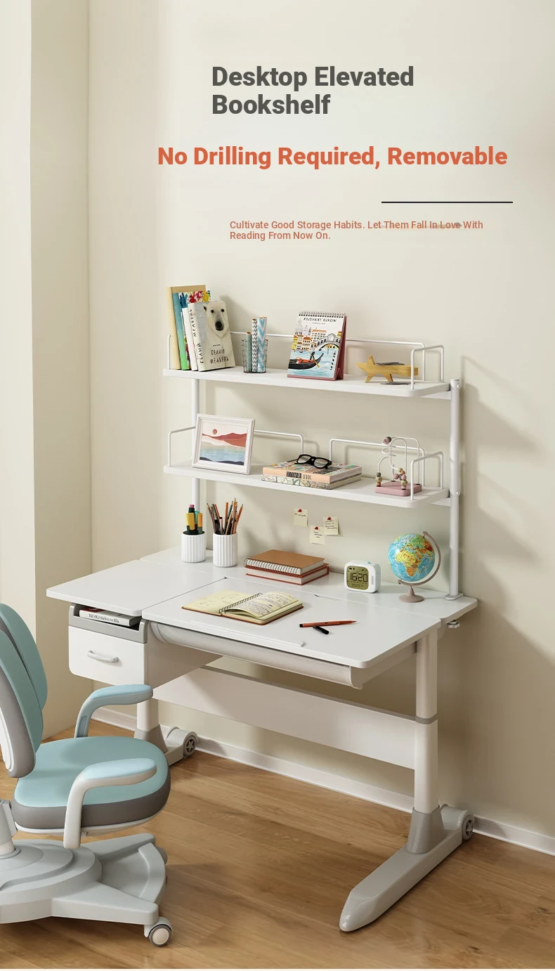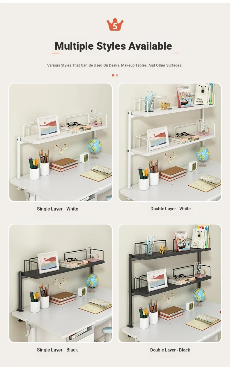 Multifunctional Desktop Bookshelf Organizer for Kids - Multi-Layer Study Desk with Bookends and Elevated Storage Shelf for Learning and Play