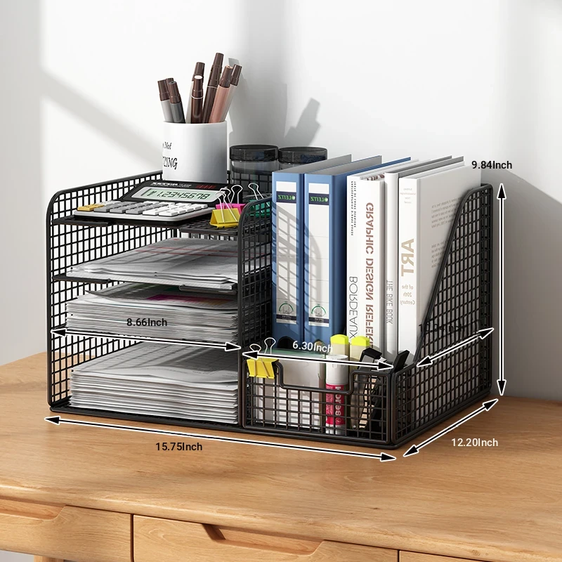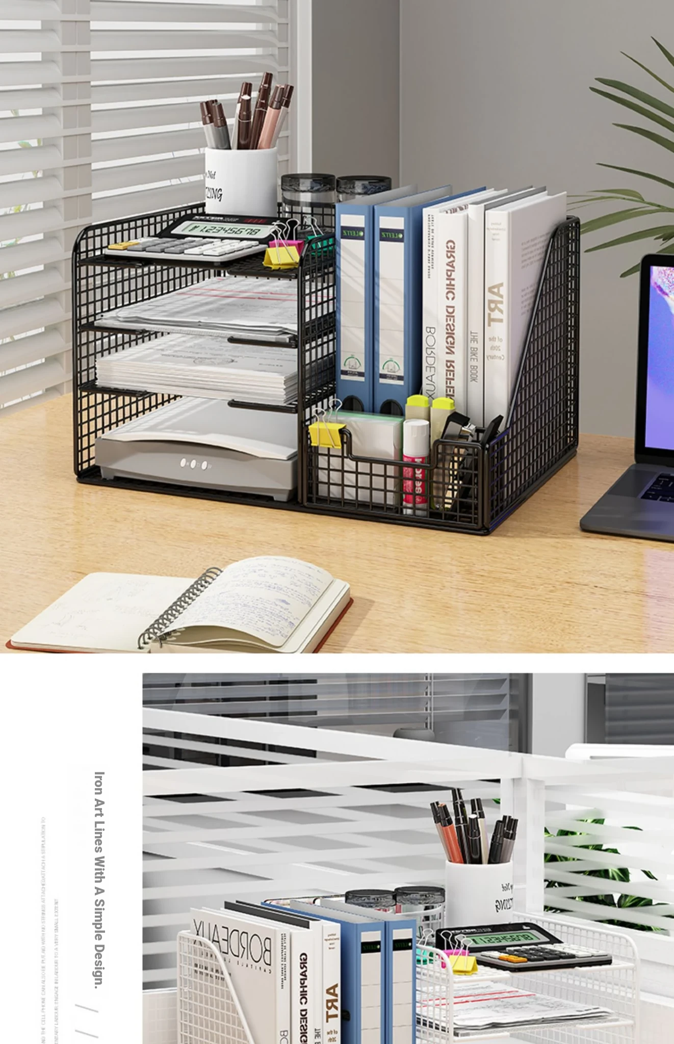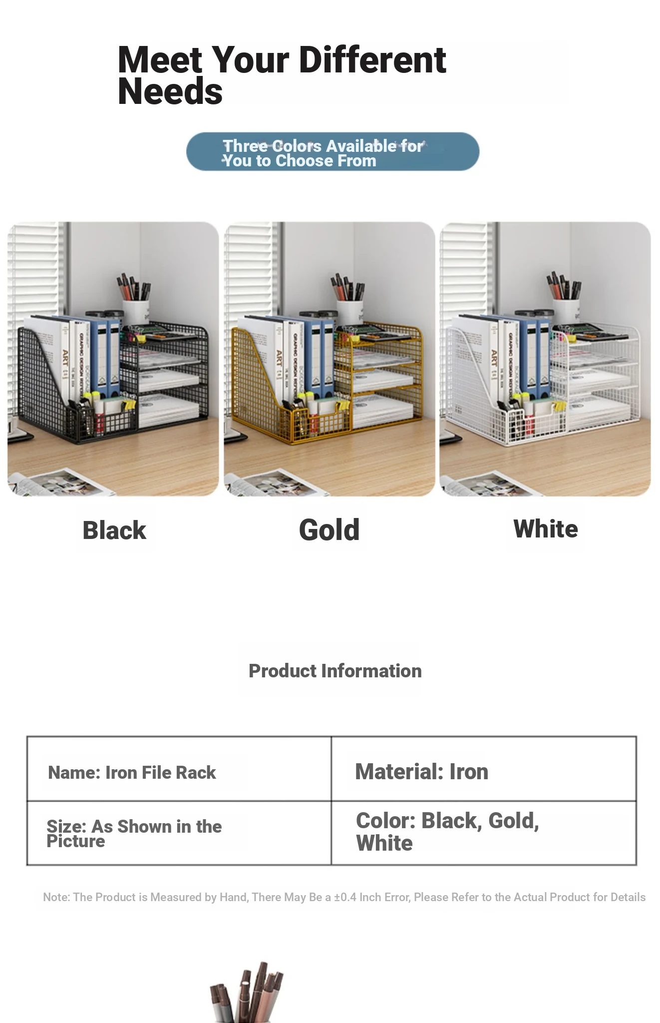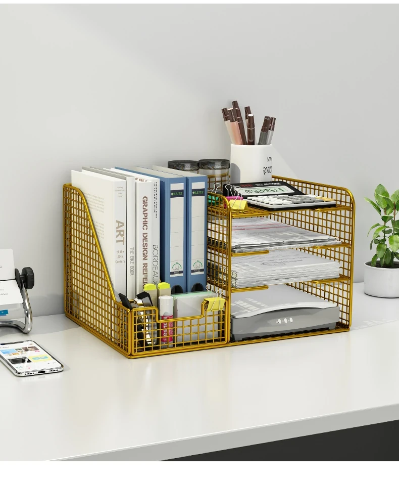 Multi-Layer Metal File Organizer for A3/A4 Documents - Stylish Desktop Storage Box and Bookshelf for Office - Efficient File Management Solution