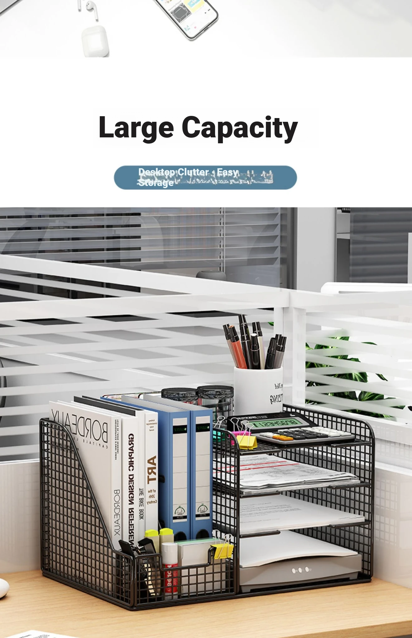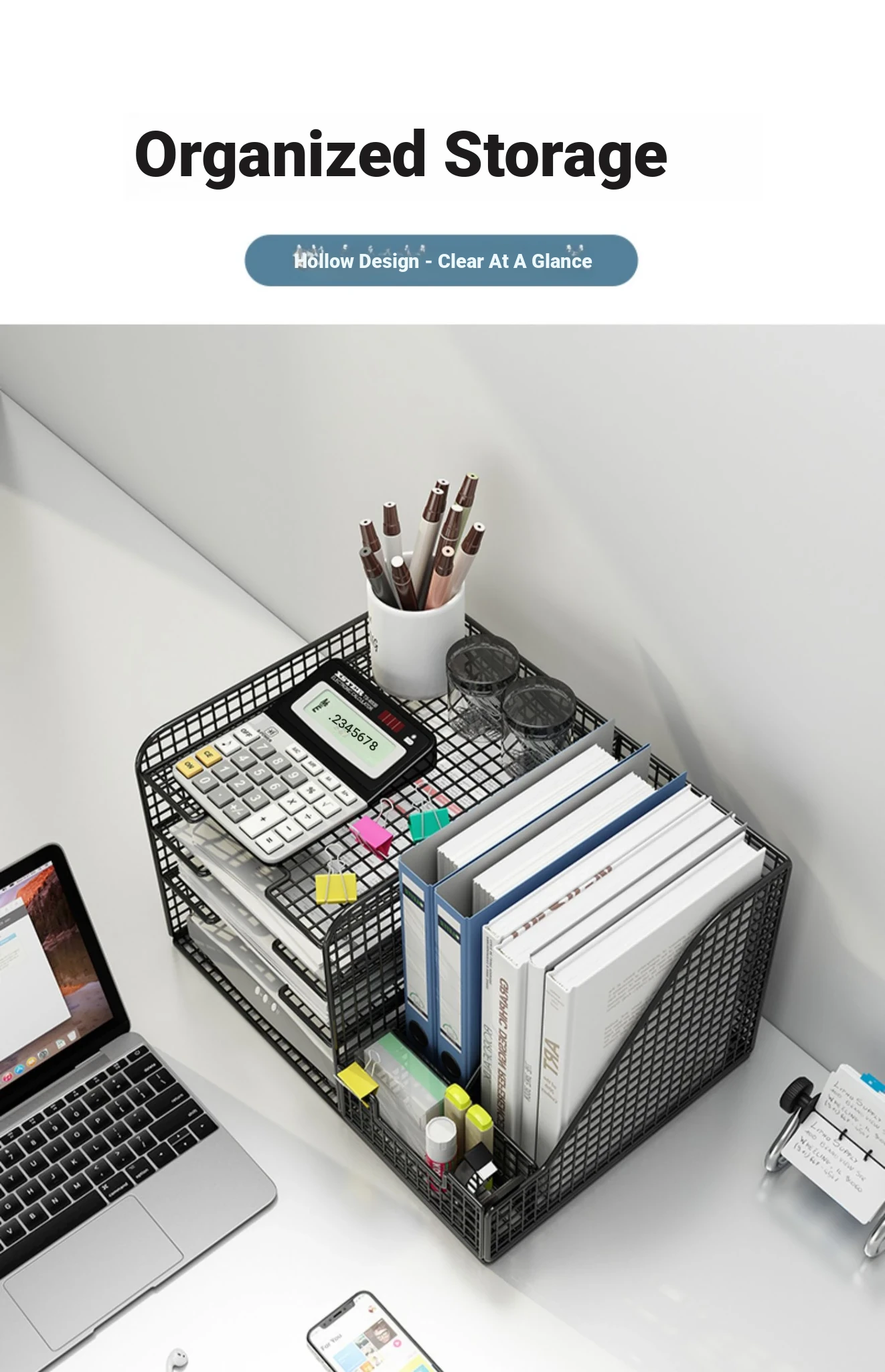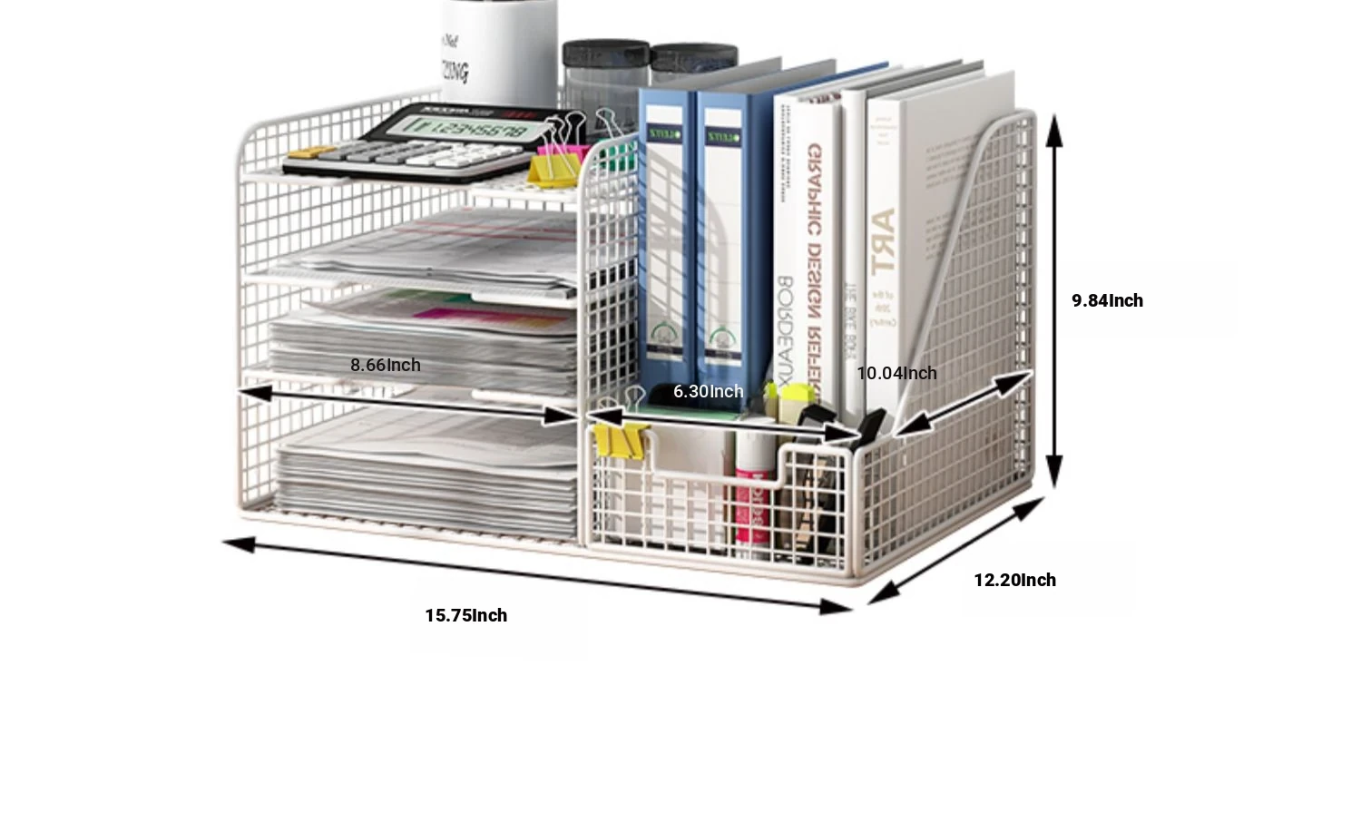 Multi-Layer Metal File Organizer for A3/A4 Documents - Stylish Desktop Storage Box and Bookshelf for Office - Efficient File Management Solution