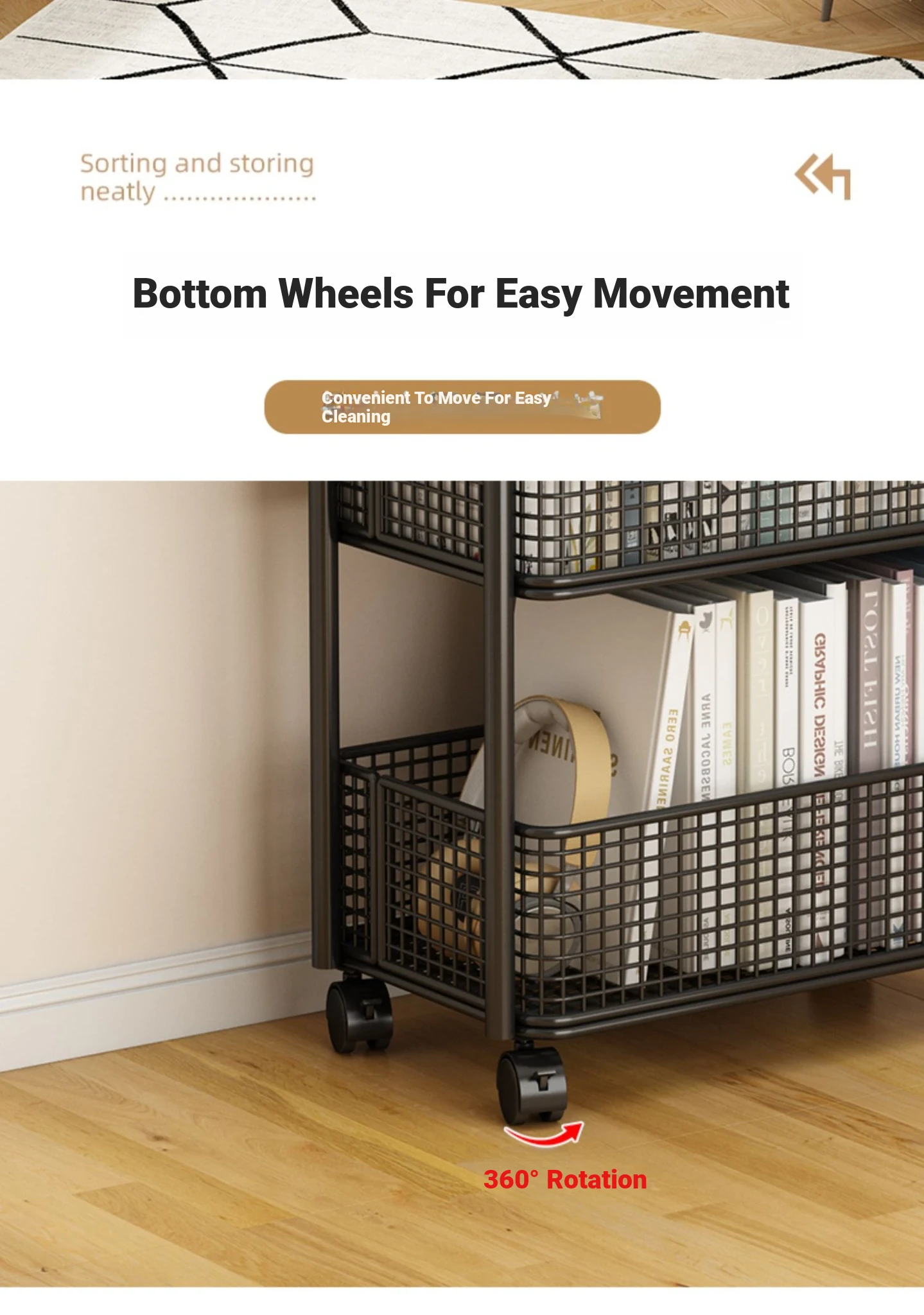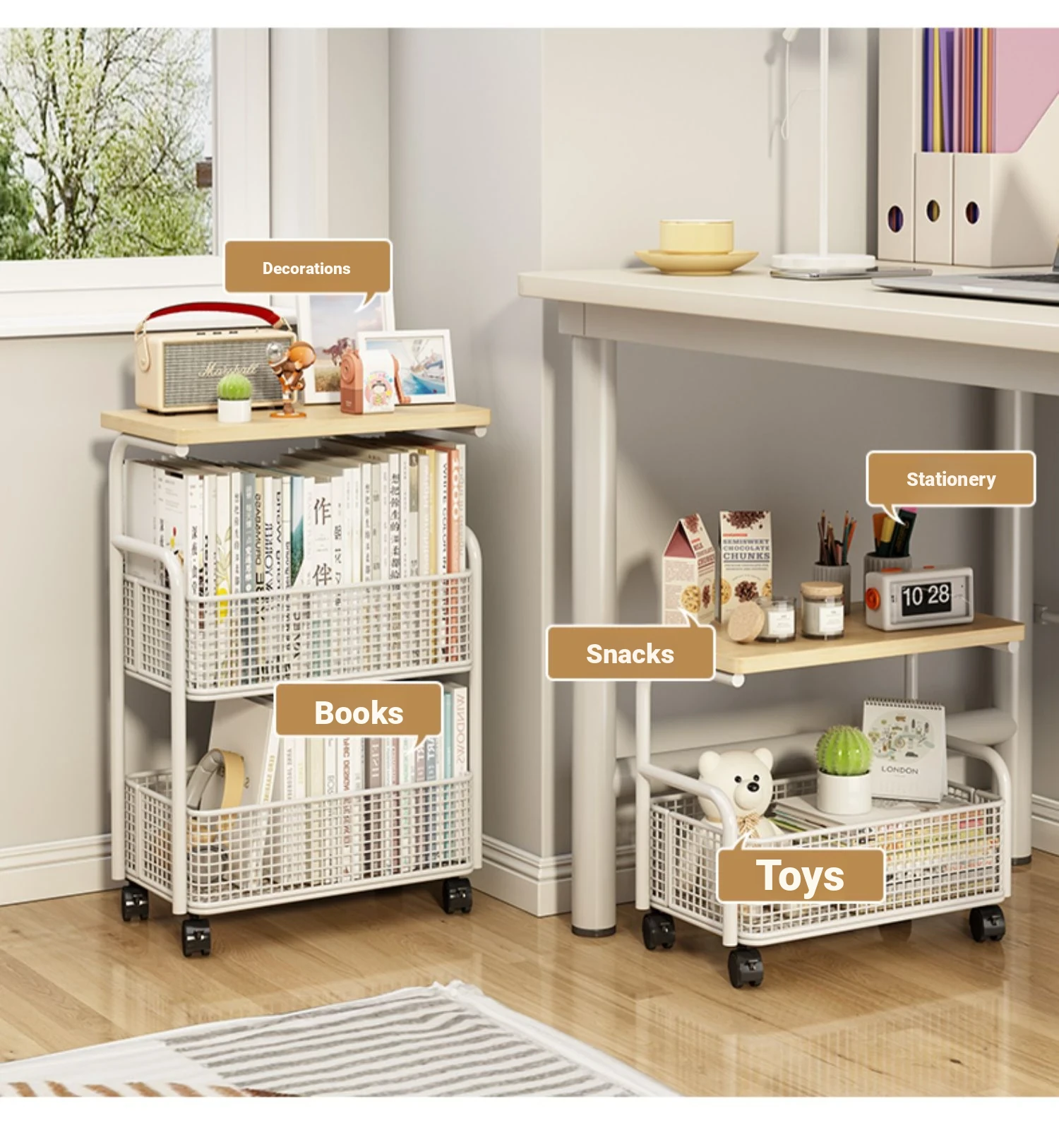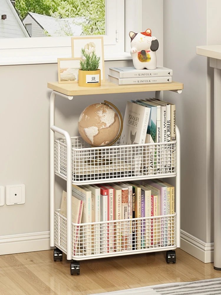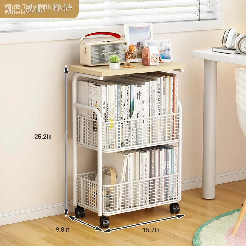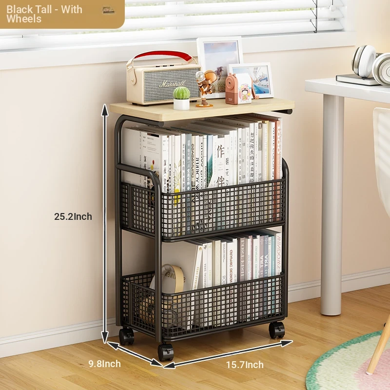Multi-Layer Mobile Bookshelf with Wheels - Versatile Floor Storage Rack for Student Desks, Perfect for Organizing Books and Essentials - Easy Assembly Storage Cabinet