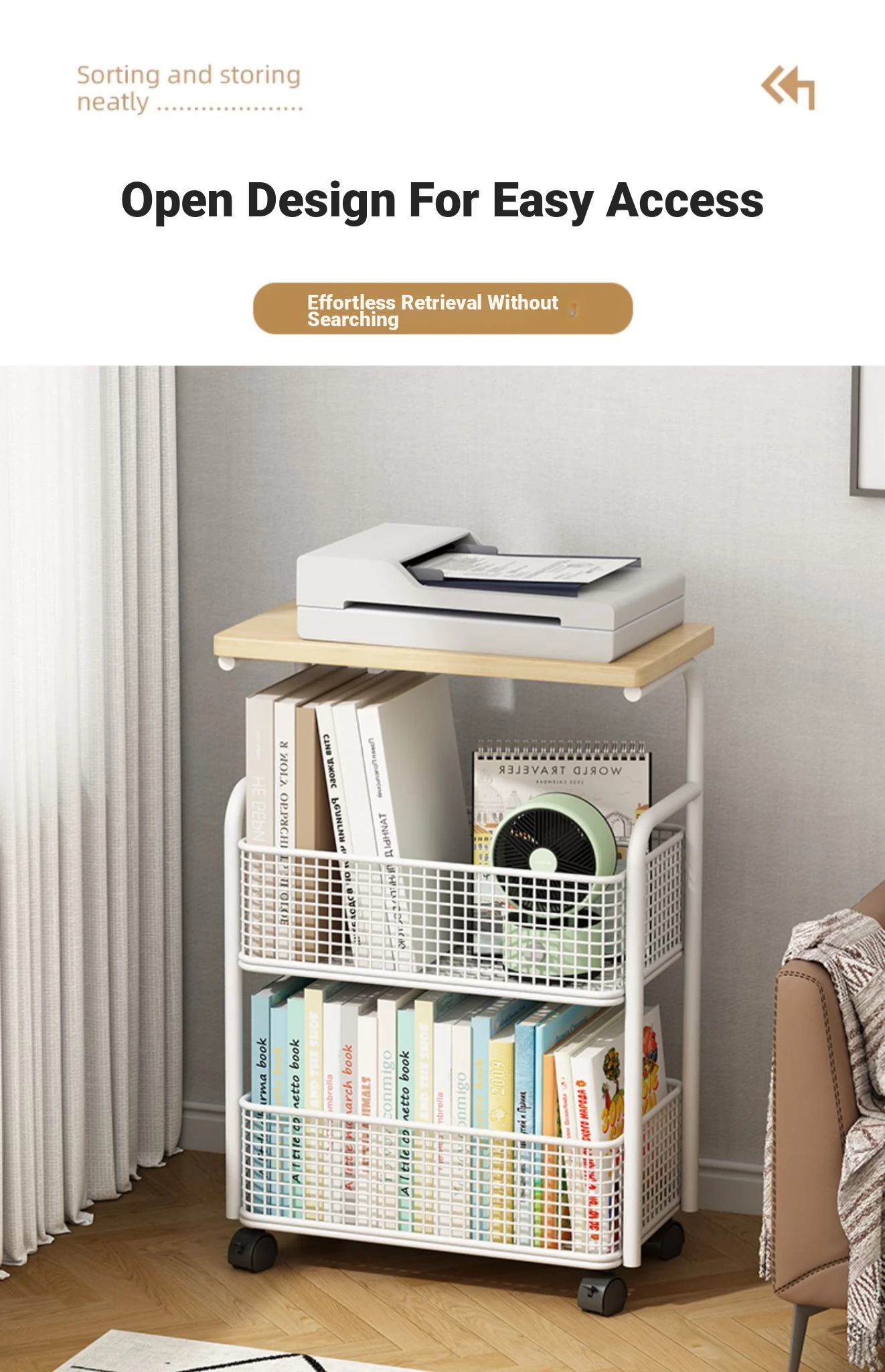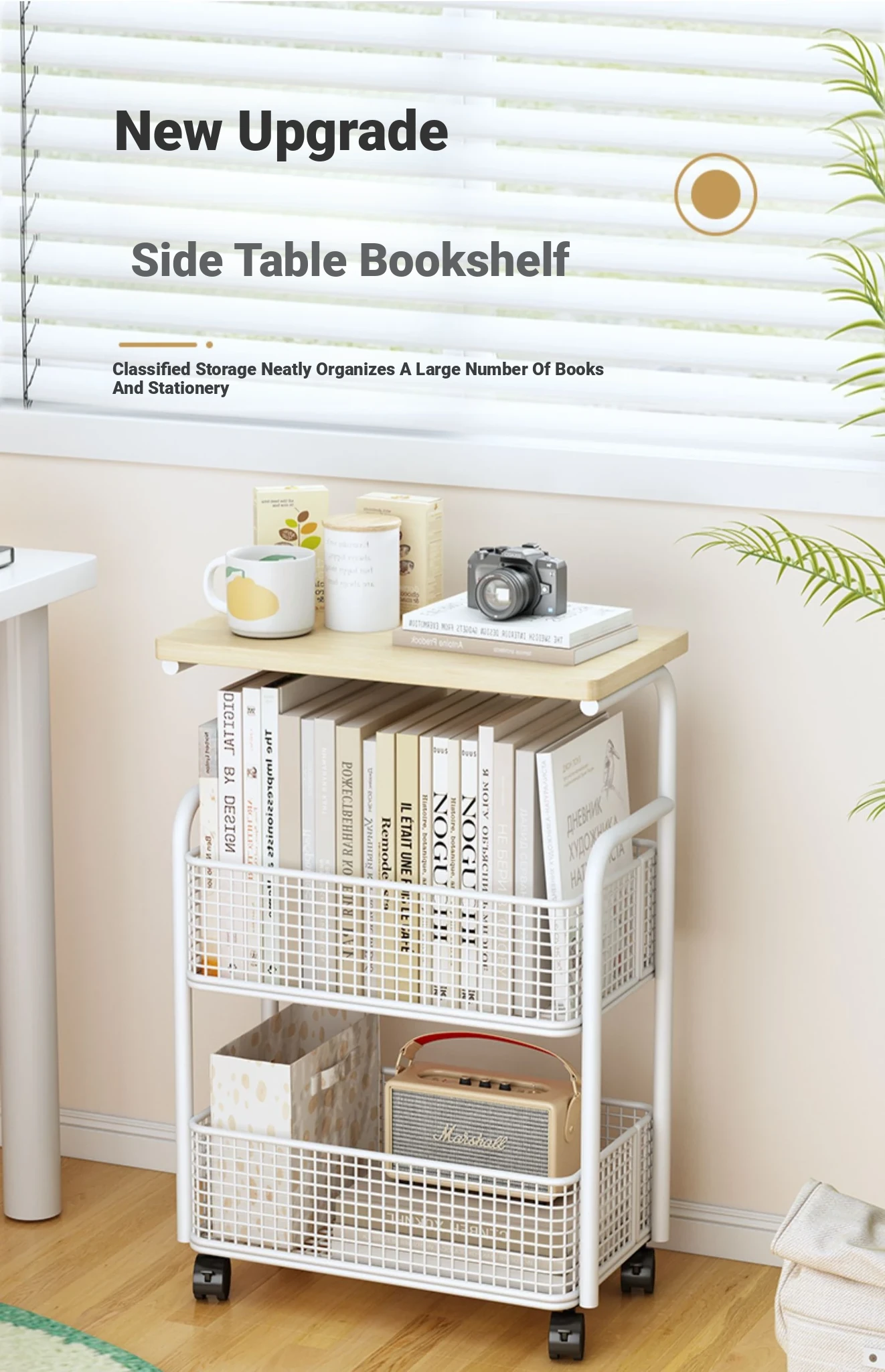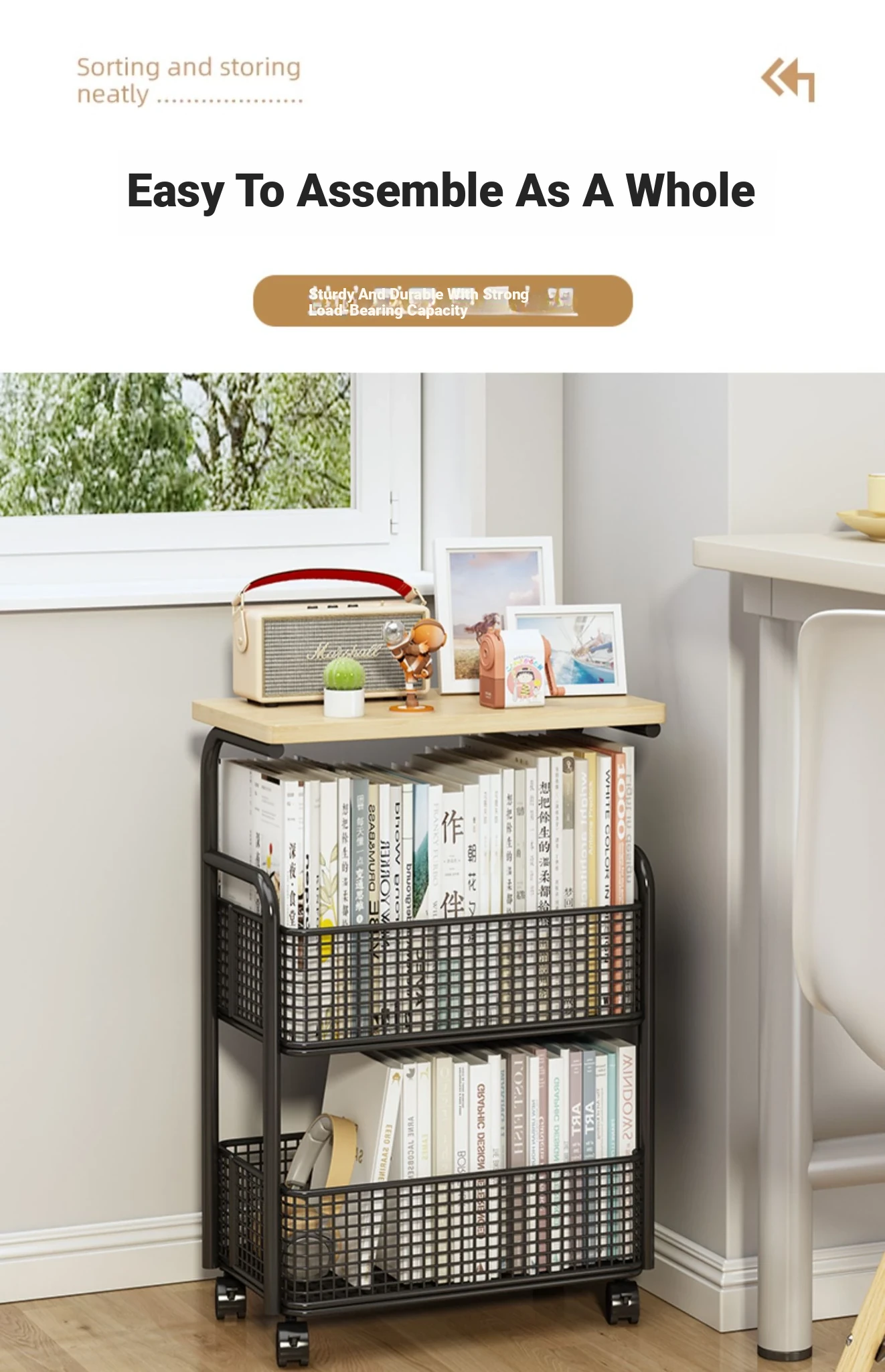 Multi-Layer Mobile Bookshelf with Wheels - Versatile Floor Storage Rack for Student Desks, Perfect for Organizing Books and Essentials - Easy Assembly Storage Cabinet