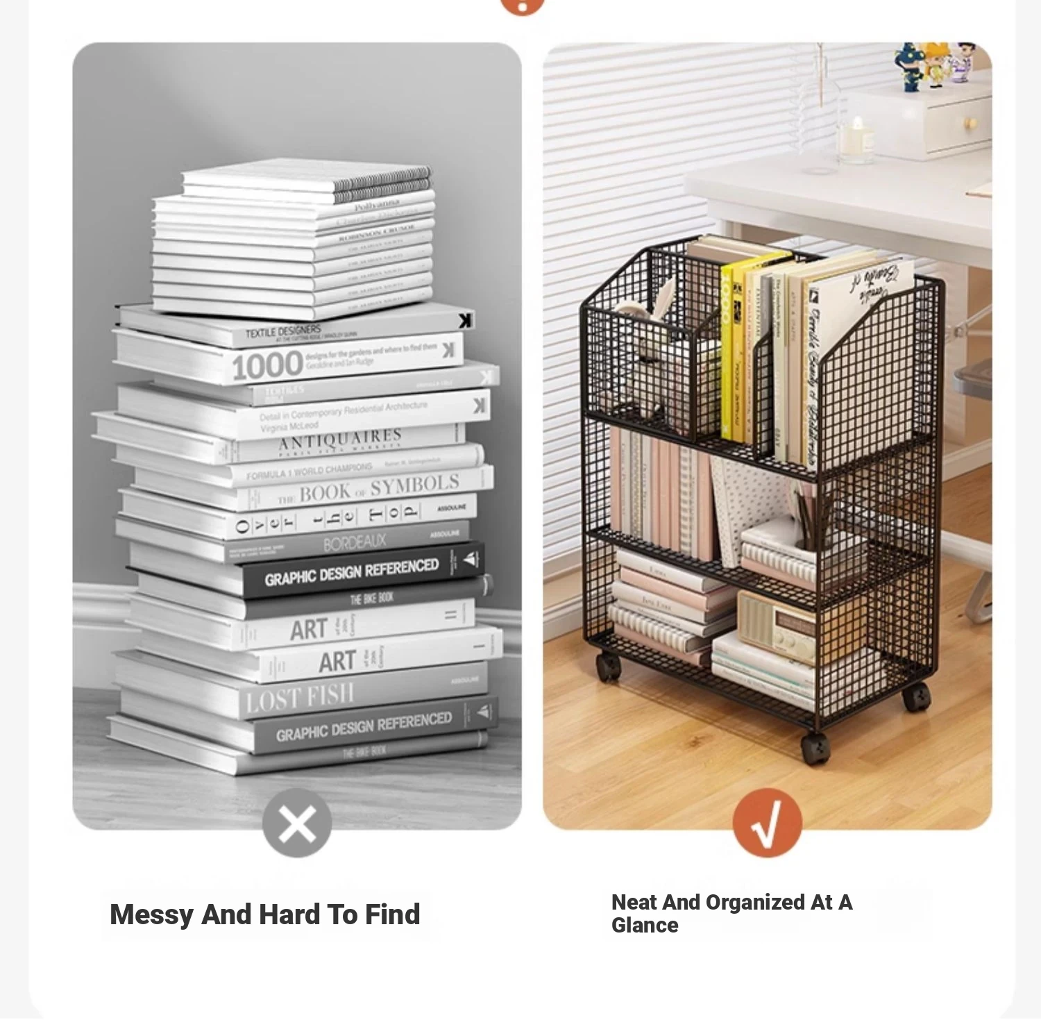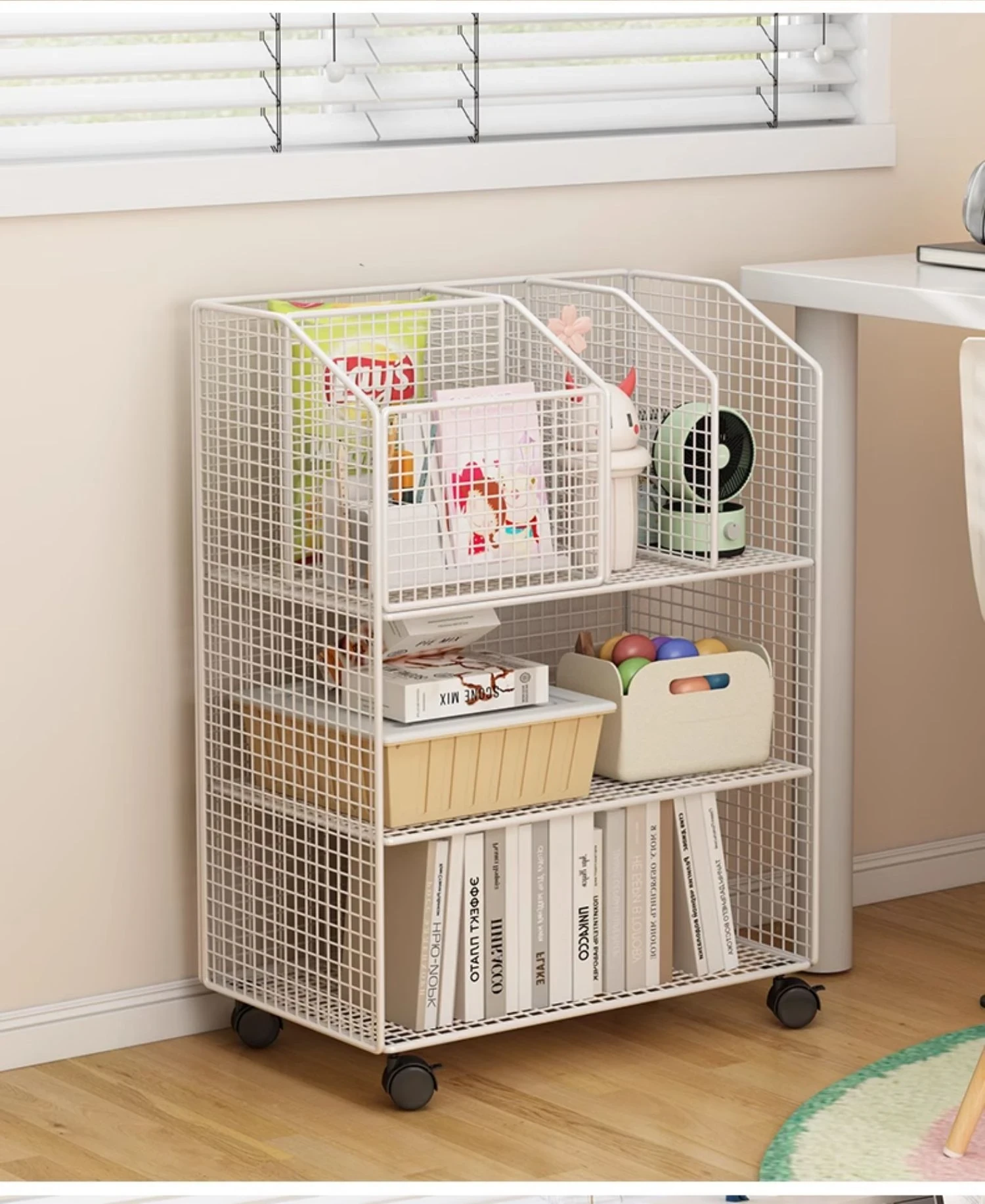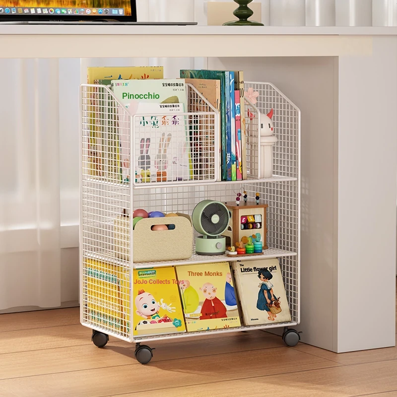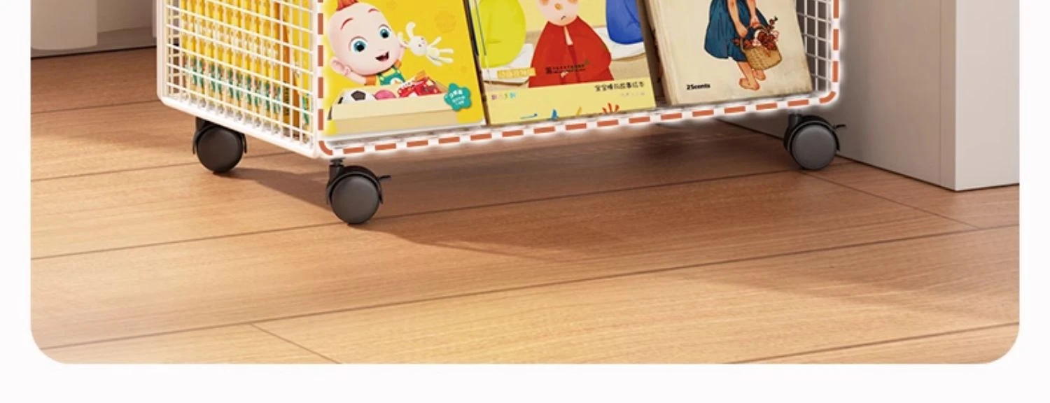 Multi-Layer Portable Children's Bookshelf with Wheels - Stylish Floor Storage Rack for Kids' Books and Essentials, Perfect for Home or Classroom Use!