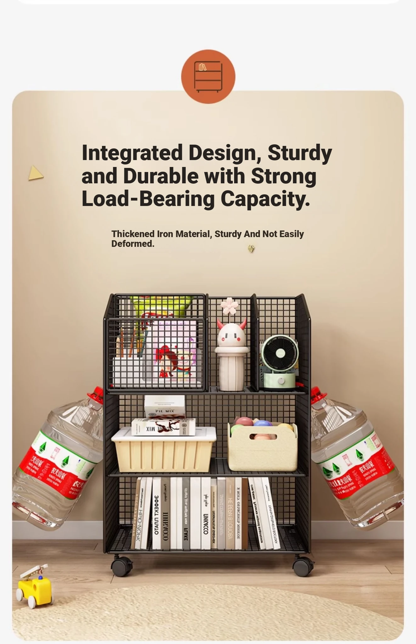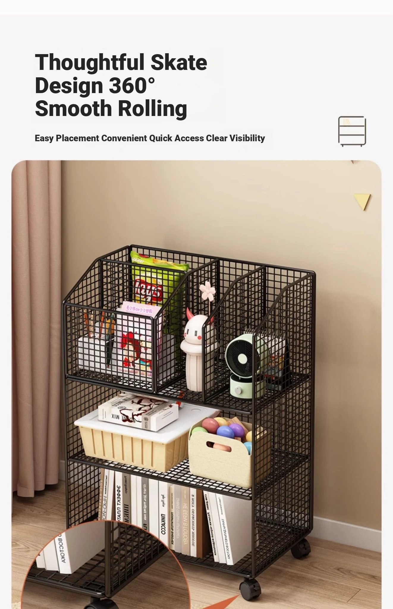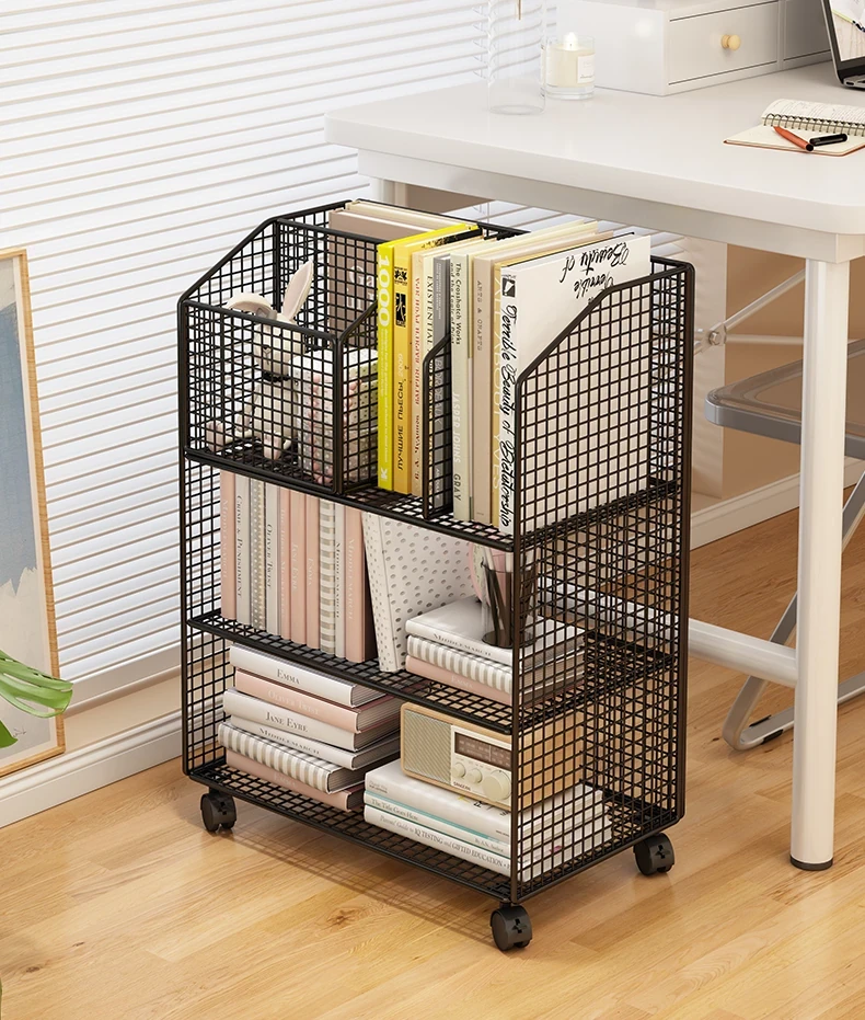 Multi-Layer Portable Children's Bookshelf with Wheels - Stylish Floor Storage Rack for Kids' Books and Essentials, Perfect for Home or Classroom Use!