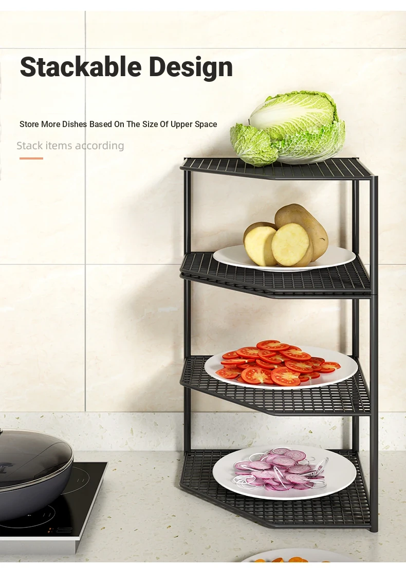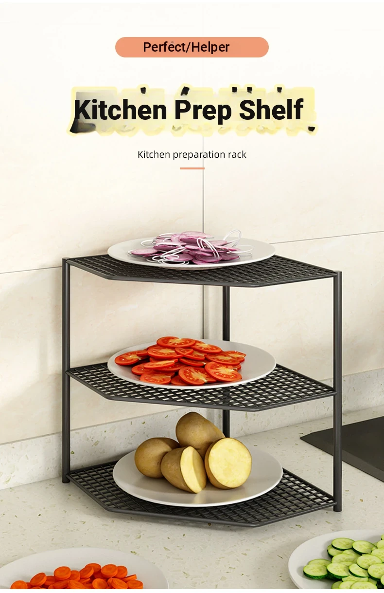 Multi-Tiered Kitchen Preparation Rack - Wall-Mounted Vegetable and Dish Organizer with Compartments for Efficient Food Prep and Storage. Perfect for Keeping Your Countertop Neat and Organized!