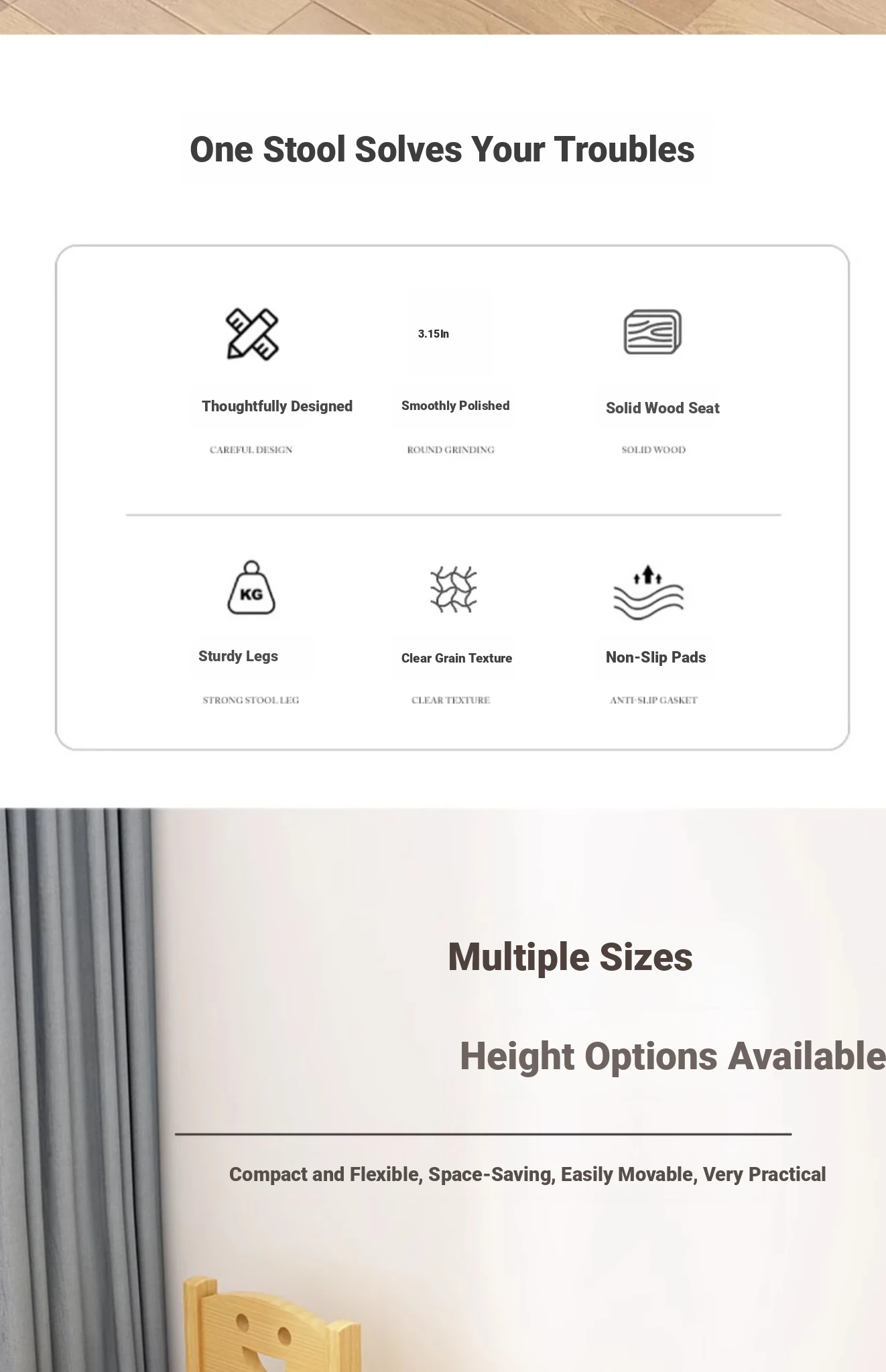 Solid Wood Stool for Home Use - Durable and Sturdy Small Bench for Living Room, Entryway Shoe Changing, Backrest Chair, Perfect Kids Stool - Versatile and Stylish!