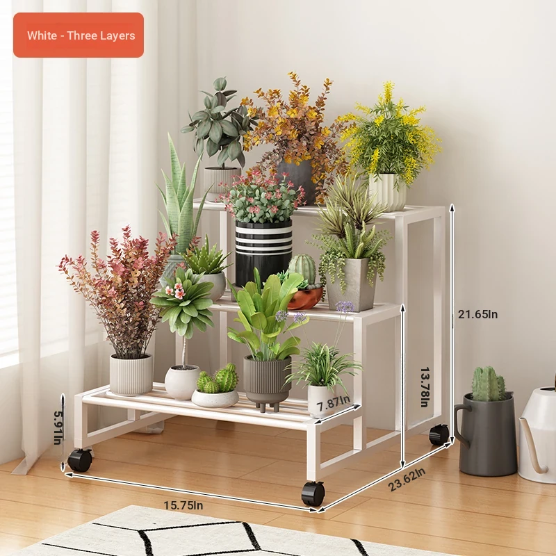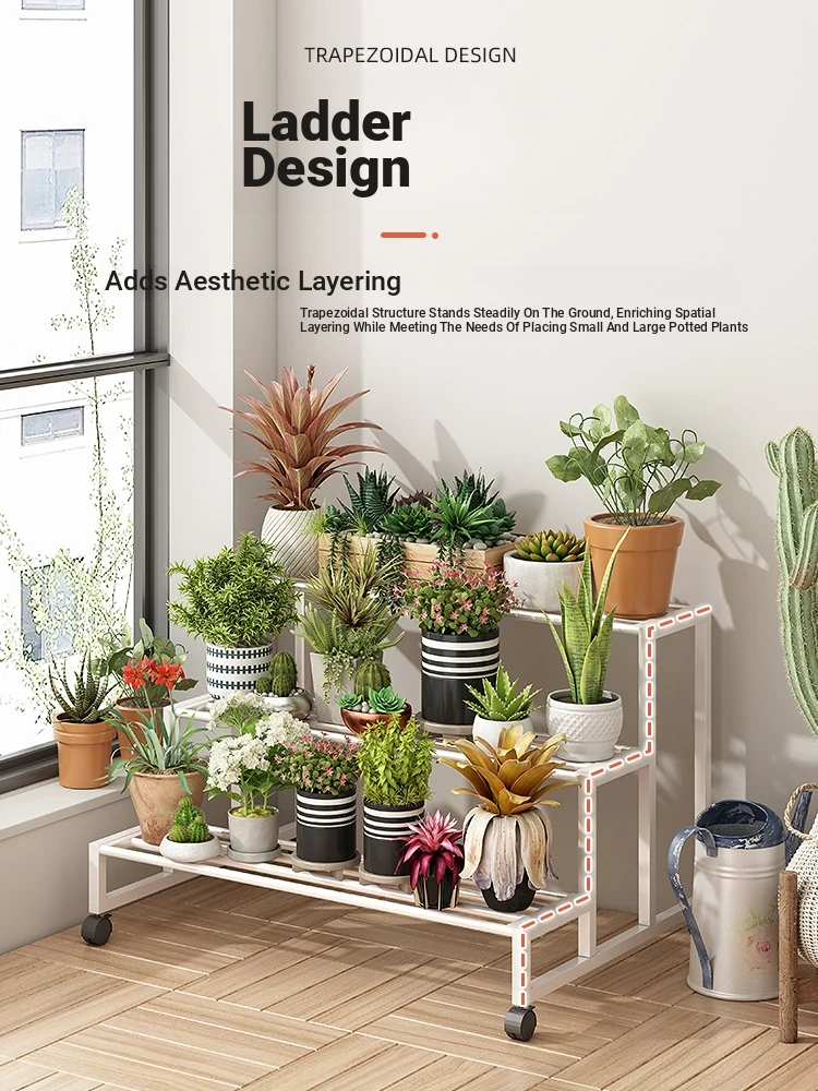 Stainless Steel Flower Rack - Multi-Layer Outdoor Iron Plant Stand for Balconies and Living Rooms, Stylish and Portable Flower Pot Holder with Ladder Design