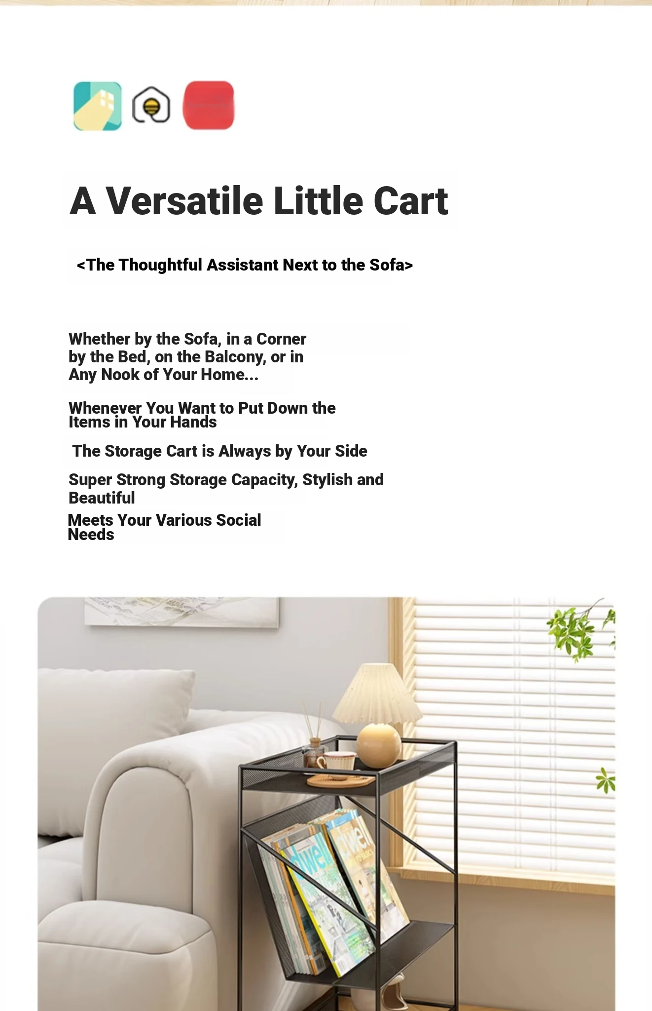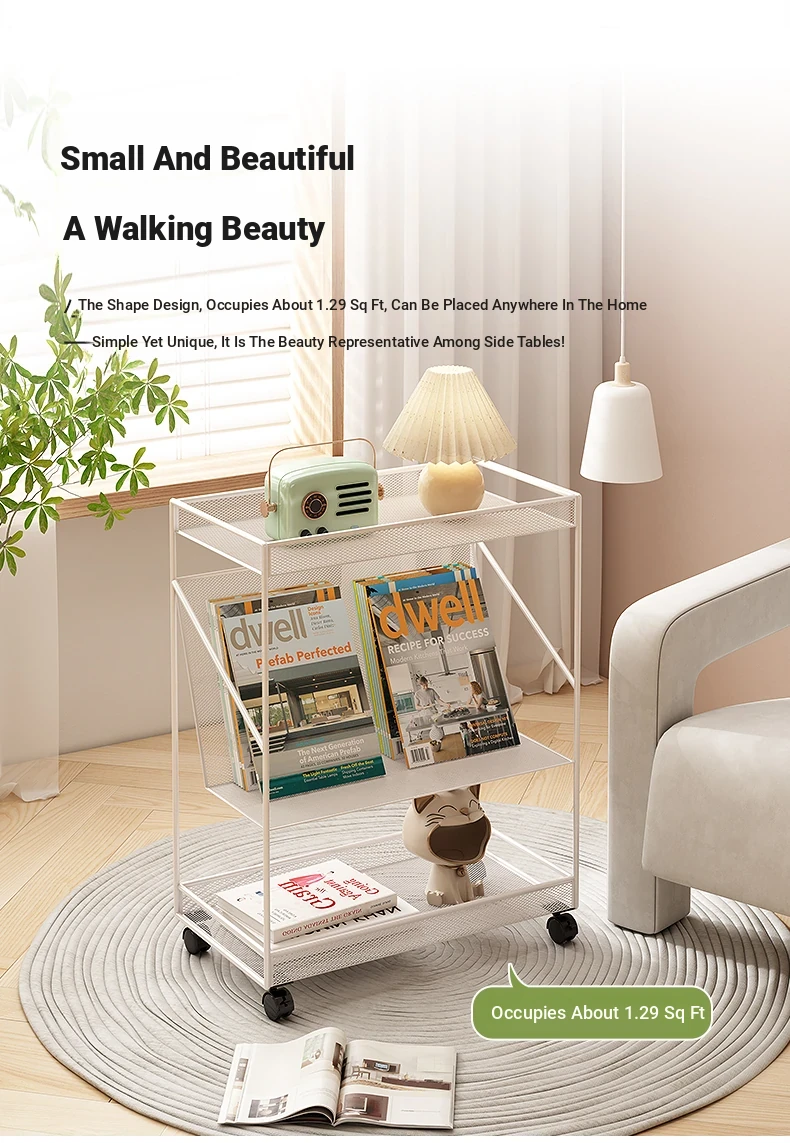 Stylish Iron Side Table - Compact Teak Coffee Table for Home Use, Versatile Nightstand and Storage Rack, Perfect for Bedroom and Living Room, Easy to Move and Organize