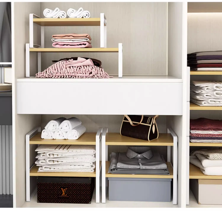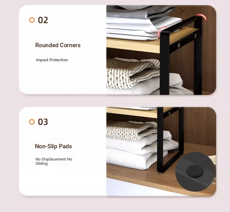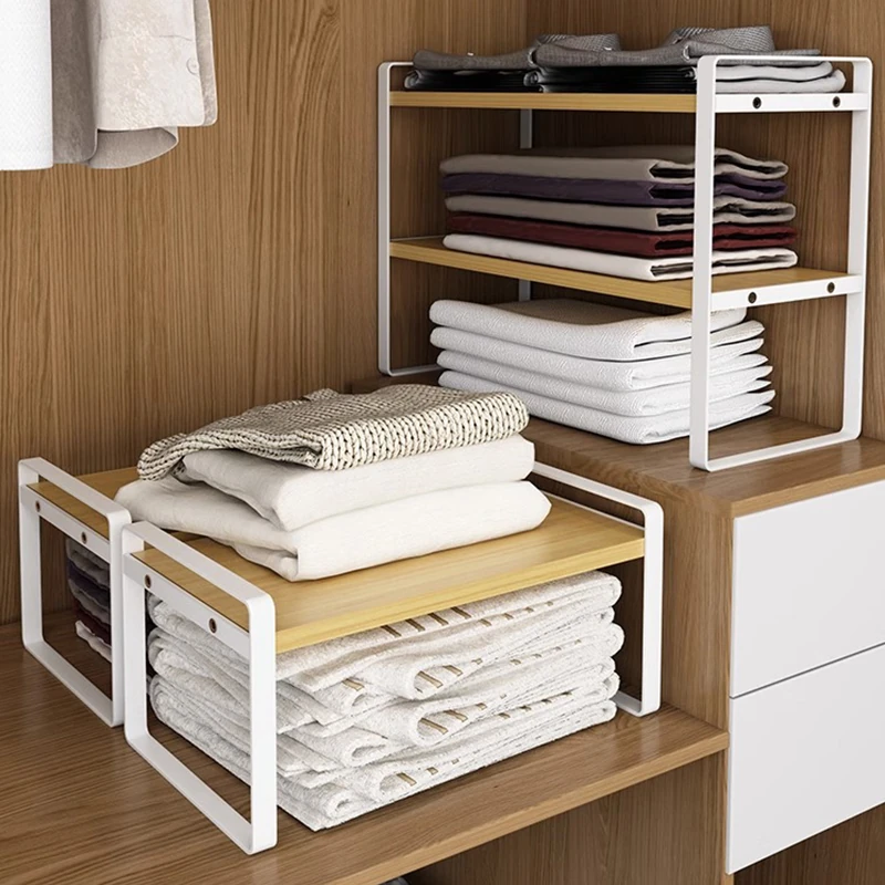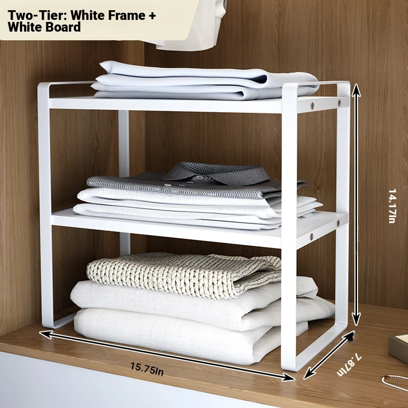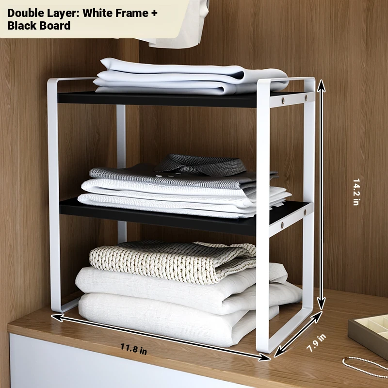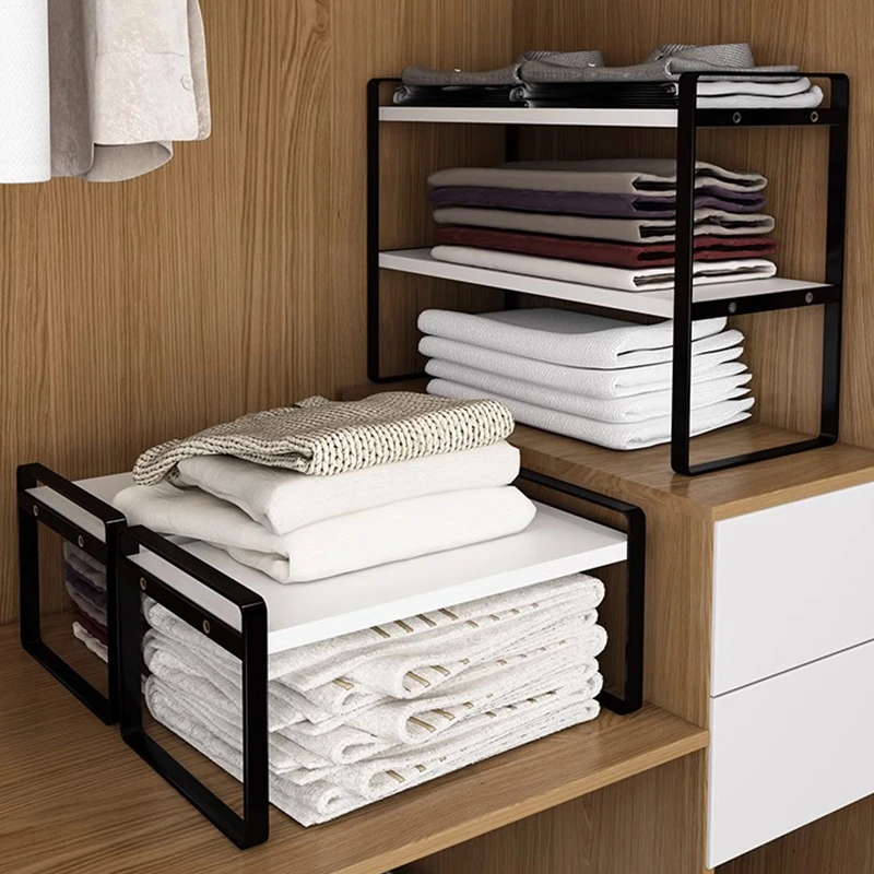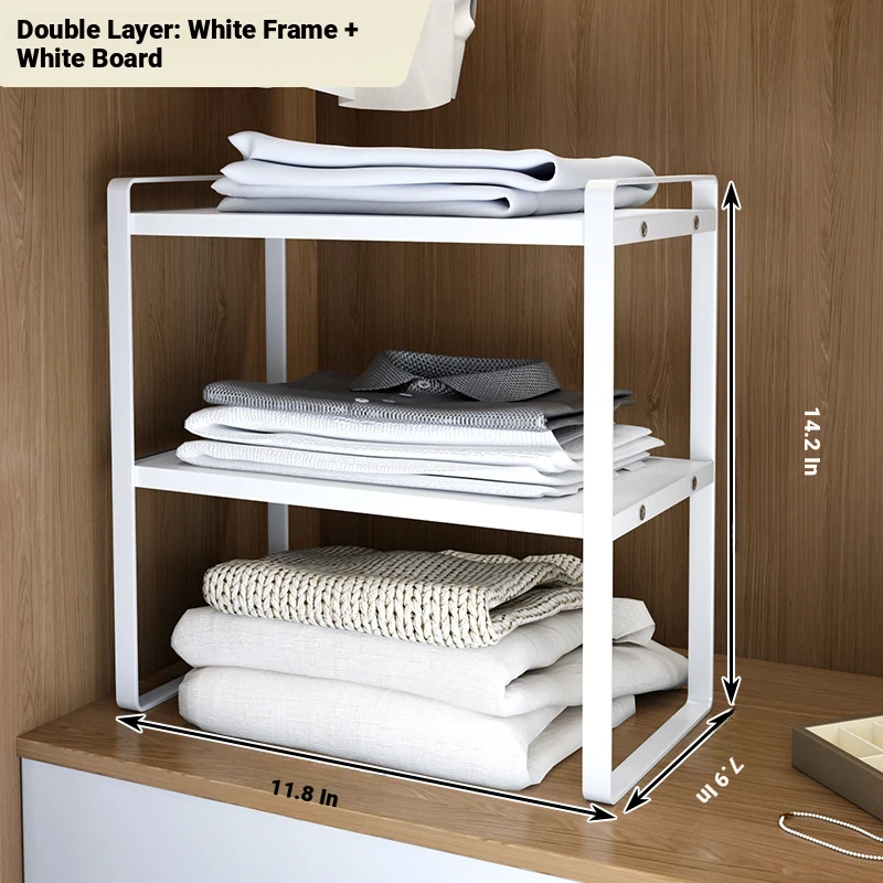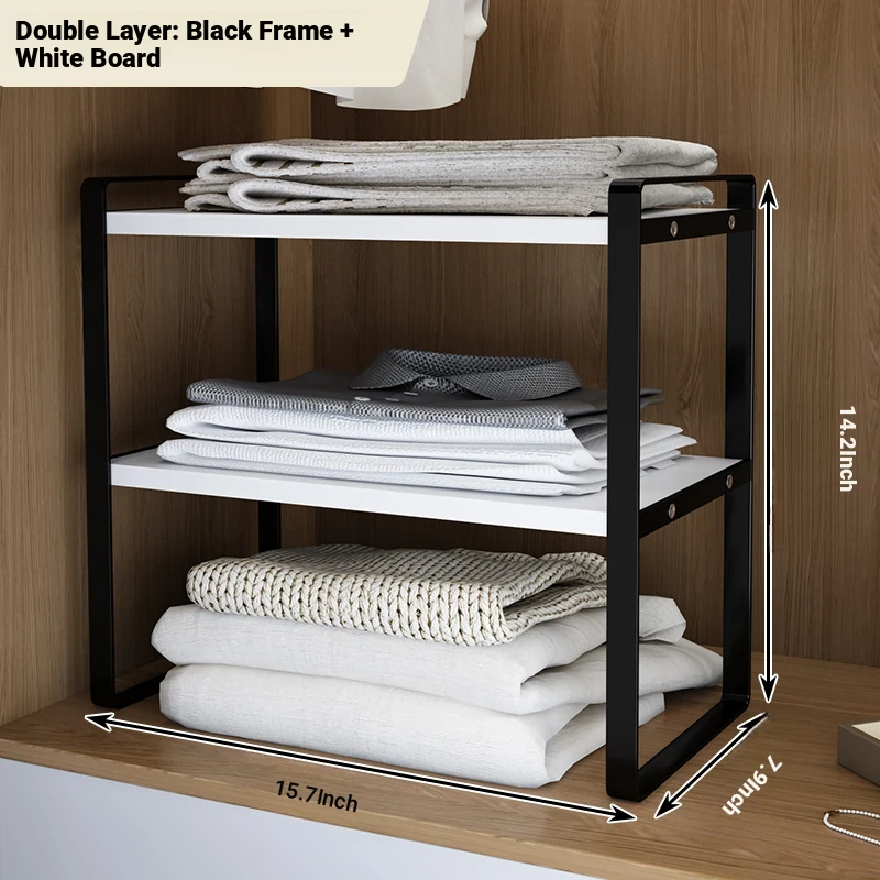 Stylish Wardrobe Organizer with Layered Dividers - Iron Storage Rack for Closet Separation, Perfect for Efficiently Organizing Your Cabinets and Shelves!