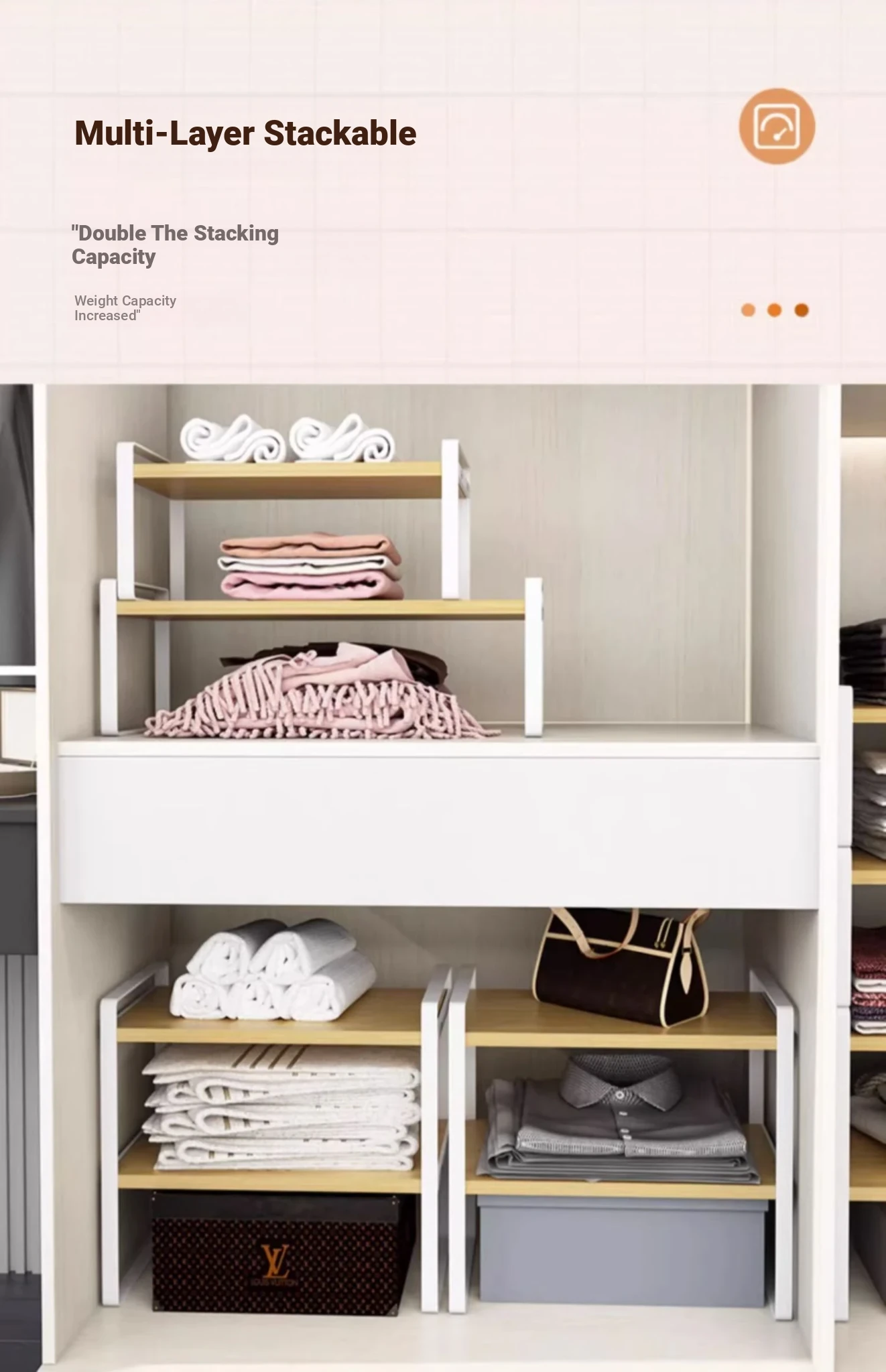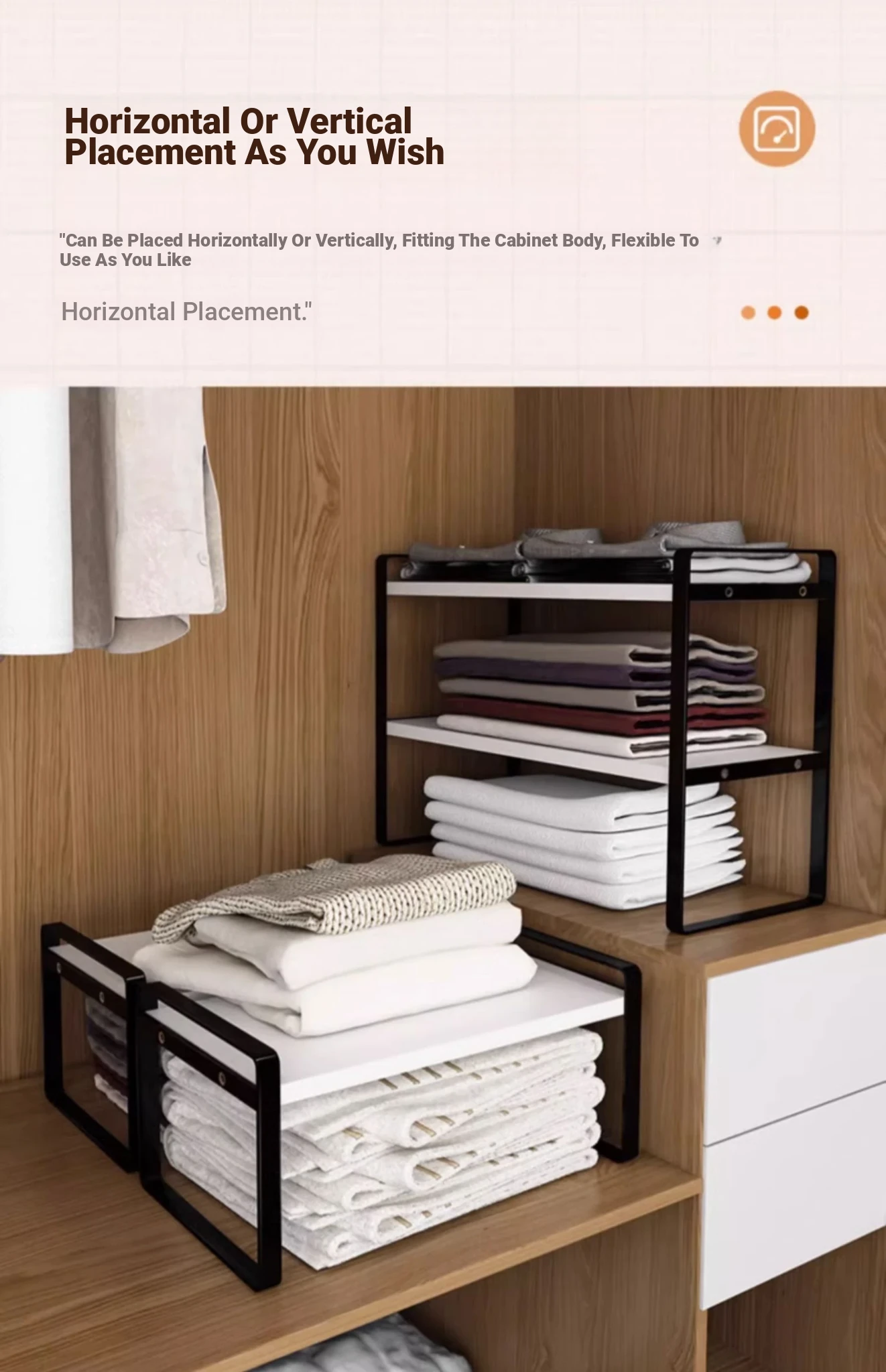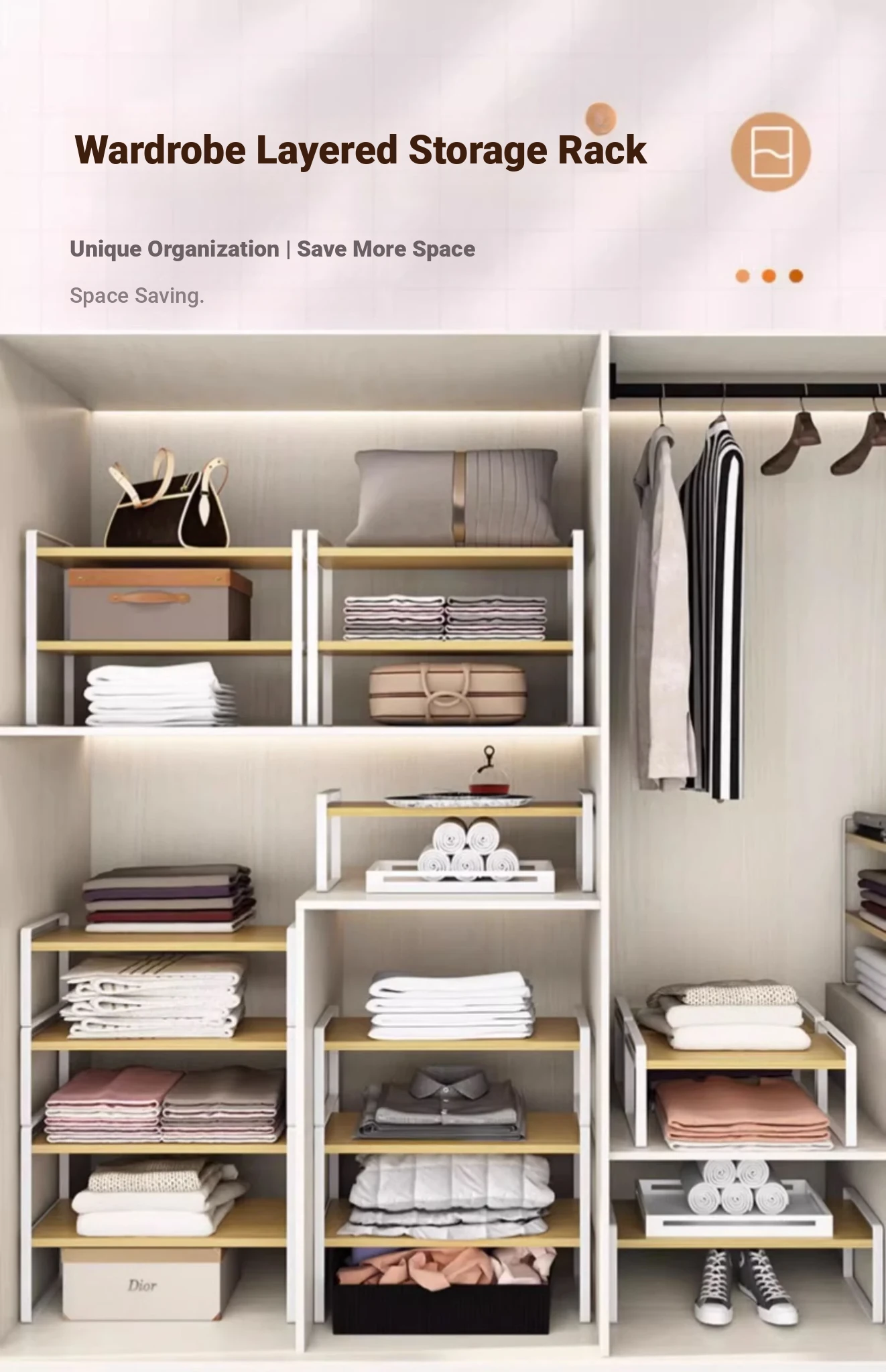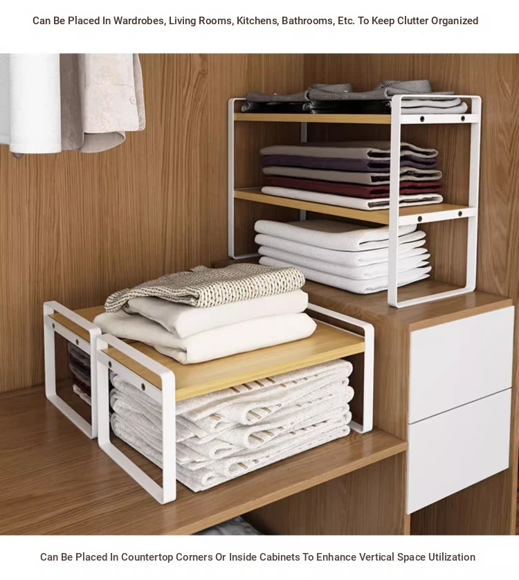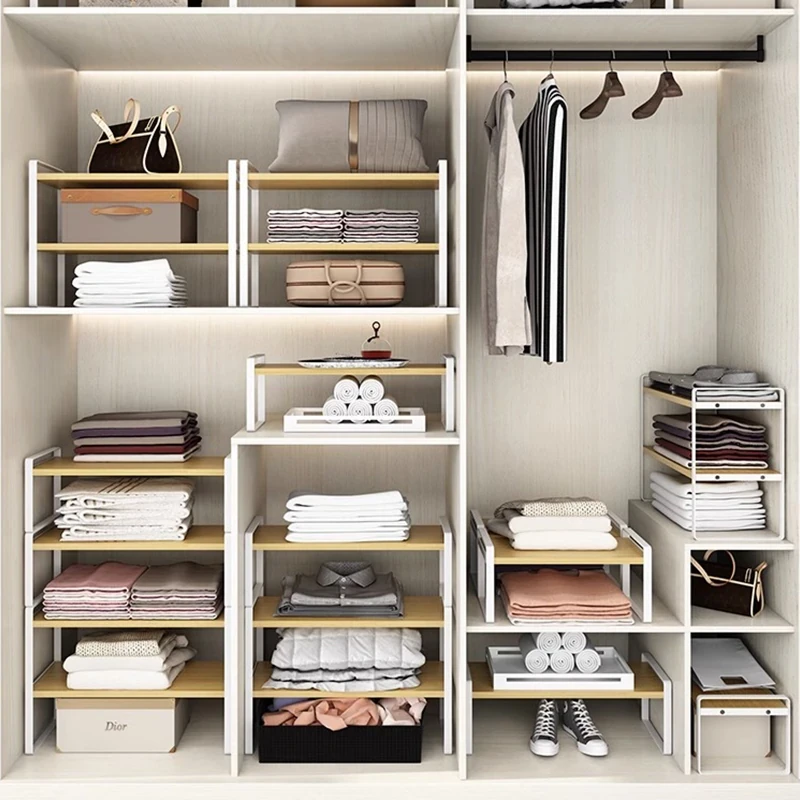 Stylish Wardrobe Organizer with Layered Dividers - Iron Storage Rack for Closet Separation, Perfect for Efficiently Organizing Your Cabinets and Shelves!