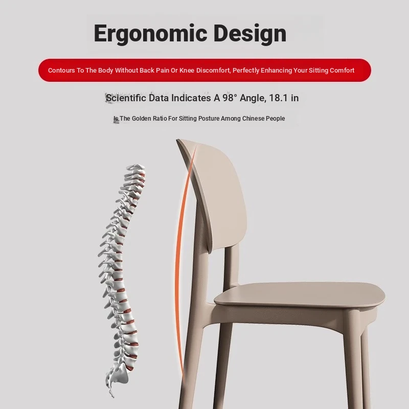 Thickened Plastic Stool with Backrest - Modern Minimalist Stackable Chair for Home, Comfortable and Simple Dining/Bar Stool for Living Room and Dining Table
