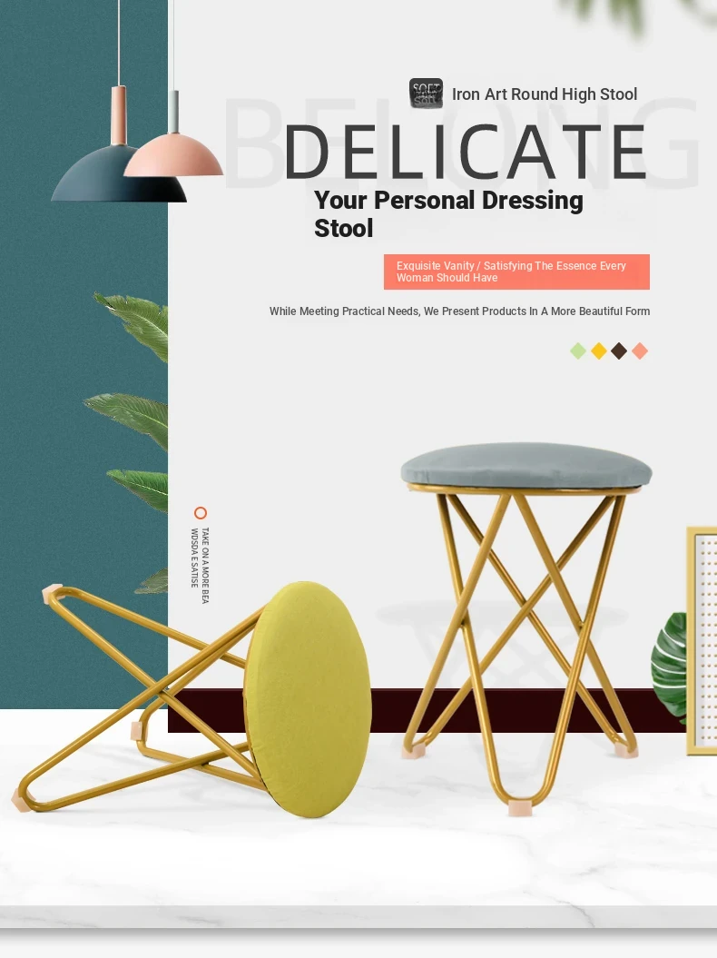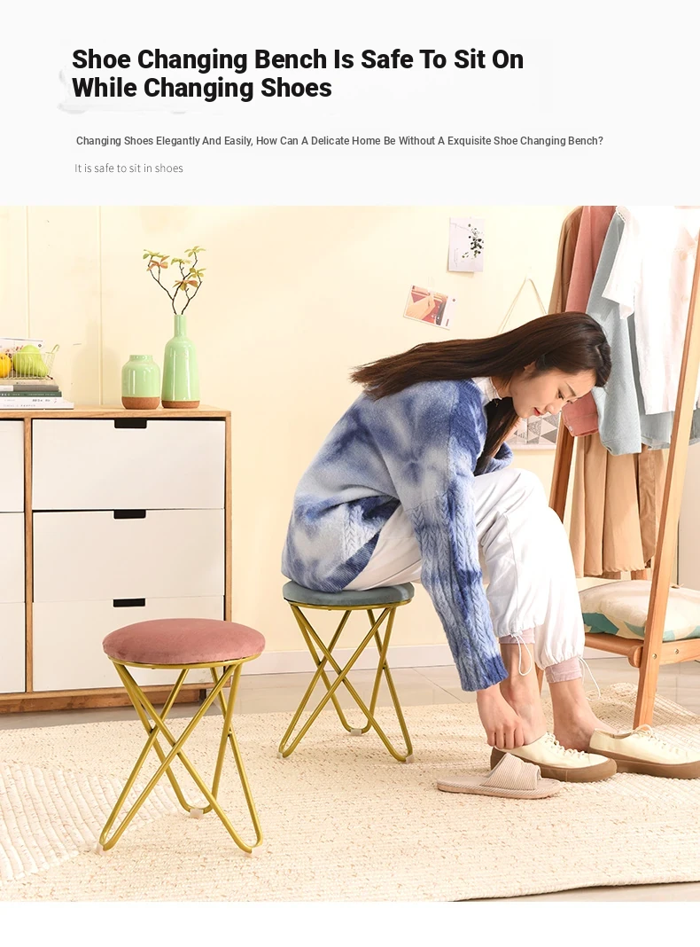 Trendy Makeup Stool for Home - Cute Nordic Metal Vanity Chair for Bedroom, Ideal for Girls’ Makeup and Nail Art, Stylish and Elegant Design for a Touch of Luxury