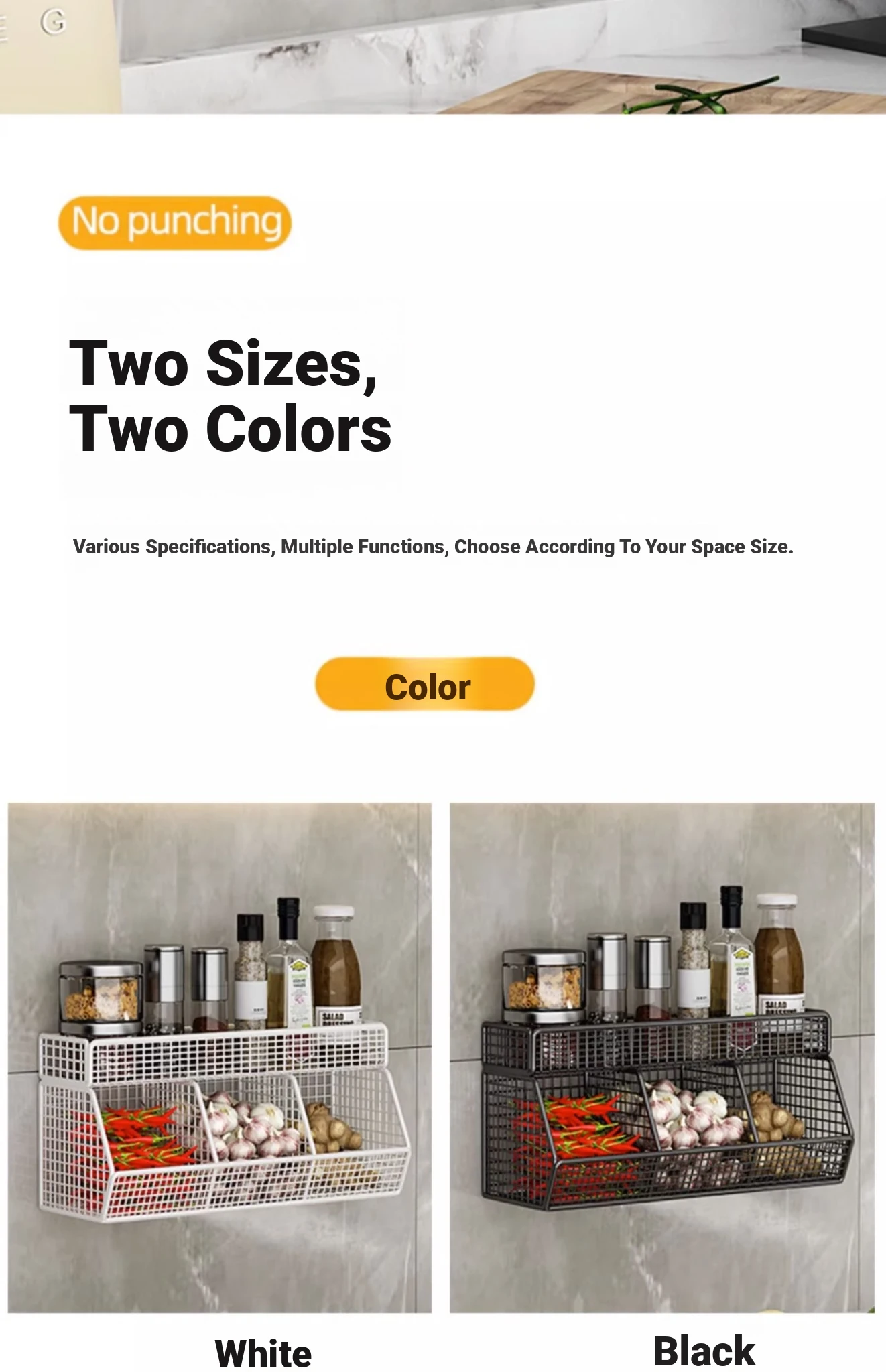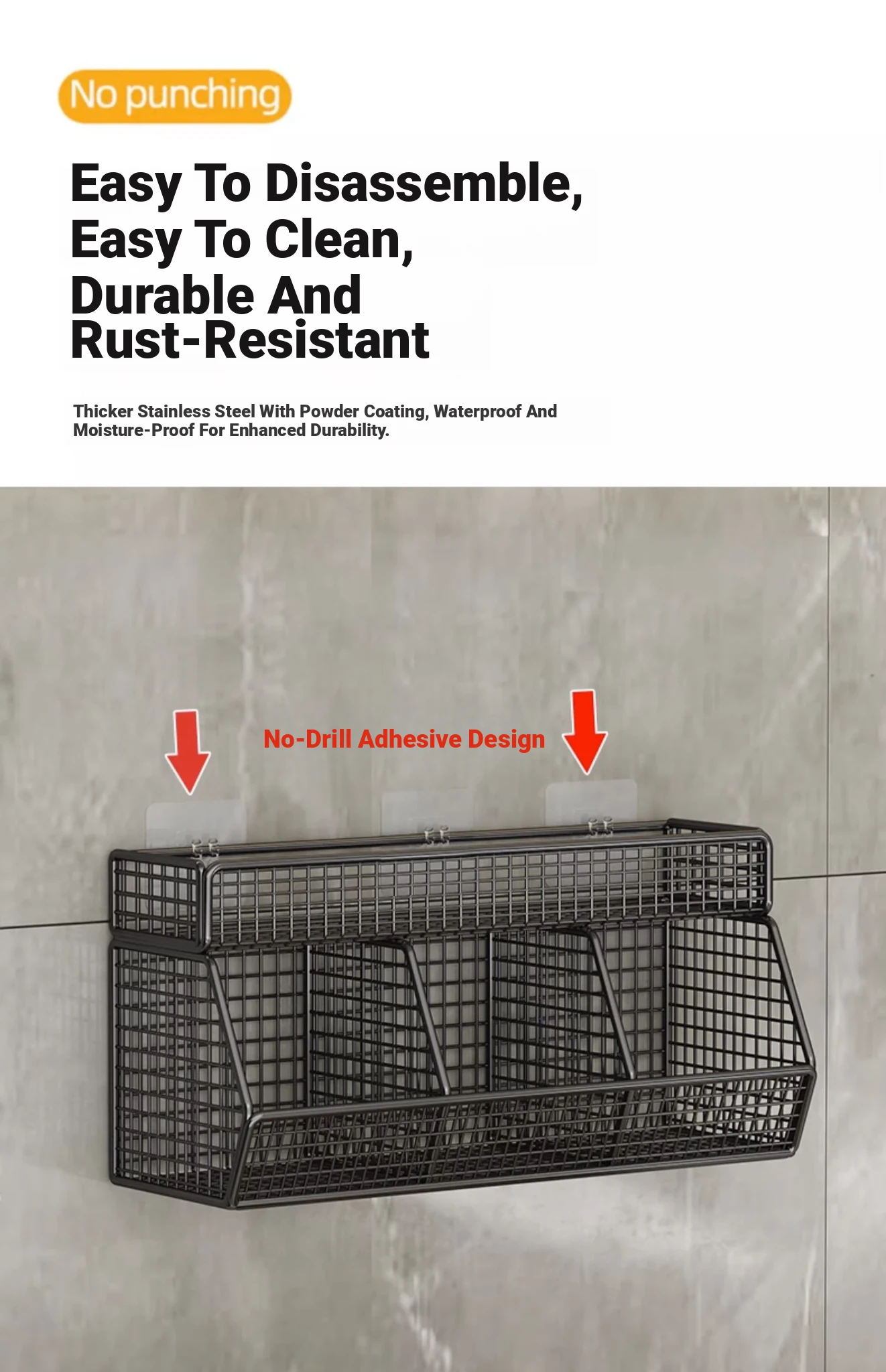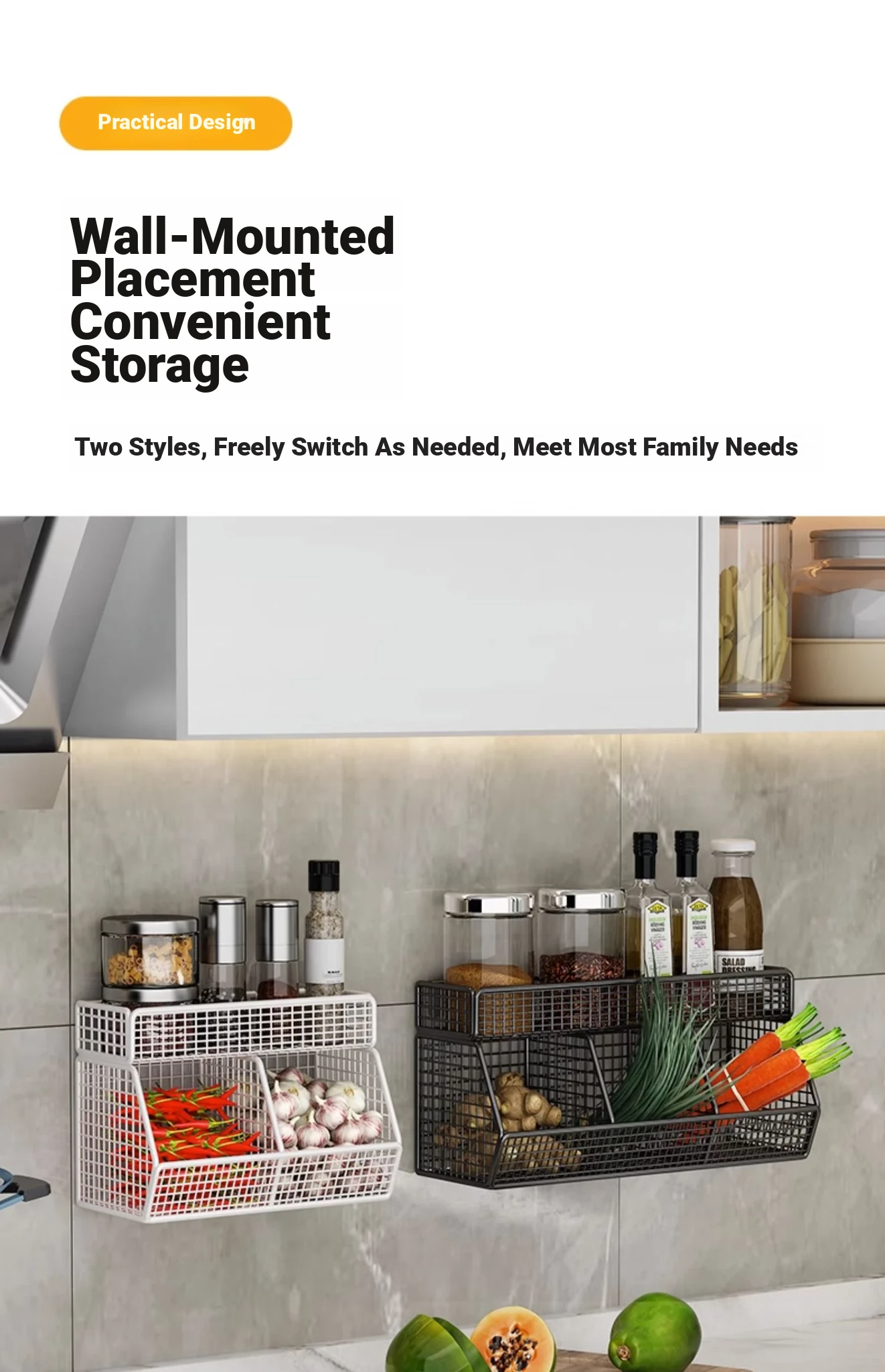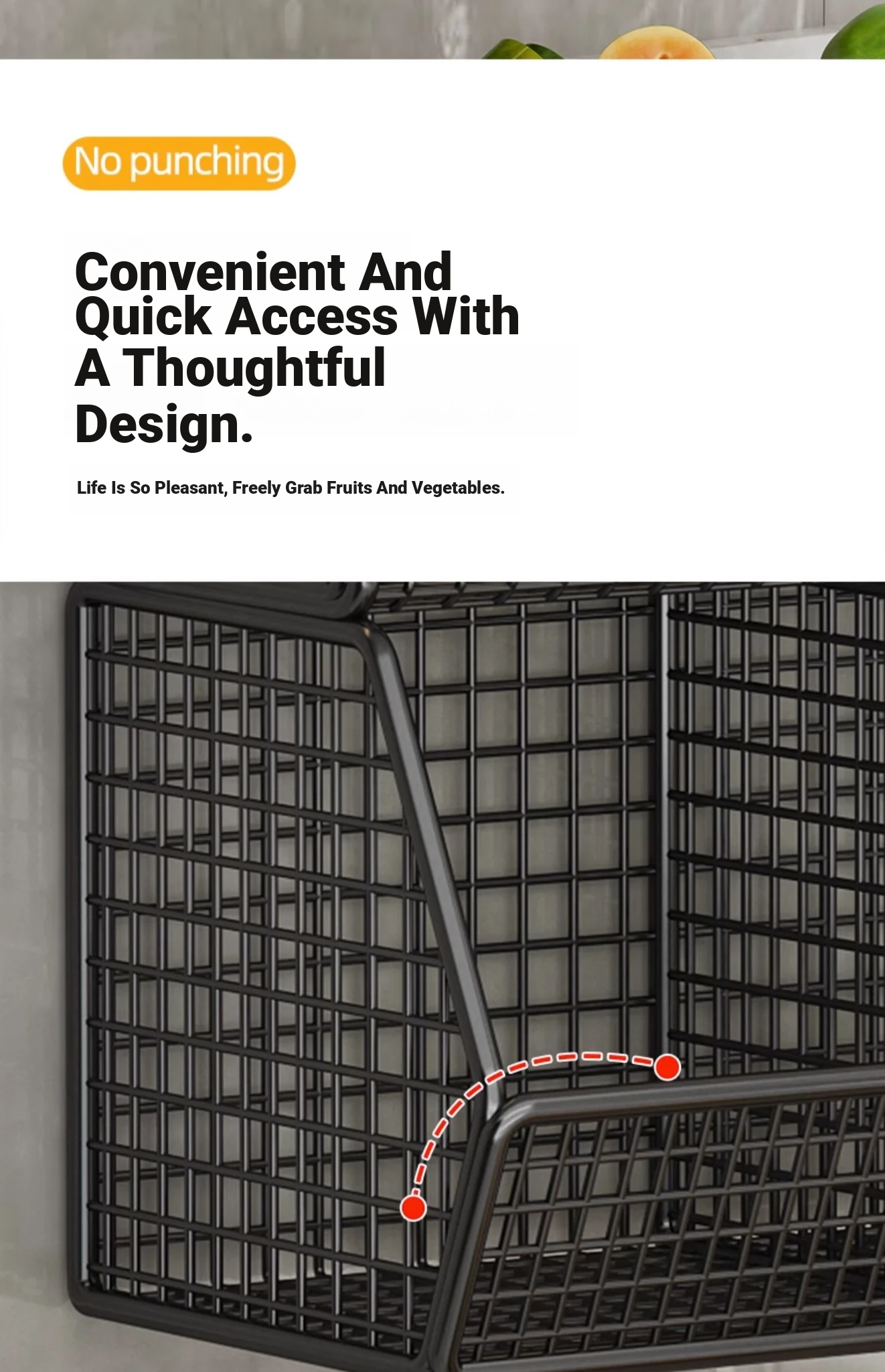 Wall-Mounted Kitchen Storage Rack - Multi-Functional Herb and Spice Organizer for Garlic, Ginger, and Onions - No Drill, Easy Installation - Perfect for Your Seasoning Bottles and Hanging Baskets!