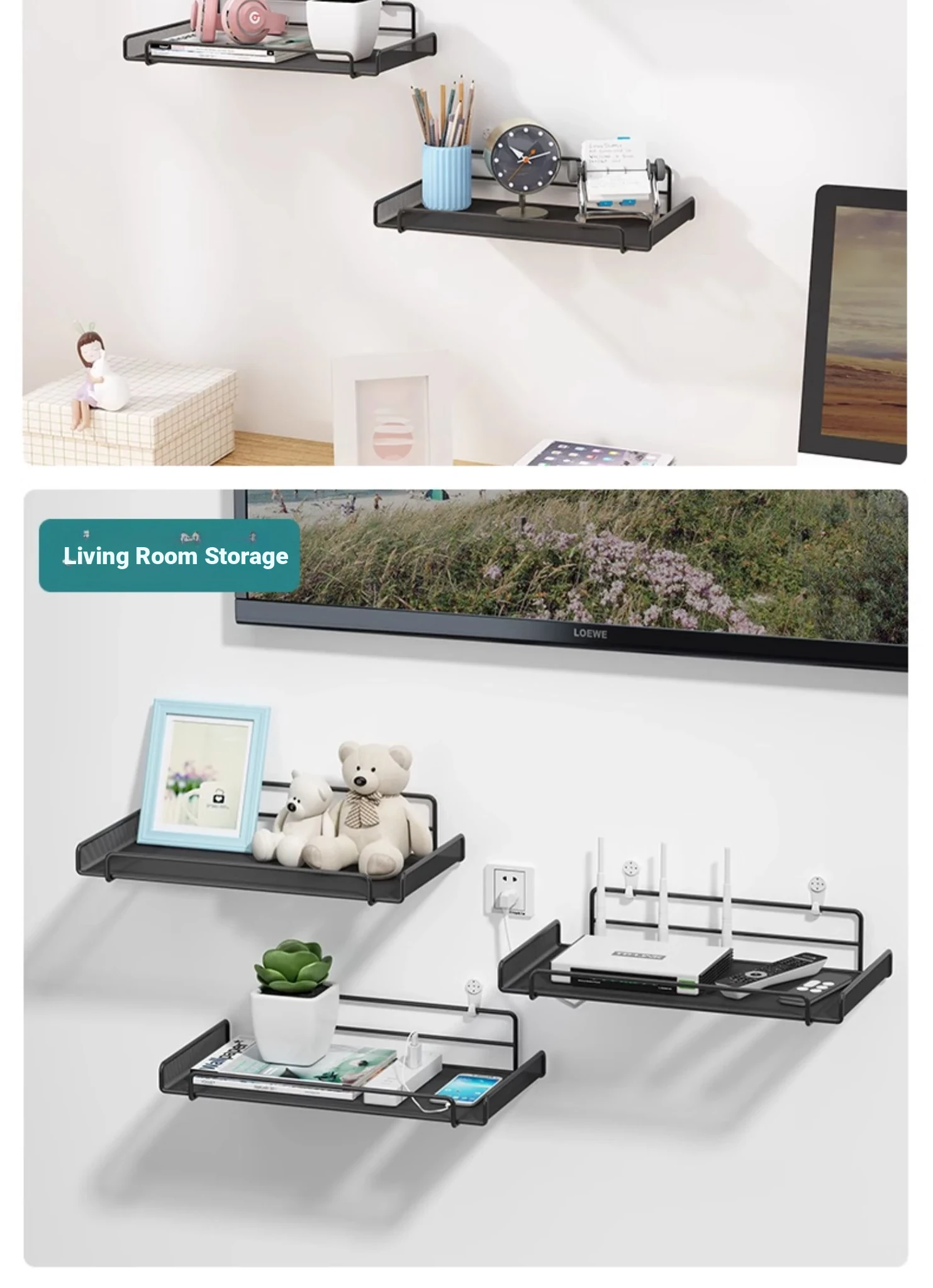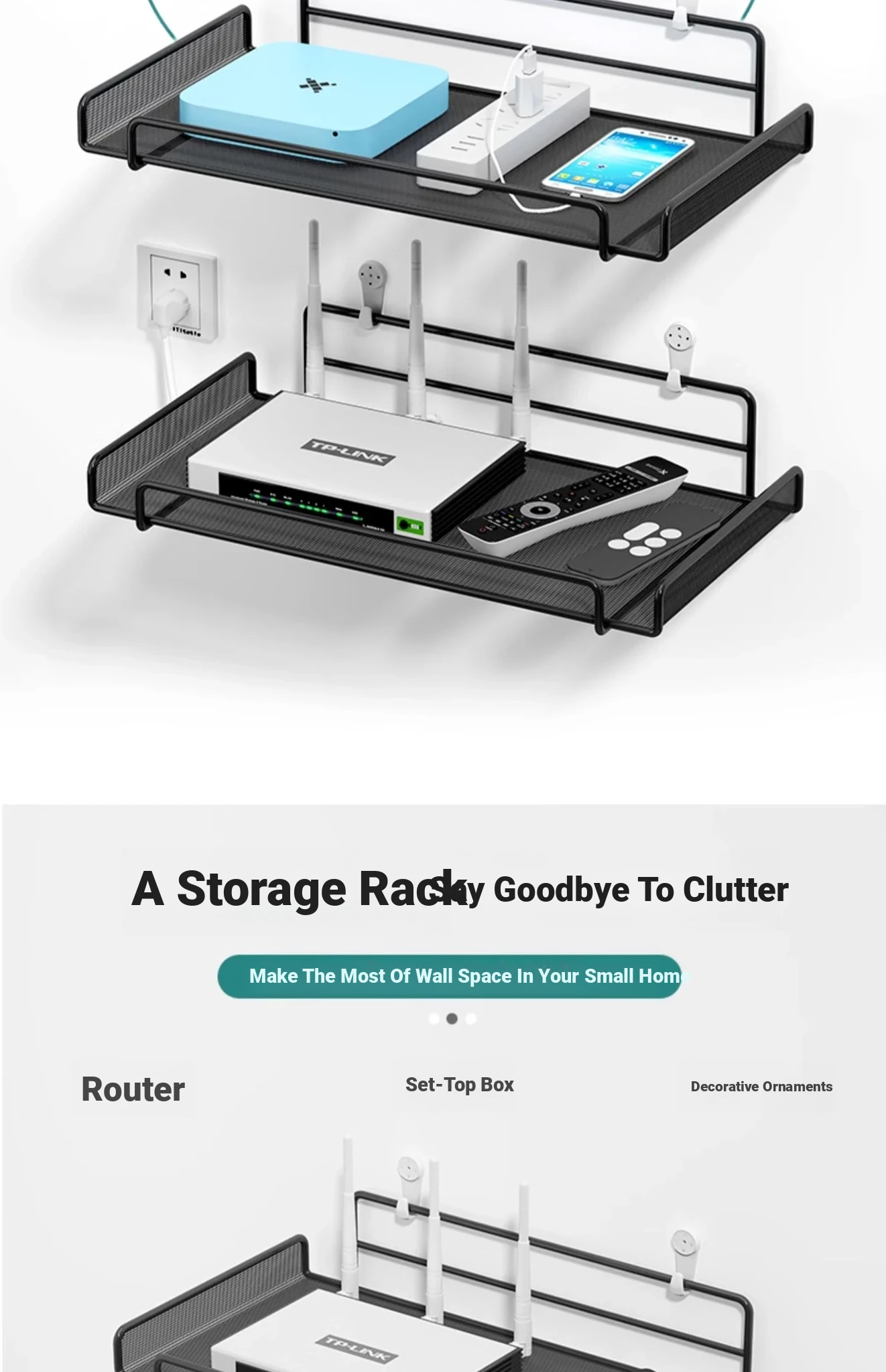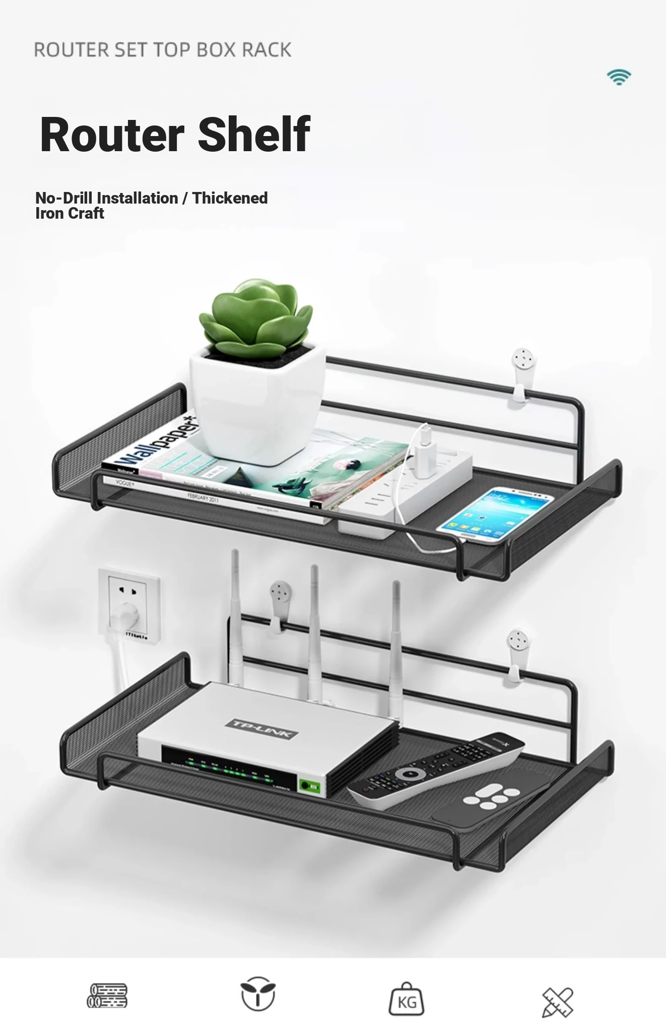 Wall-Mounted Router and TV Box Shelf - No Drilling Required, Perfect for Living Room WiFi Storage and Organization Solutions