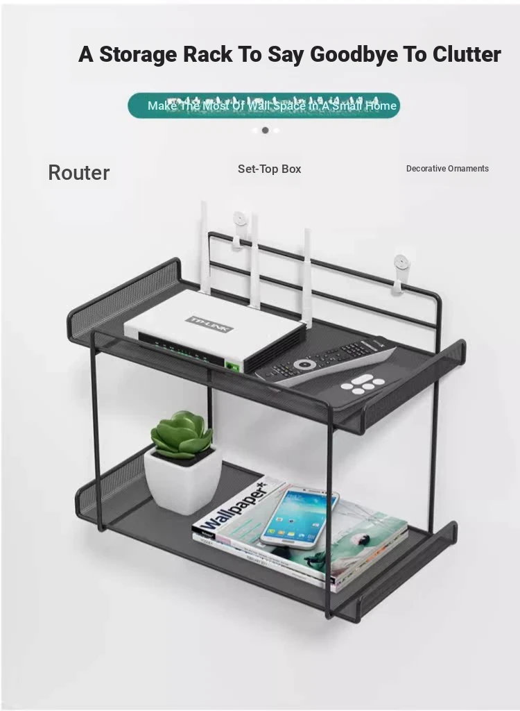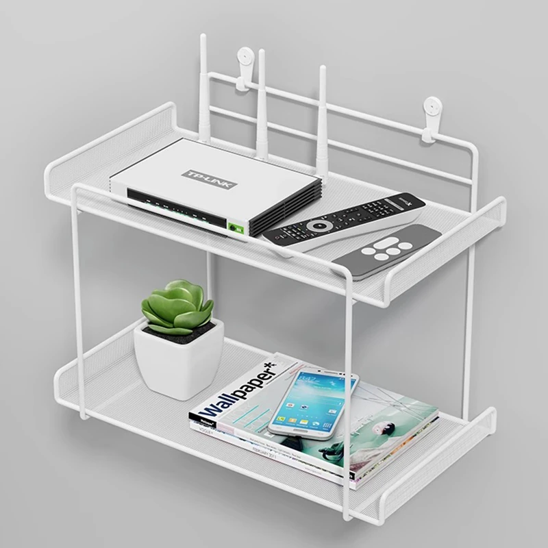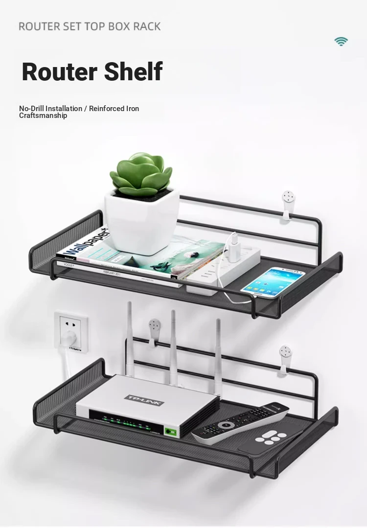 Wall-Mounted Router and TV Box Storage Shelf - No Drill WiFi Organizer Bracket for Easy Installation and Clutter-Free Space