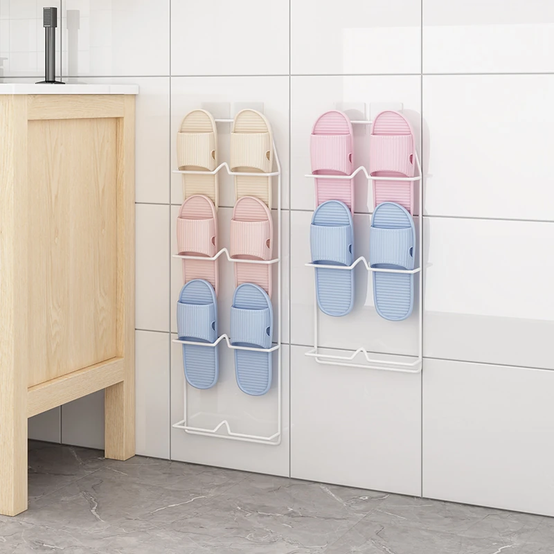 Wall-Mounted Slipper Rack - No Drilling Required! Stylish Bathroom Shoe Organizer for Easy Storage in Toilet and Restroom - Keep Your Space Neat and Tidy!