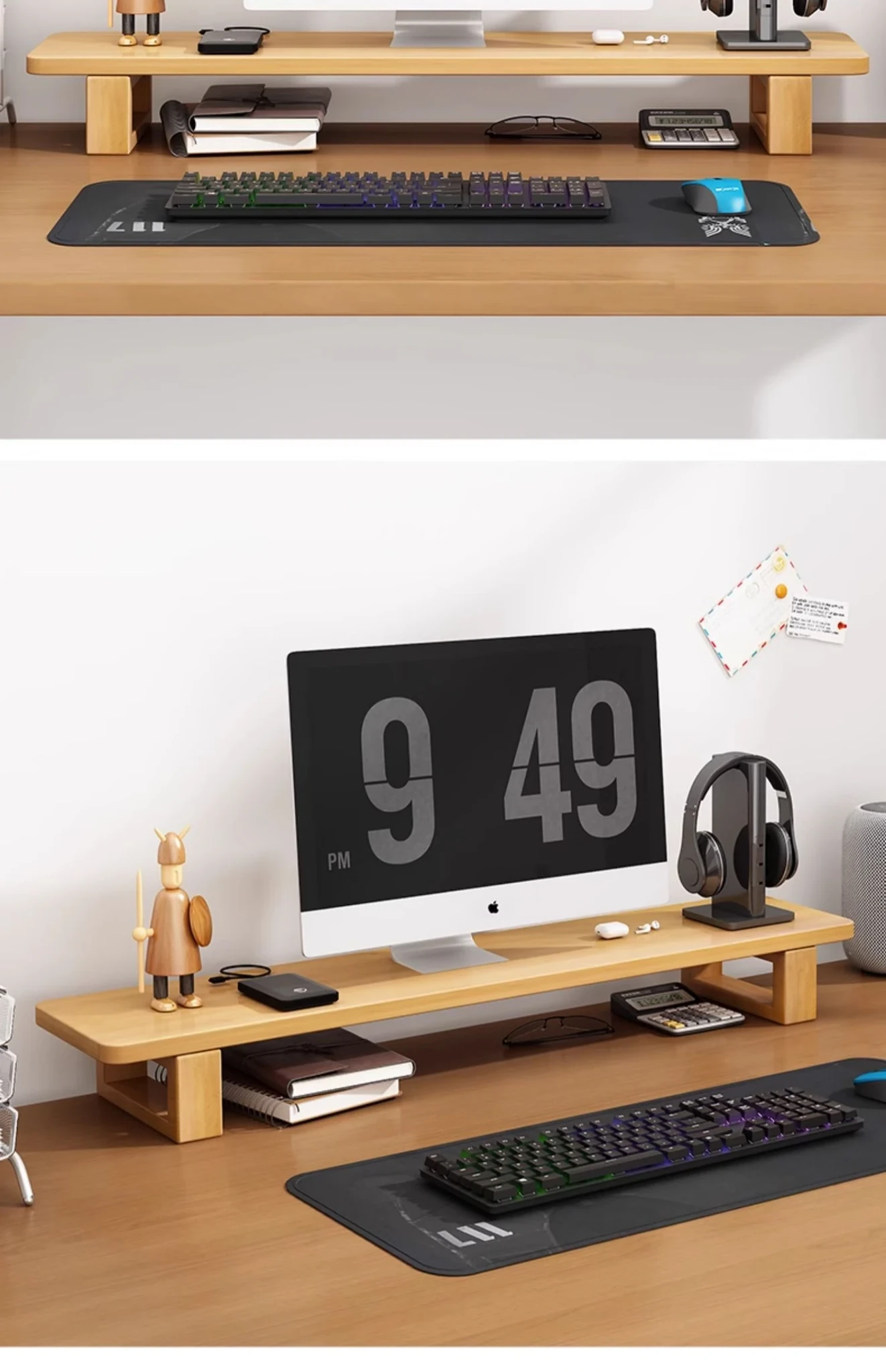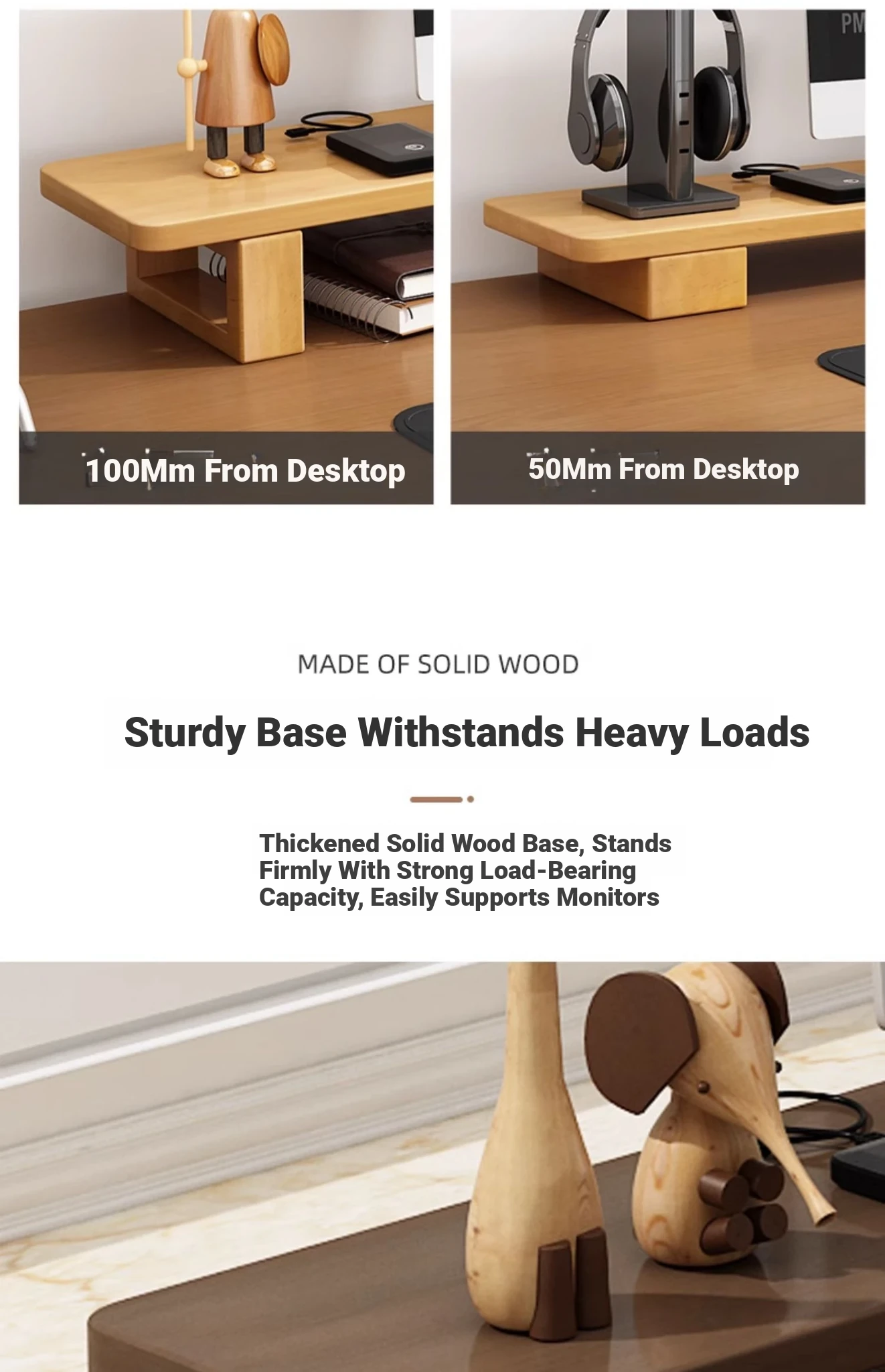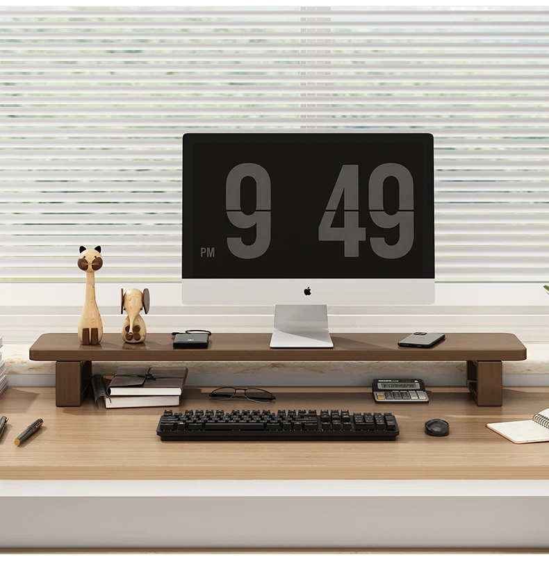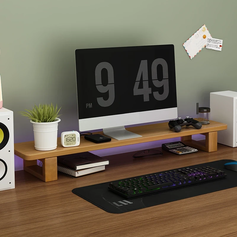 Wooden Monitor Stand for Desktop - Stylish Office Desk Organizer, Laptop Holder, and Storage Rack for Efficient Workspace Management.