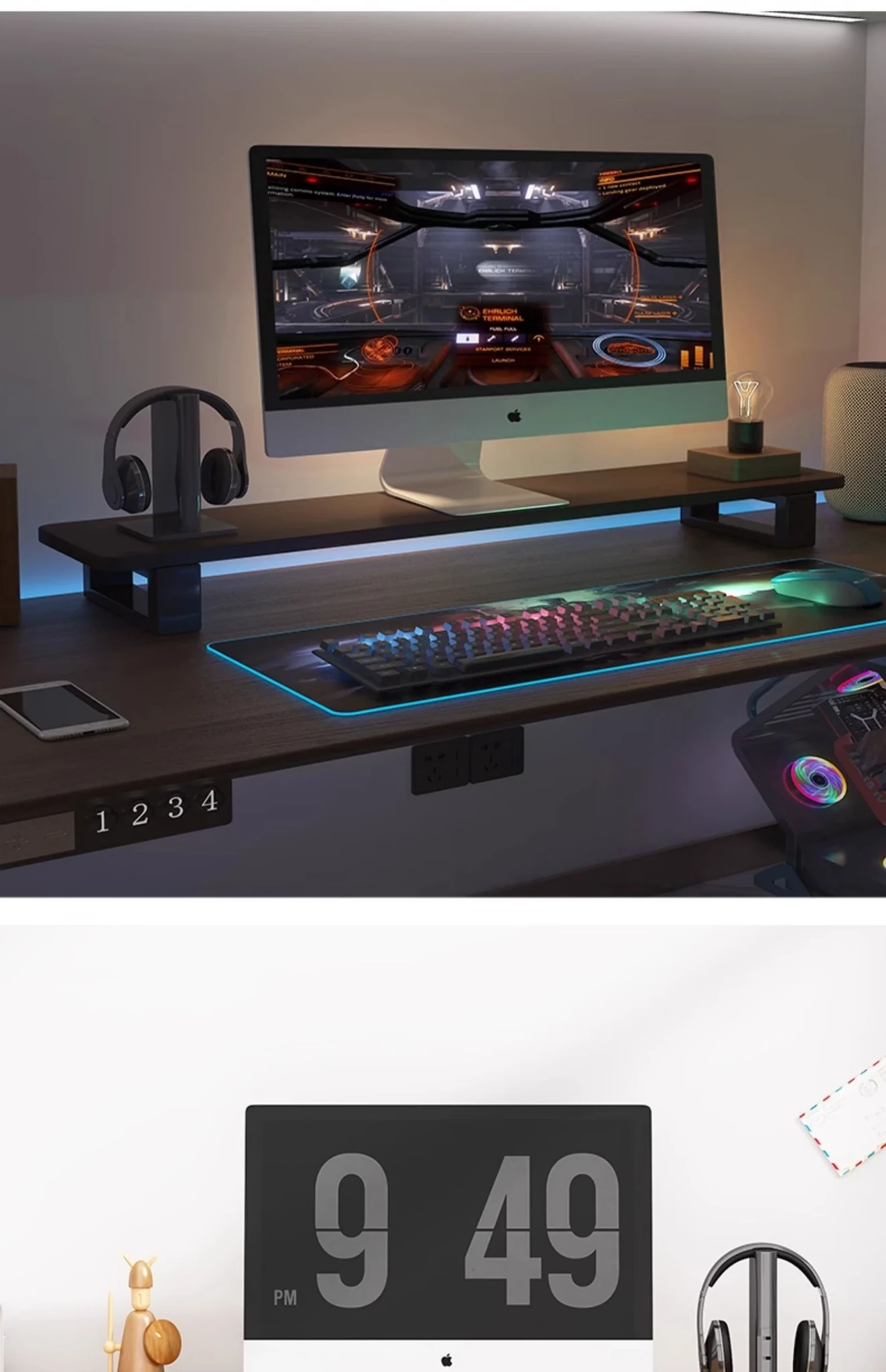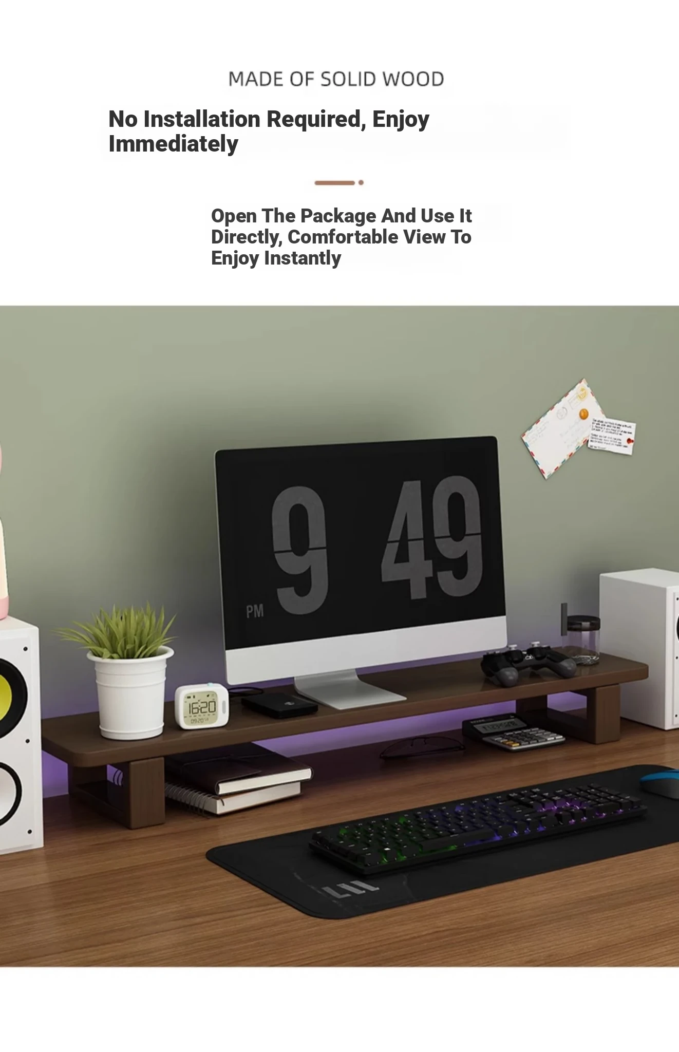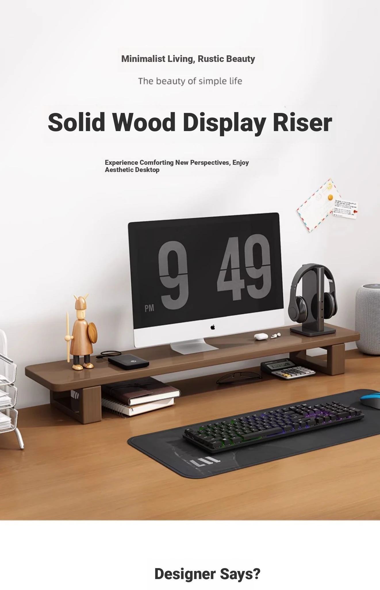 Wooden Monitor Stand for Desktop - Stylish Office Desk Organizer, Laptop Holder, and Storage Rack for Efficient Workspace Management.