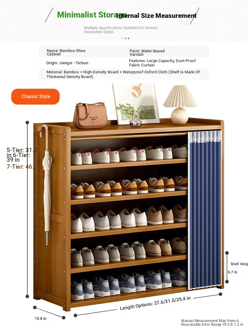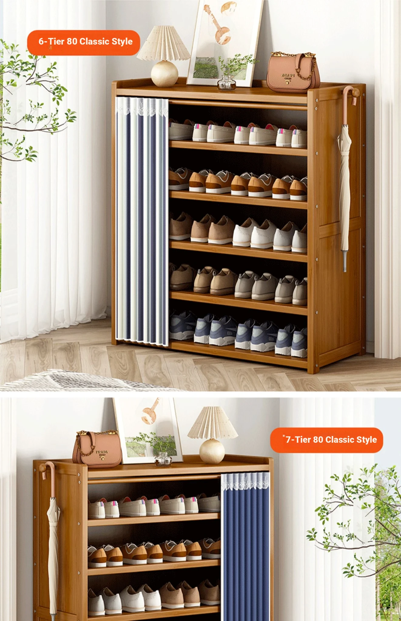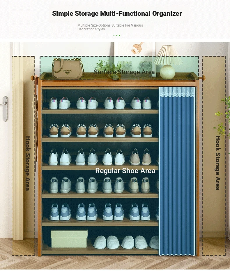 2022 New Arrival Large Capacity Shoe Rack - Stylish and Simple Indoor Storage Solution for Entryway, Dustproof Wooden Bamboo Shoe Cabinet for Bedroom