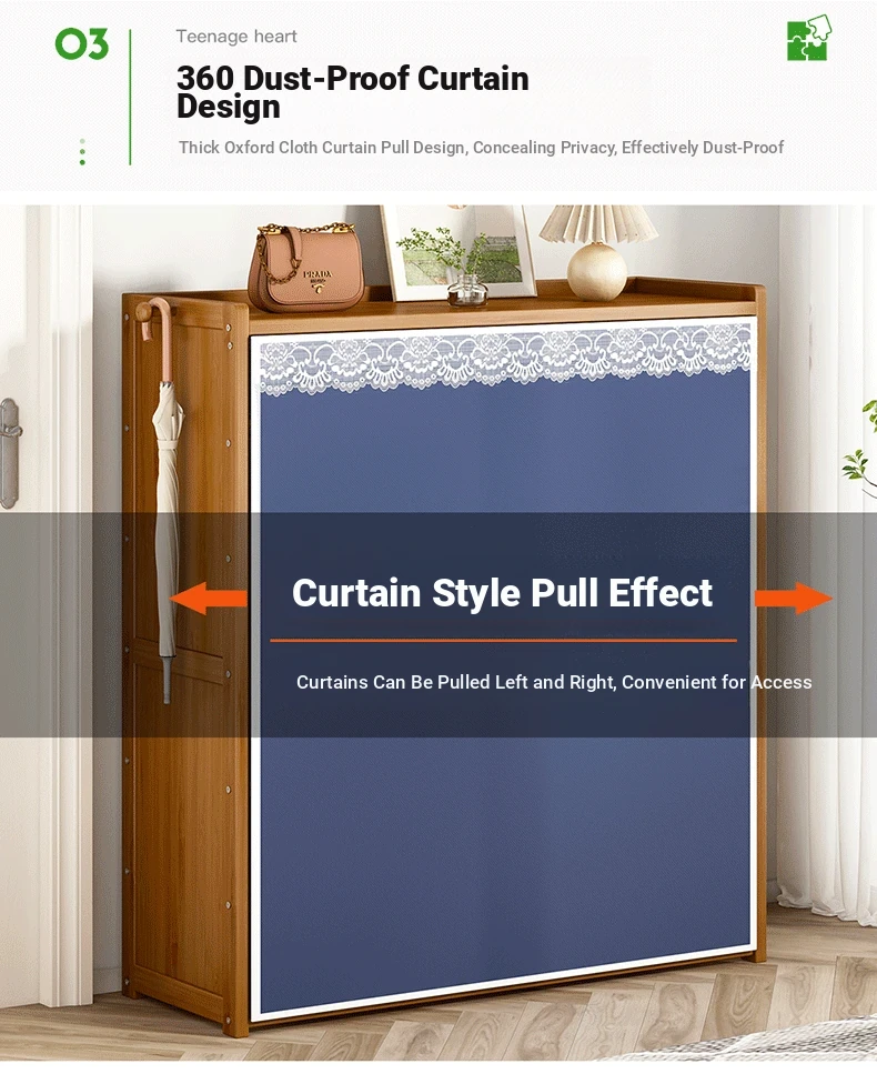 Six layers of 99 high and 100 long [Stripes dust curtain] can hold 25 pairs of shoes