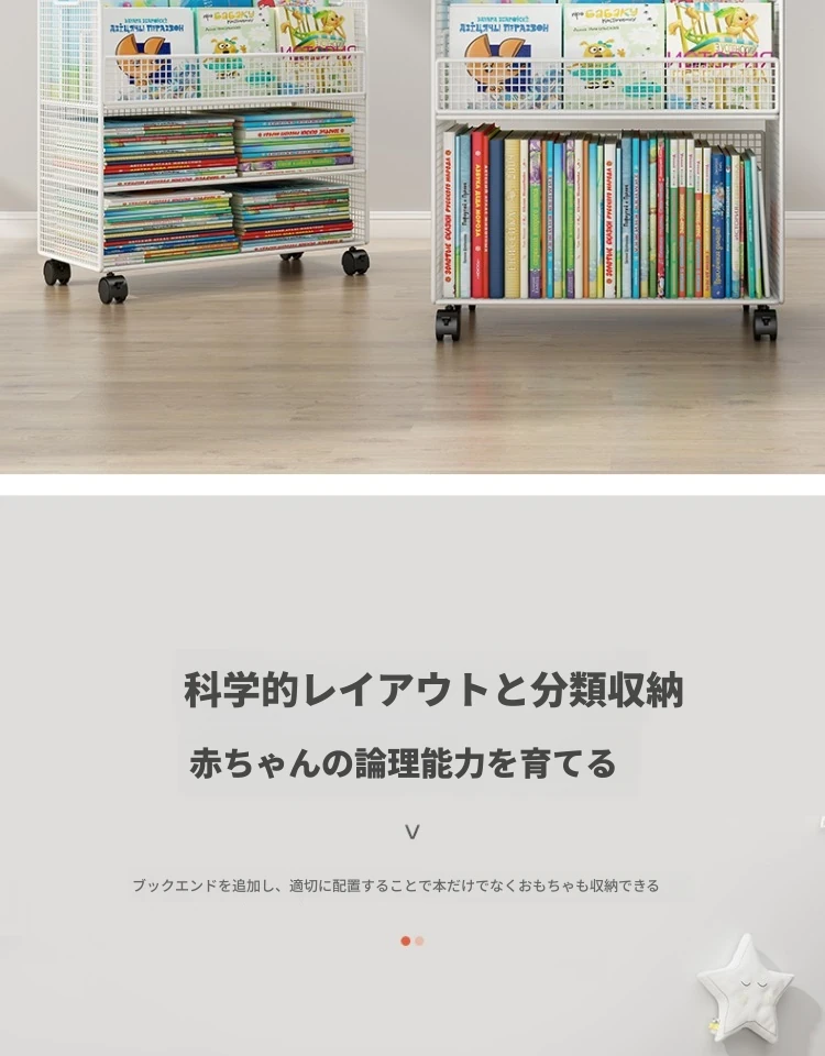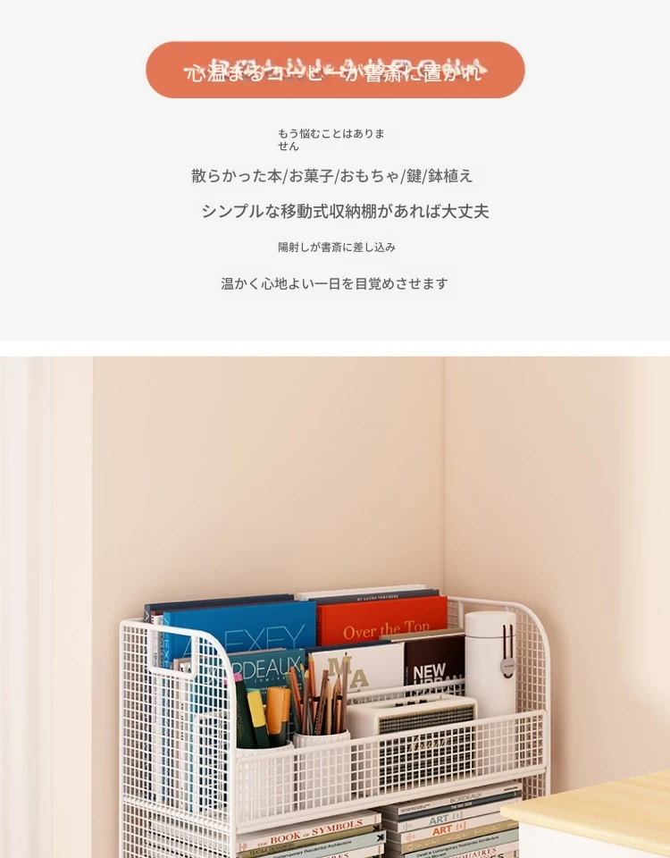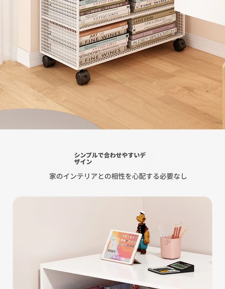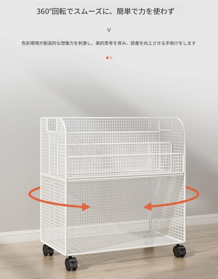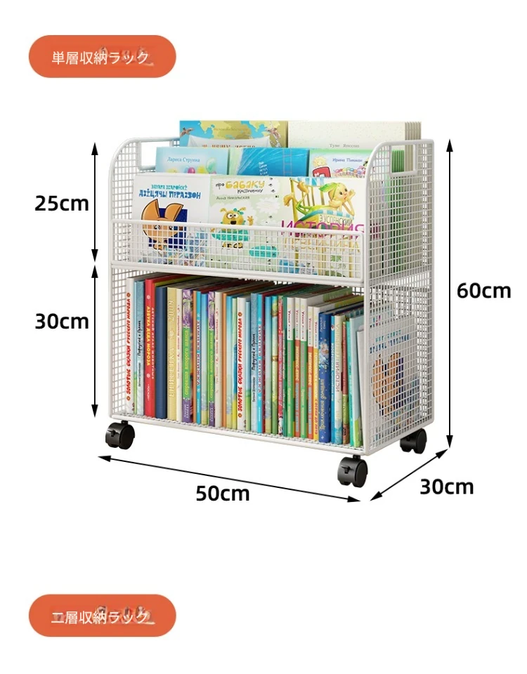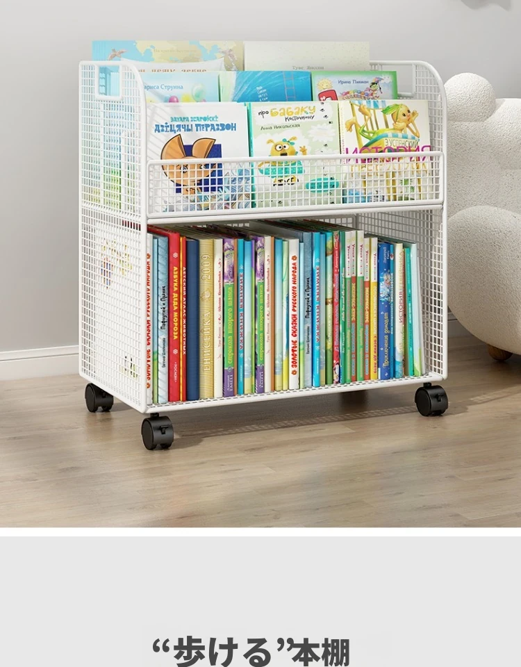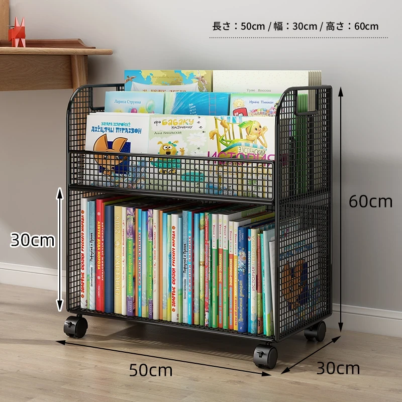 デスクサイドにぴったり!移動可能な2段式ブックシェルフ付き収納キャビネット。子供の本やおもちゃをスッキリ整理できる、シンプルで使いやすいラックです。