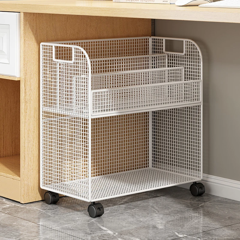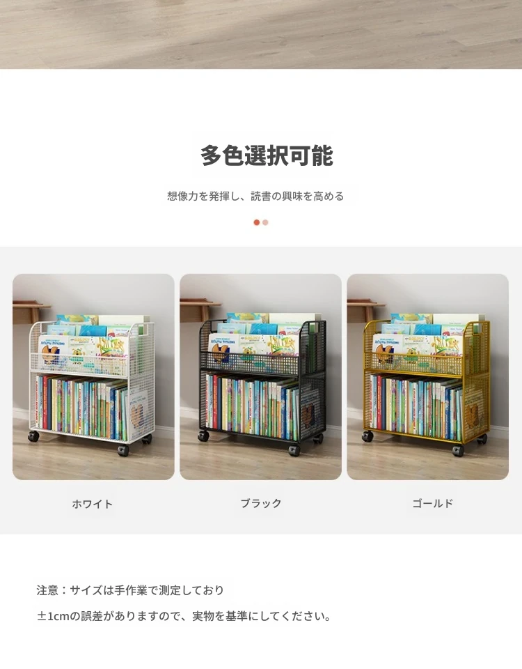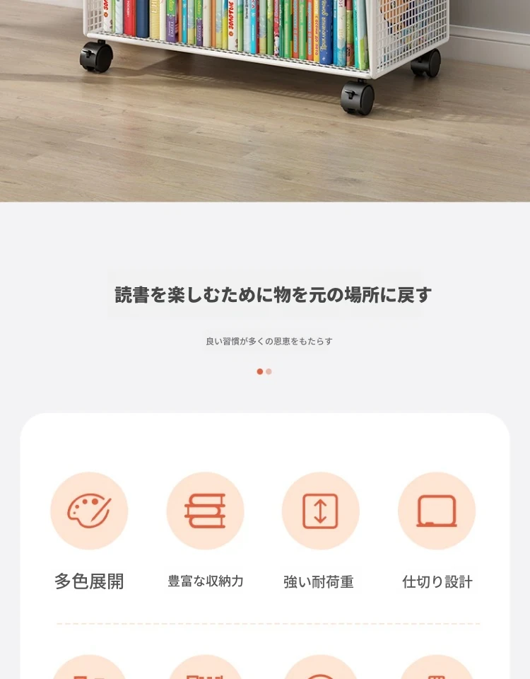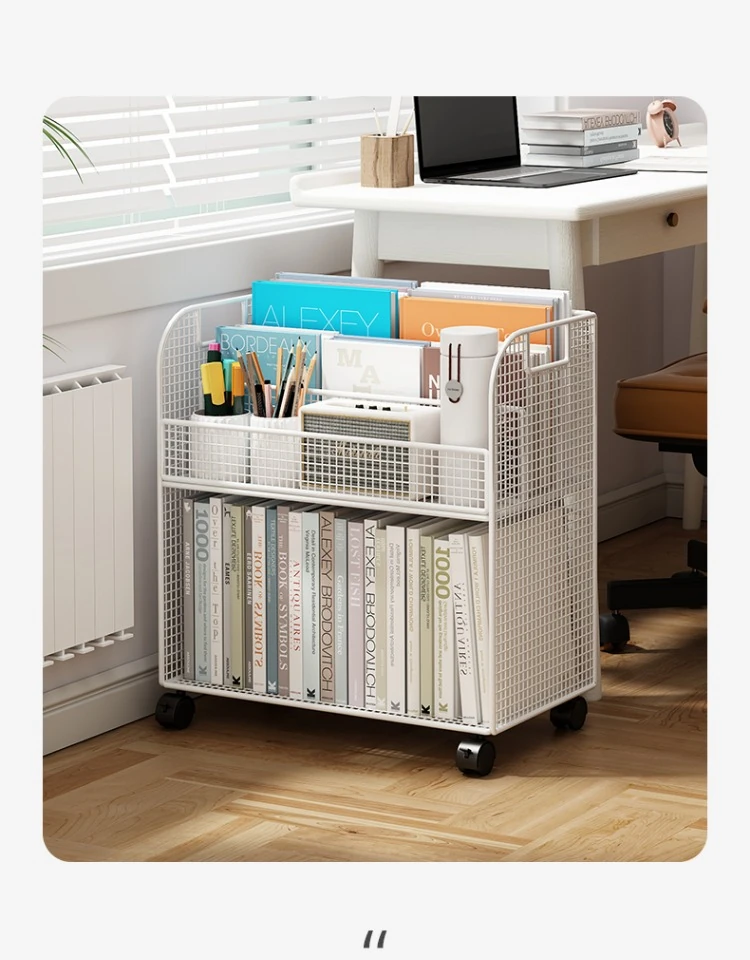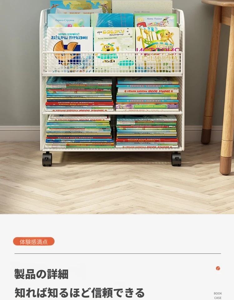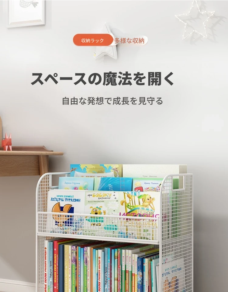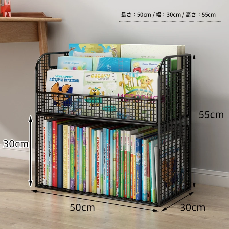 デスクサイドにぴったり!移動可能な2段式ブックシェルフ付き収納キャビネット。子供の本やおもちゃをスッキリ整理できる、シンプルで使いやすいラックです。