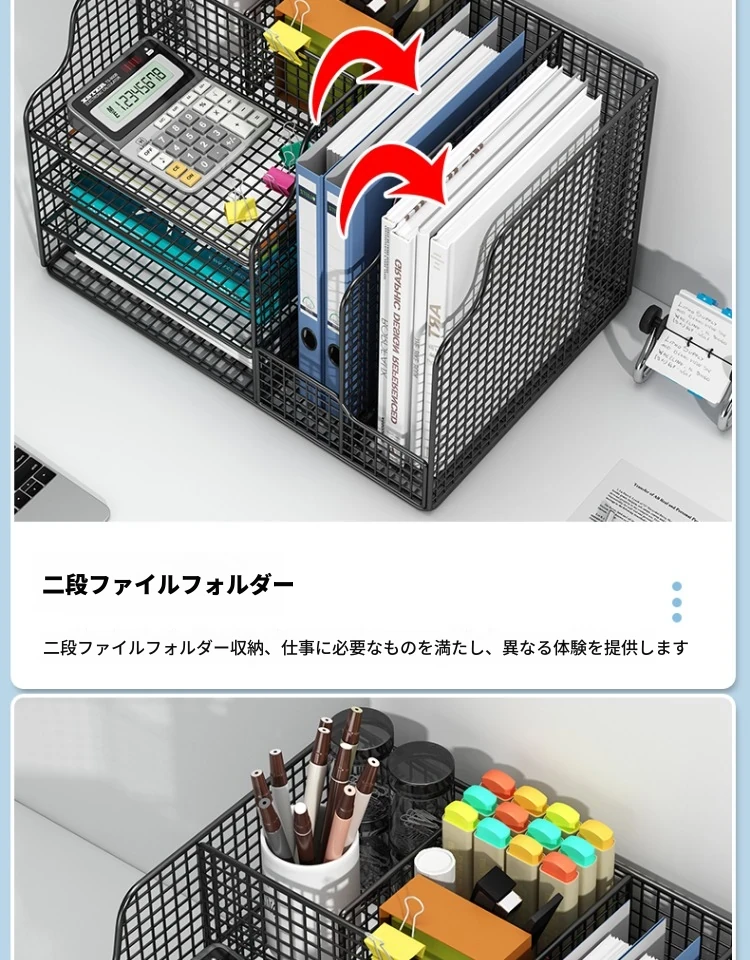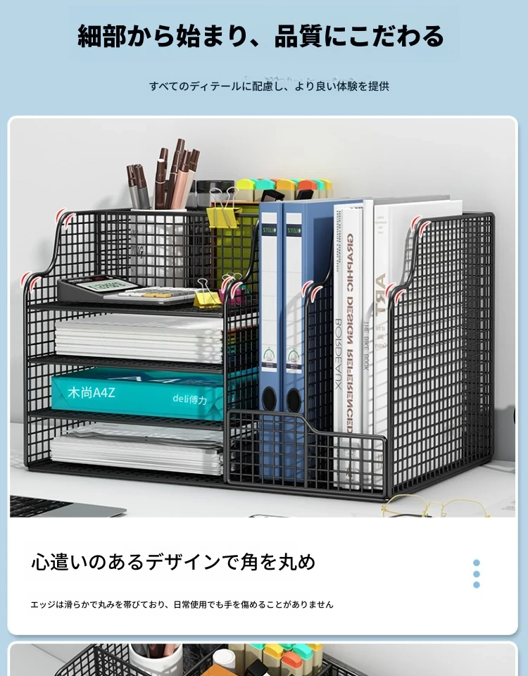 A4ファイルホルダー デスクスタンド式書棚 オフィス用品 収納整理ラック デスク周りをスッキリ!資料や書類をスマートに収納し、作業効率アップ!