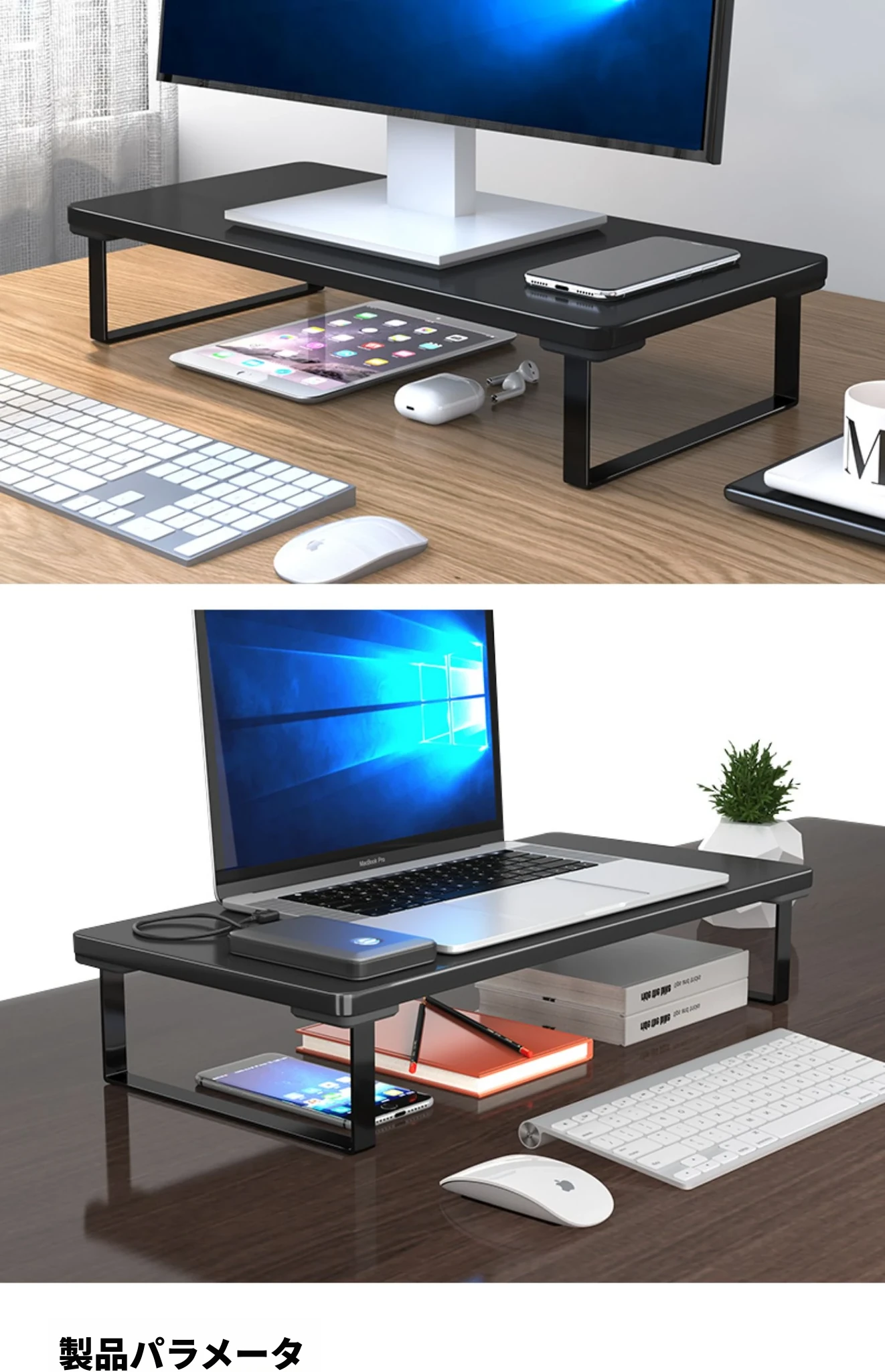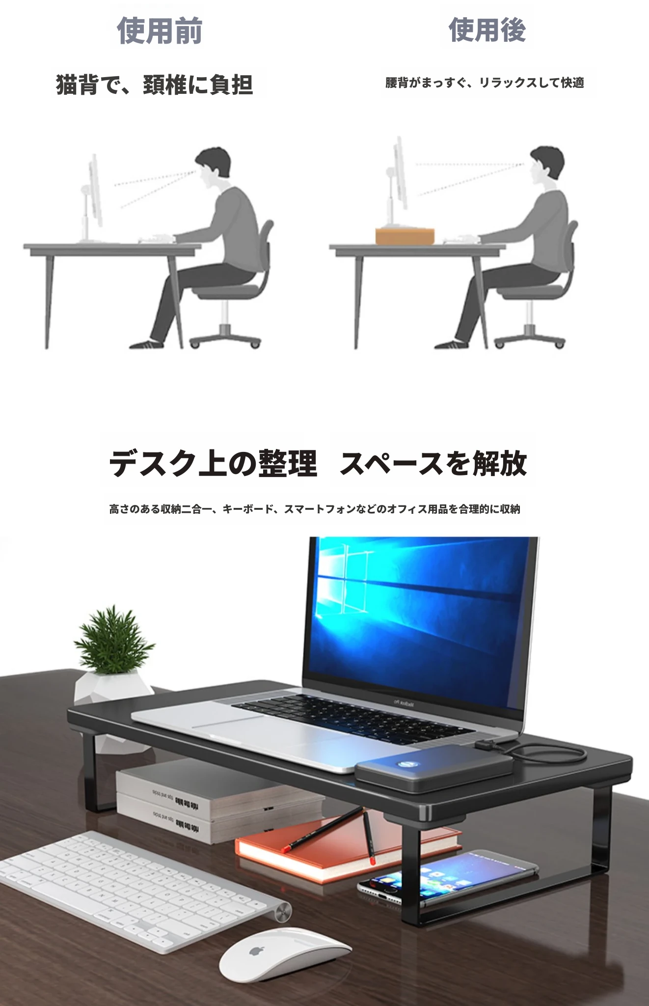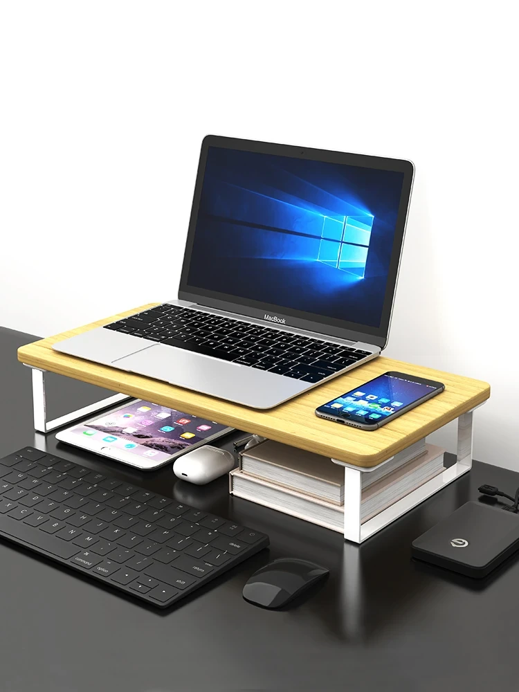 ノートパソコン用昇降スタンド デスク収納オーガナイザー オフィス用デスクトップモニターベース 高さ調整可能なサポート 台所やオフィスでの作業効率アップに最適!