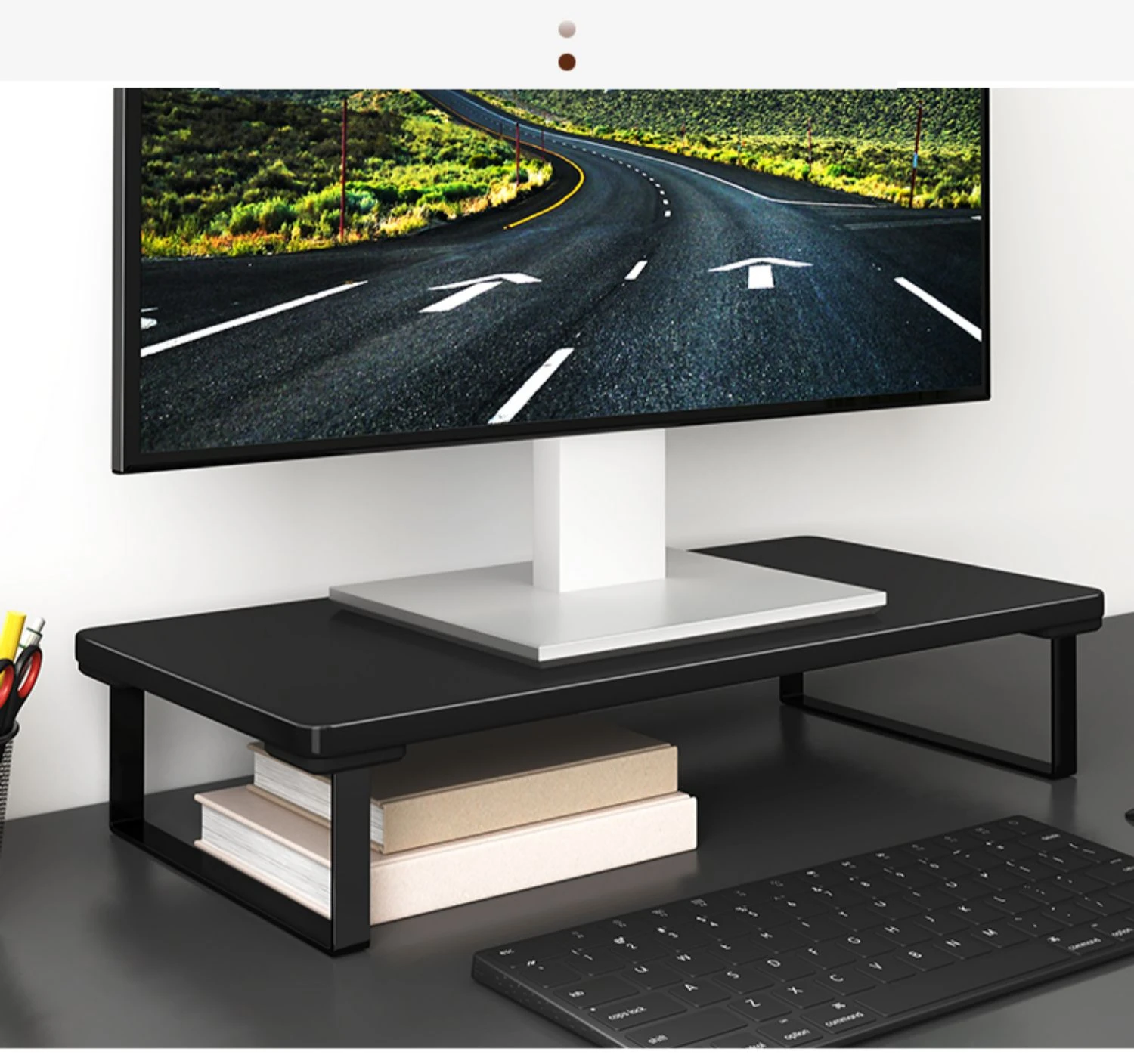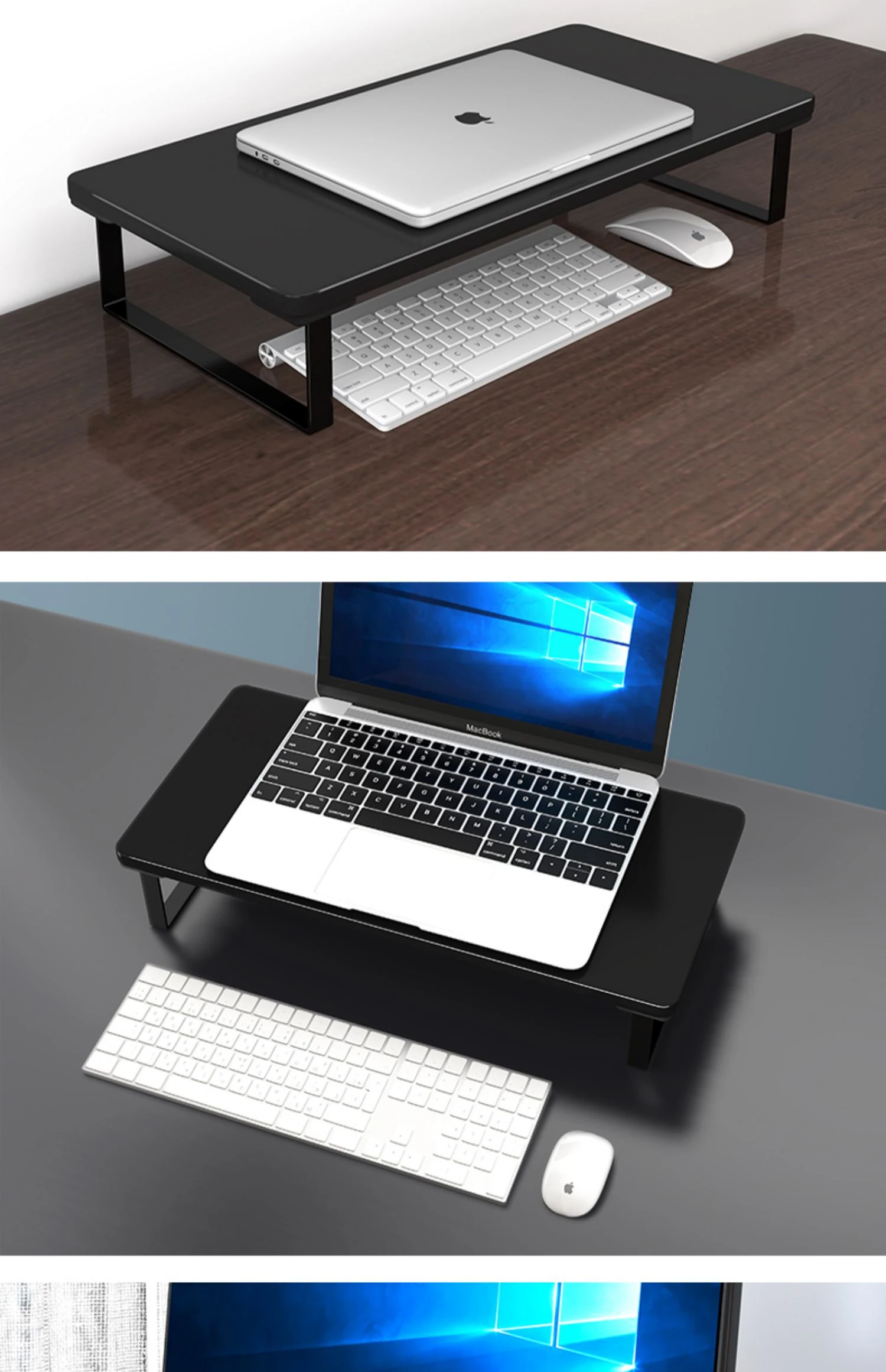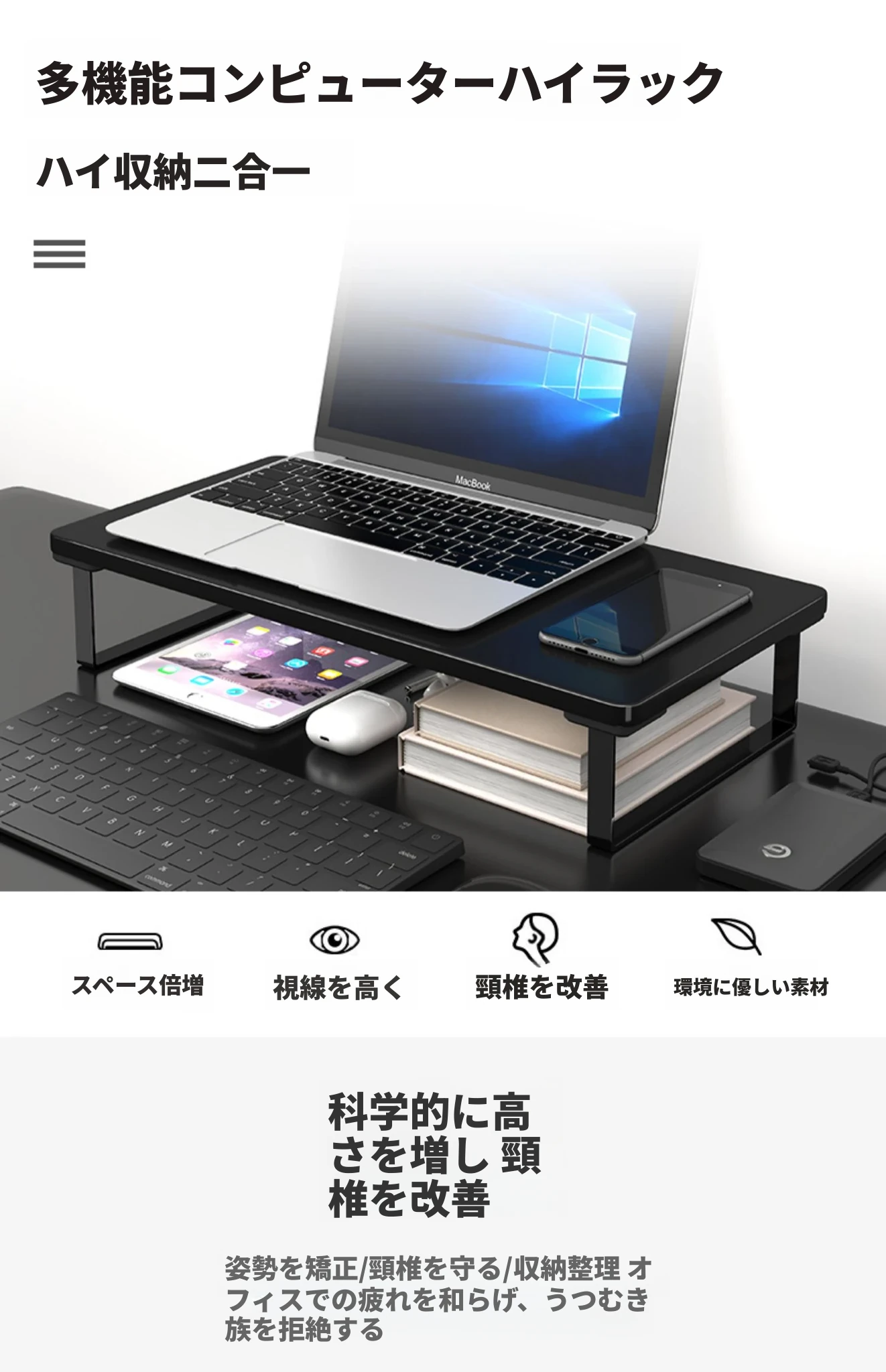 ノートパソコン用昇降スタンド デスク収納オーガナイザー オフィス用デスクトップモニターベース 高さ調整可能なサポート 台所やオフィスでの作業効率アップに最適!