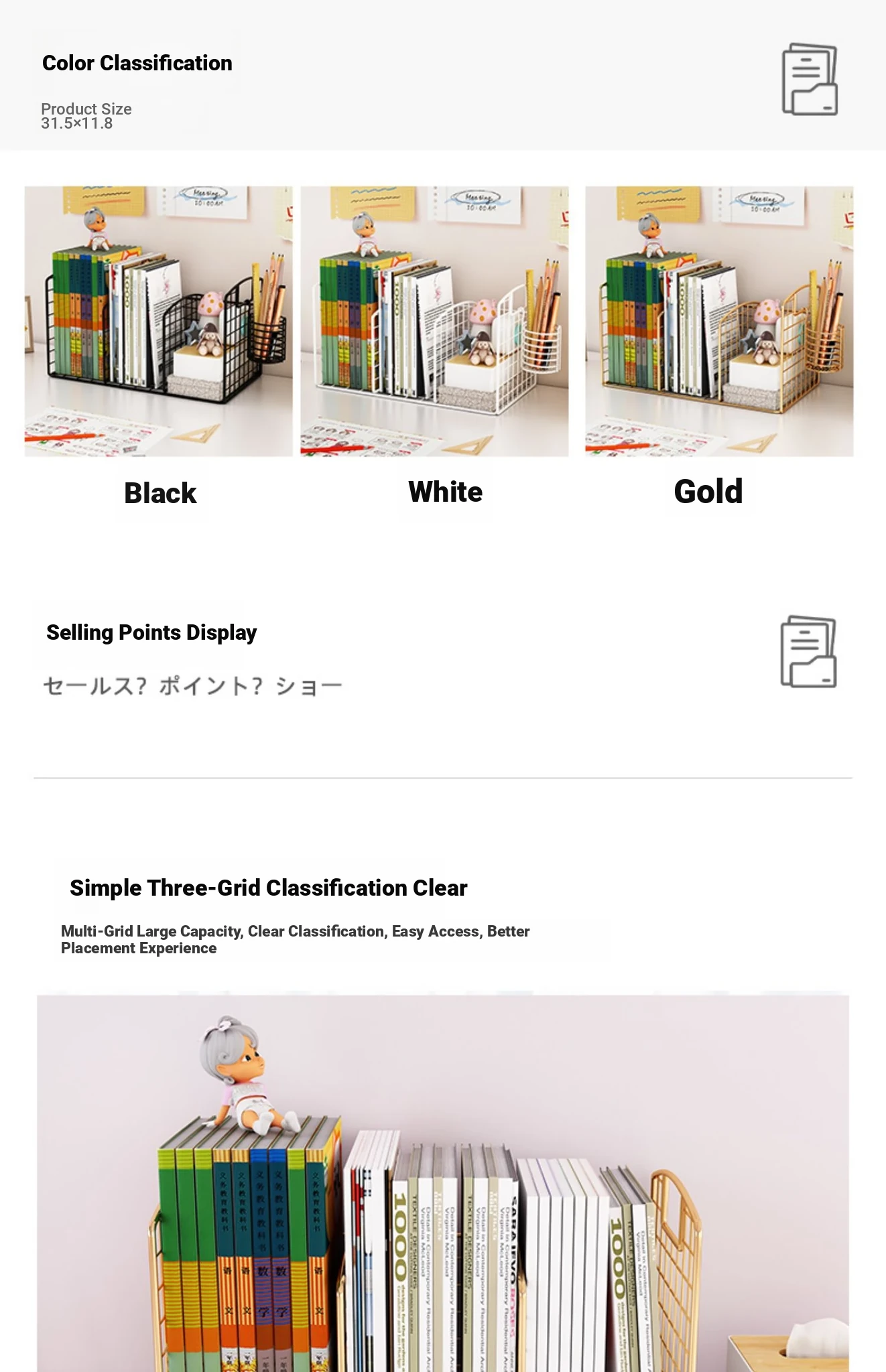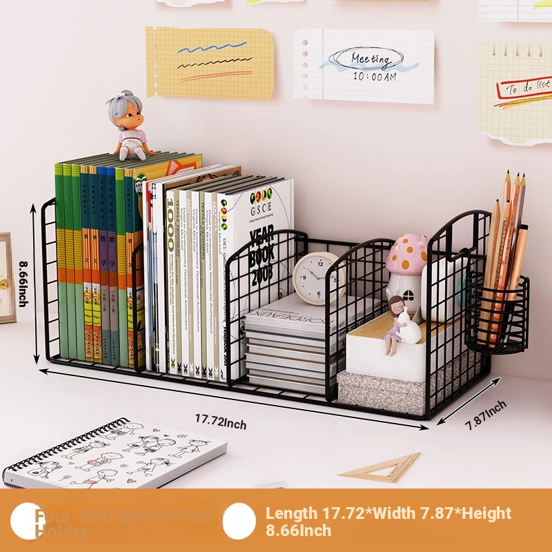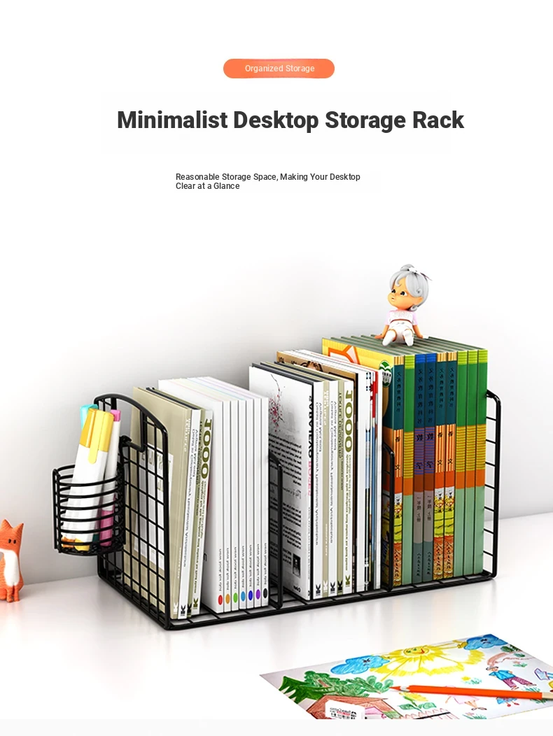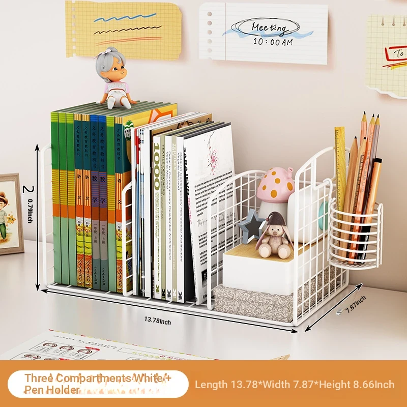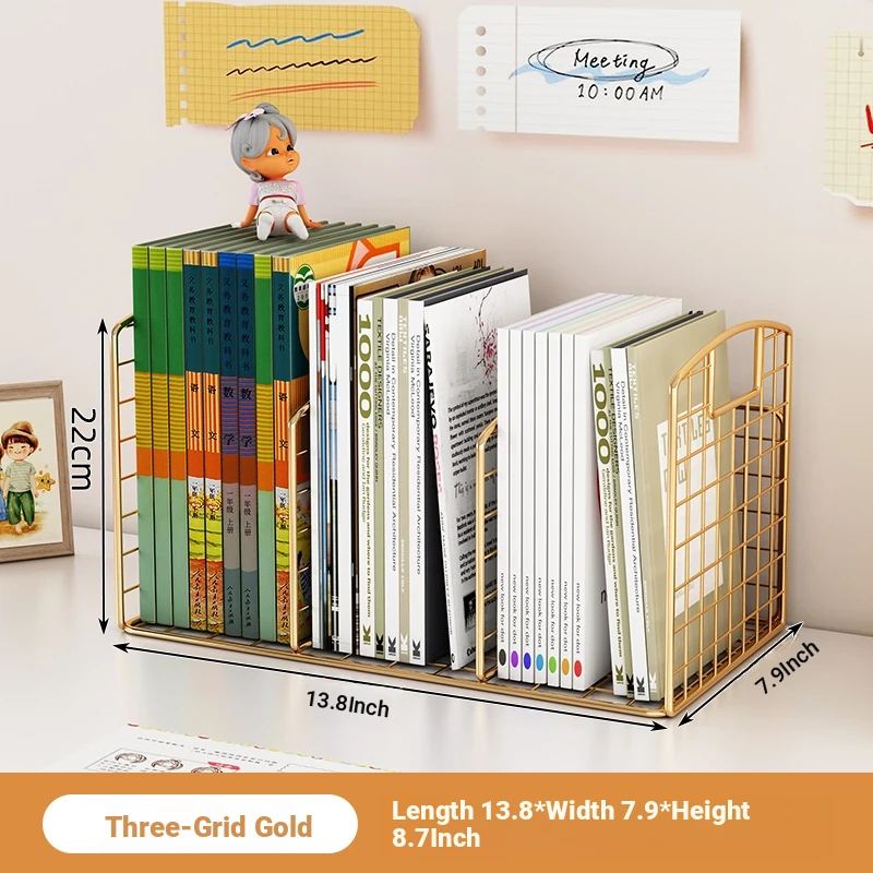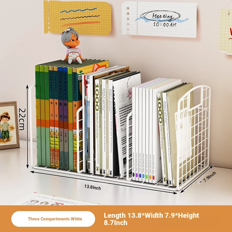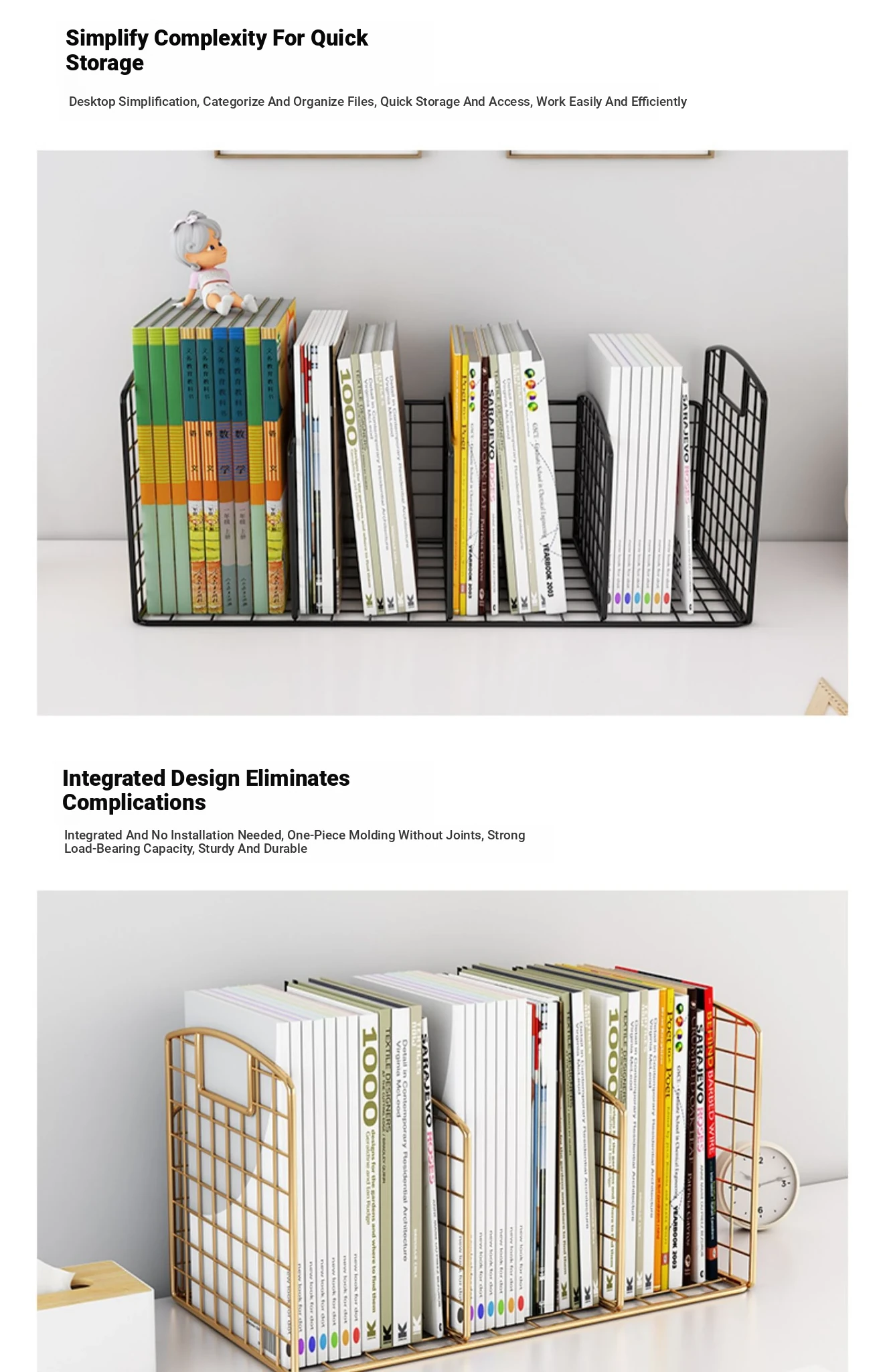 Book Stand and Organizer for College Students - Stylish Desktop Storage Rack for Exam Materials and Office Supplies, Featuring 3- and 4-Compartment Designs for Efficient Space Management