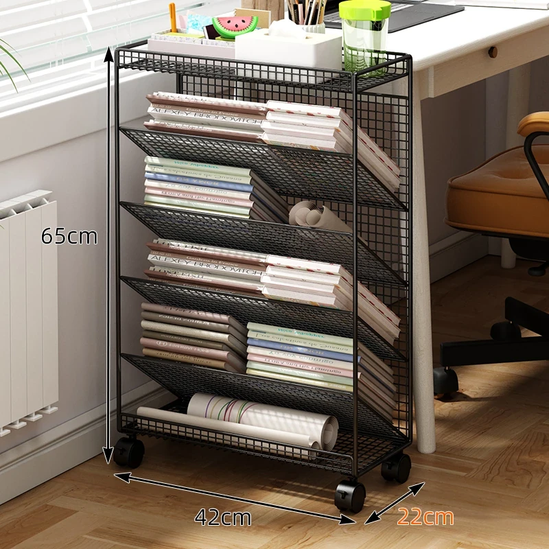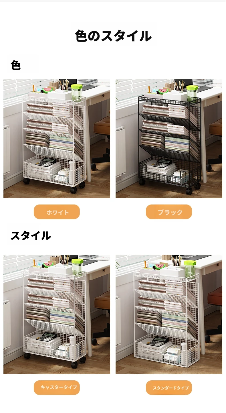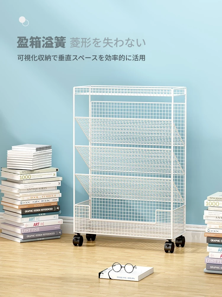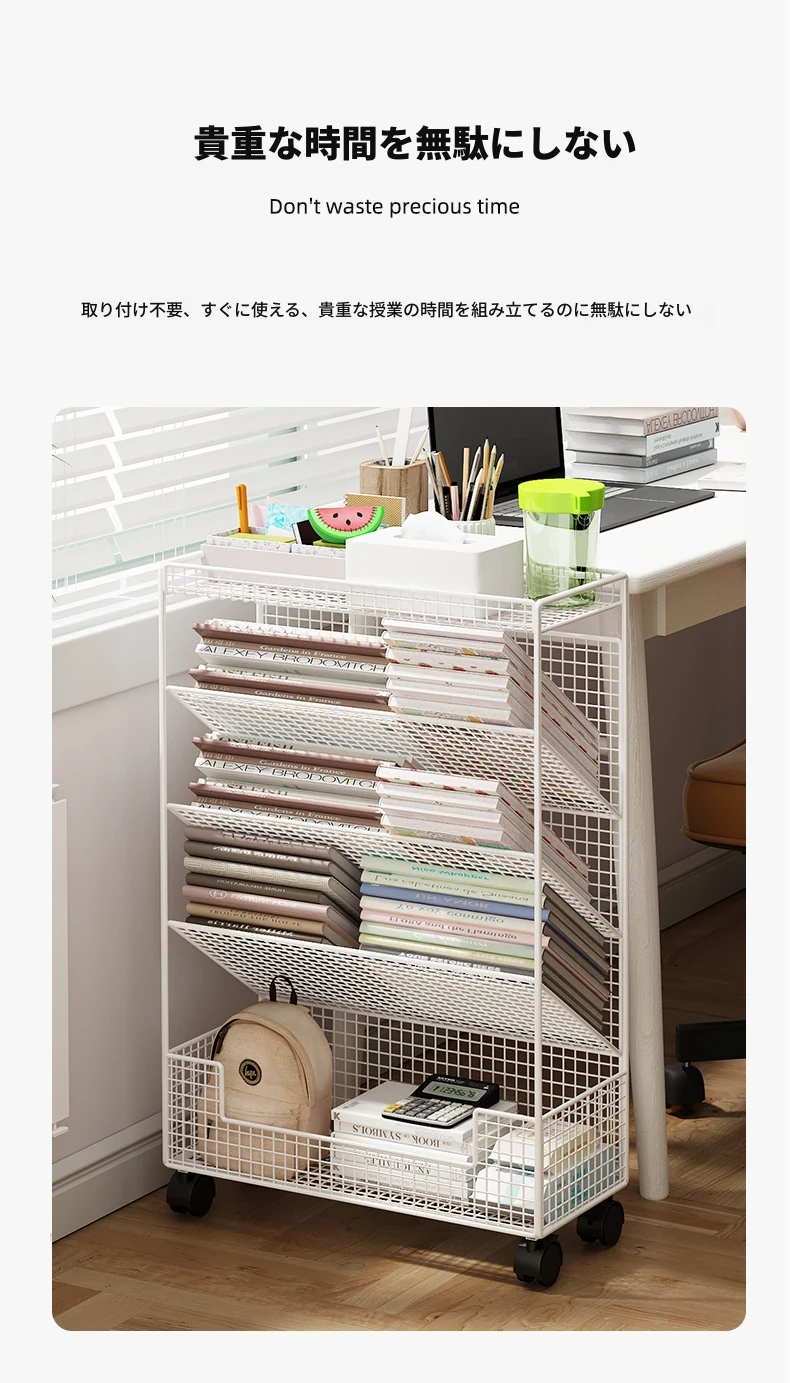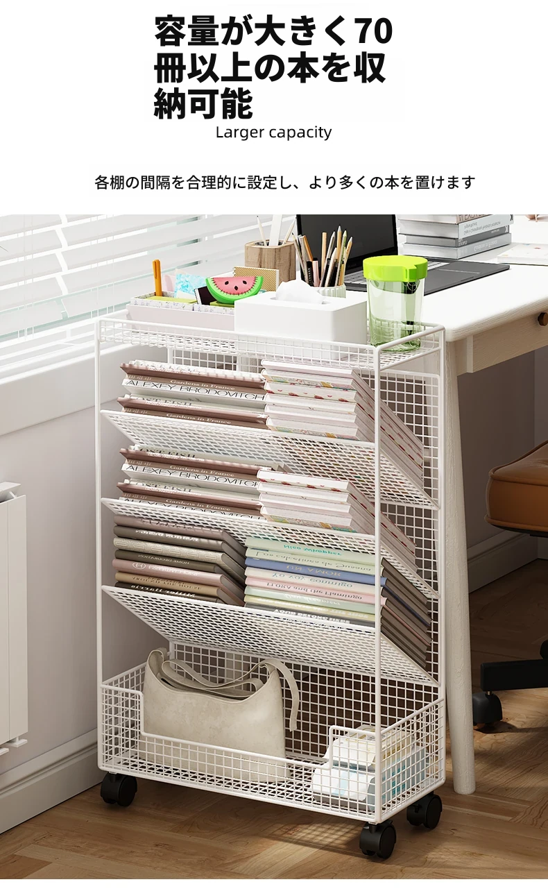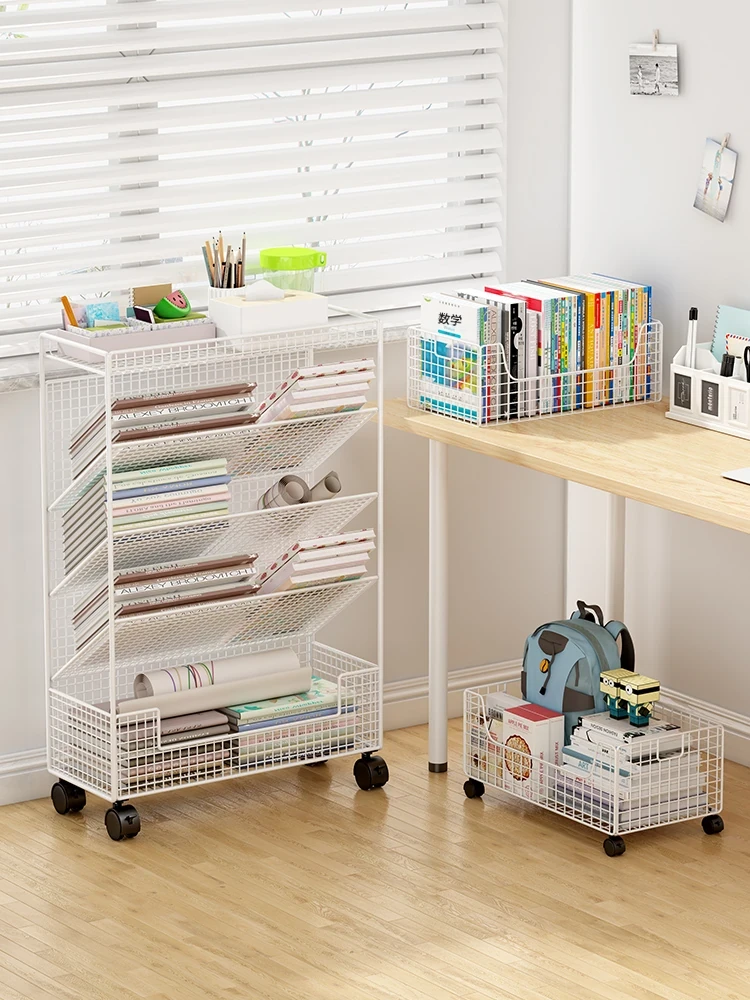 移動式の小型本棚 - 書斎や学習机の横にぴったり!子供用の簡易収納ラック、キャスター付きでラクラク移動可能。お部屋をスッキリ整理整頓し、楽しい読書タイムを実現!