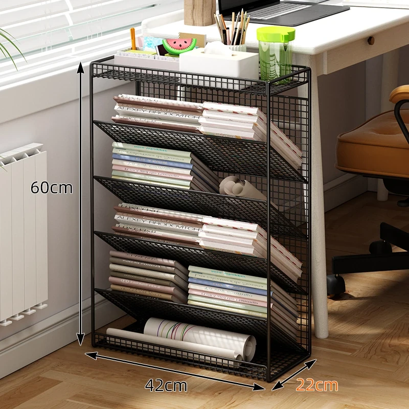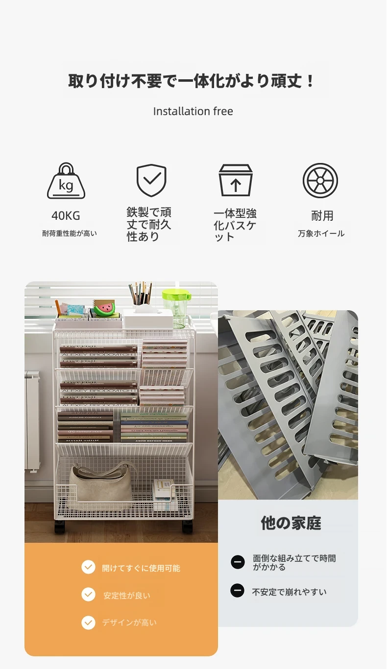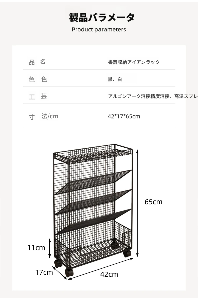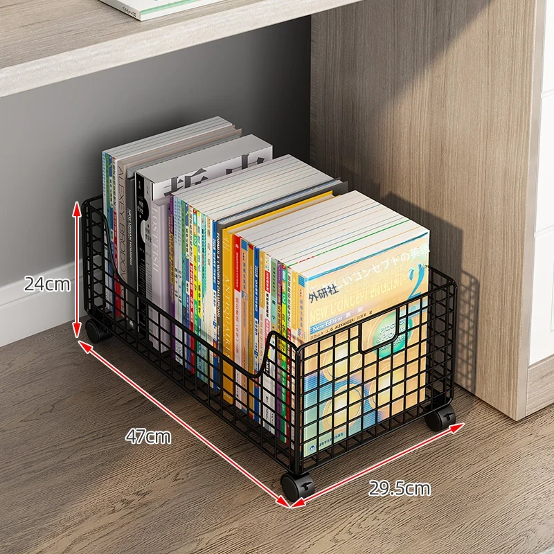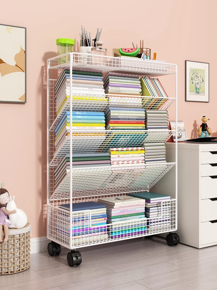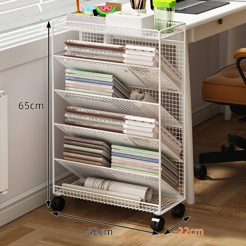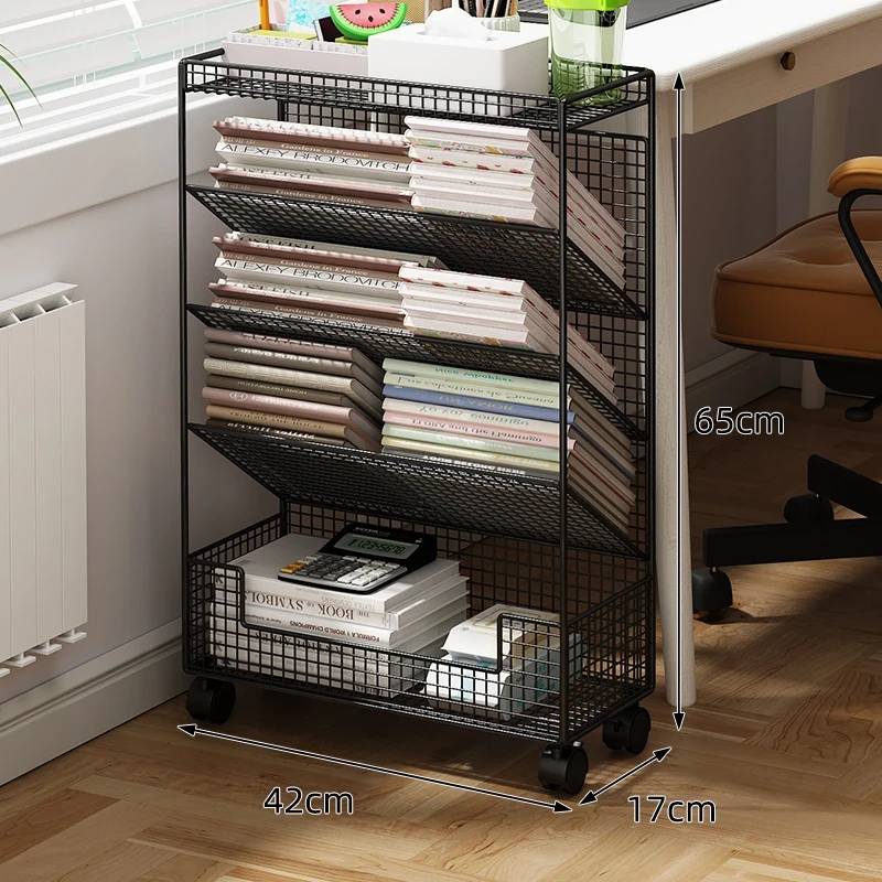 移動式の小型本棚 - 書斎や学習机の横にぴったり!子供用の簡易収納ラック、キャスター付きでラクラク移動可能。お部屋をスッキリ整理整頓し、楽しい読書タイムを実現!