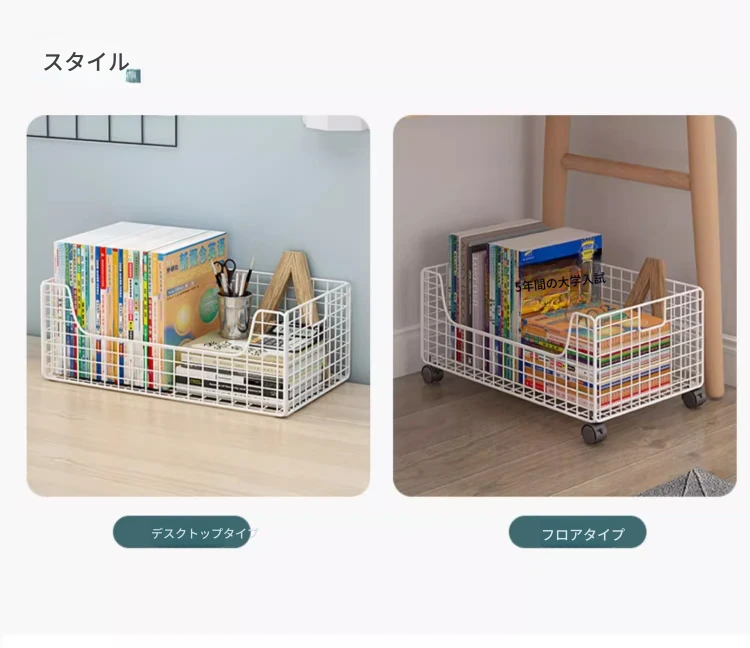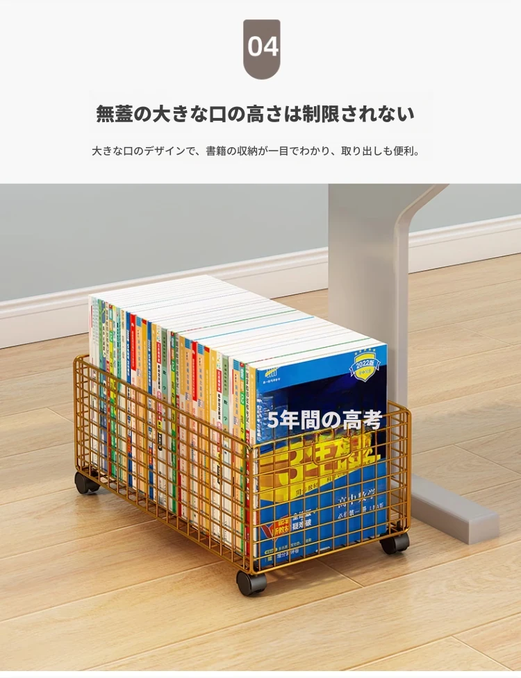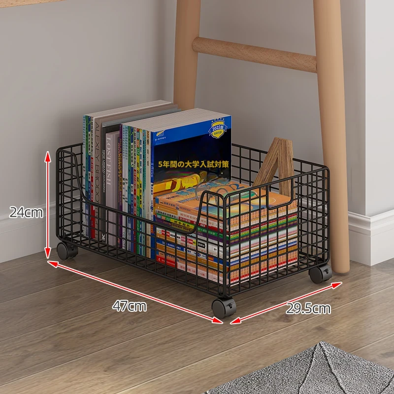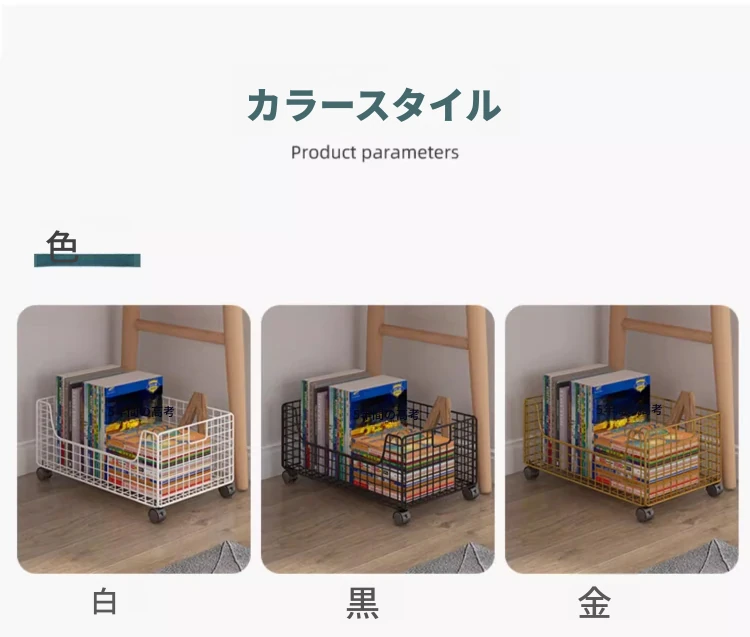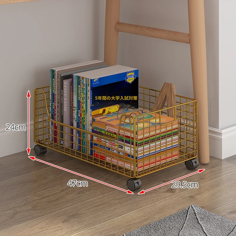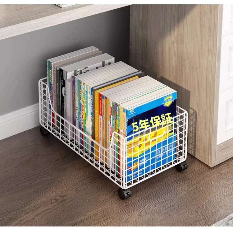 移動式キャスター付き小型ブックシェルフ - スペースを有効活用!簡単に持ち運べる、床置きタイプの本収納ラック。デスク下にぴったりのシンプルデザインで、おしゃれに本を整理整頓!