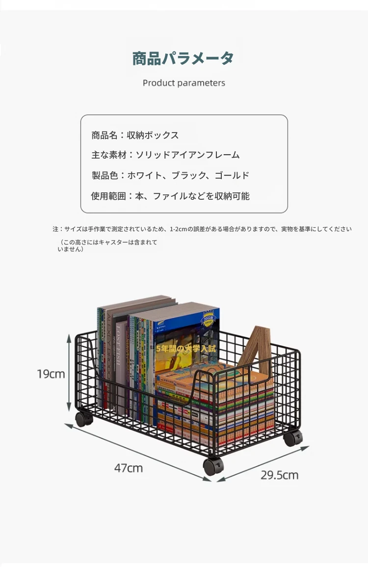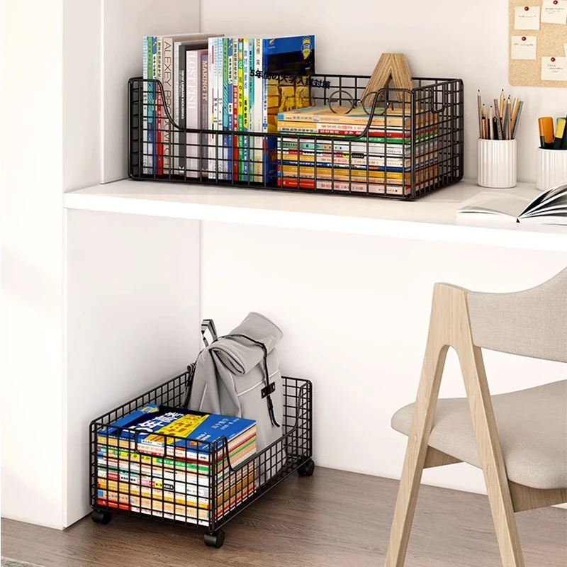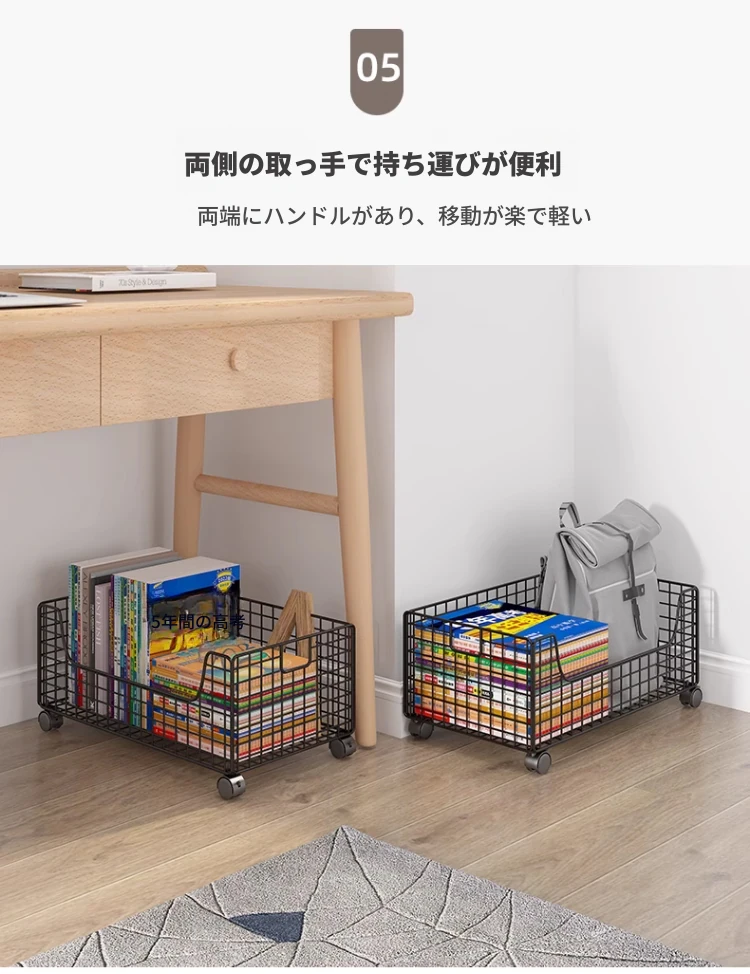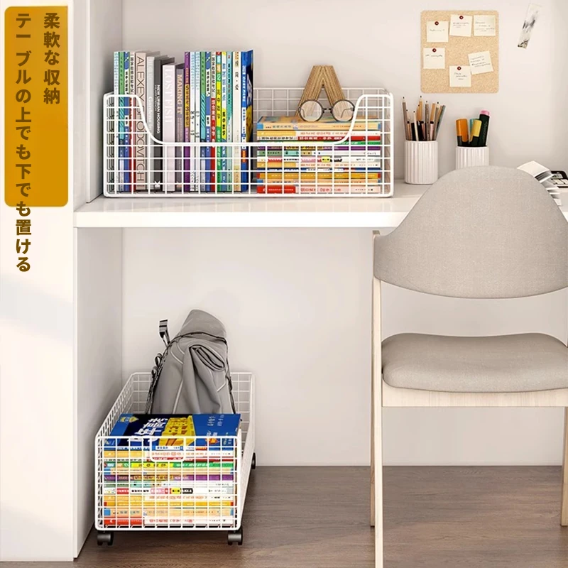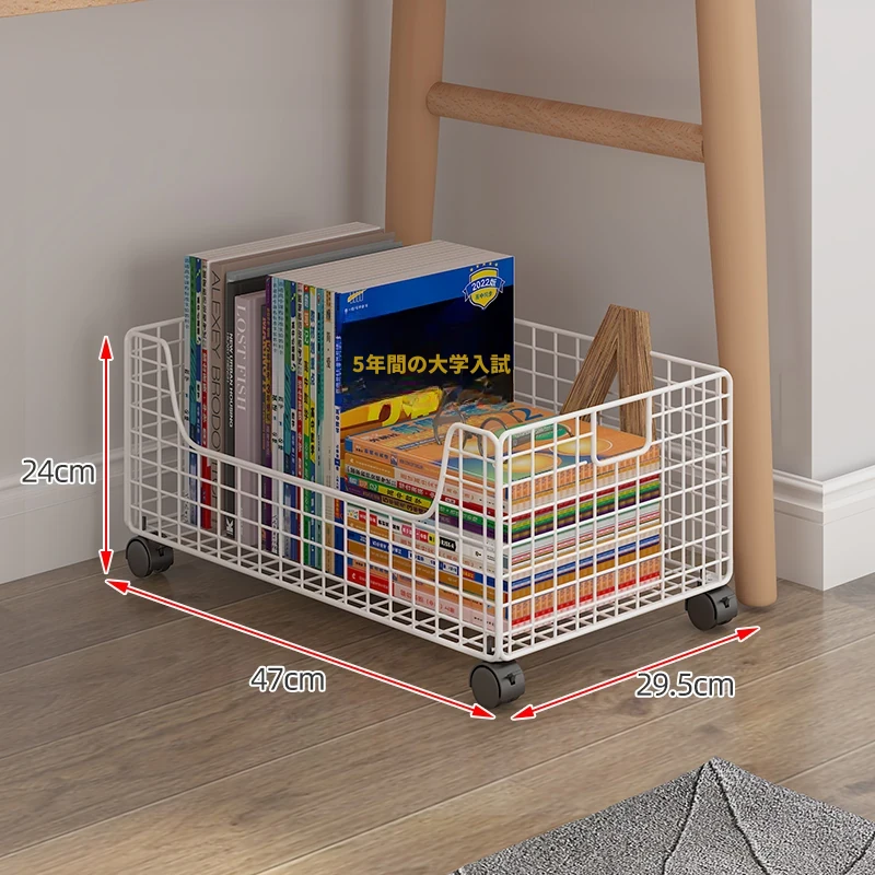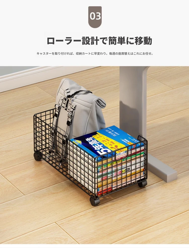 移動式キャスター付き小型ブックシェルフ - スペースを有効活用!簡単に持ち運べる、床置きタイプの本収納ラック。デスク下にぴったりのシンプルデザインで、おしゃれに本を整理整頓!
