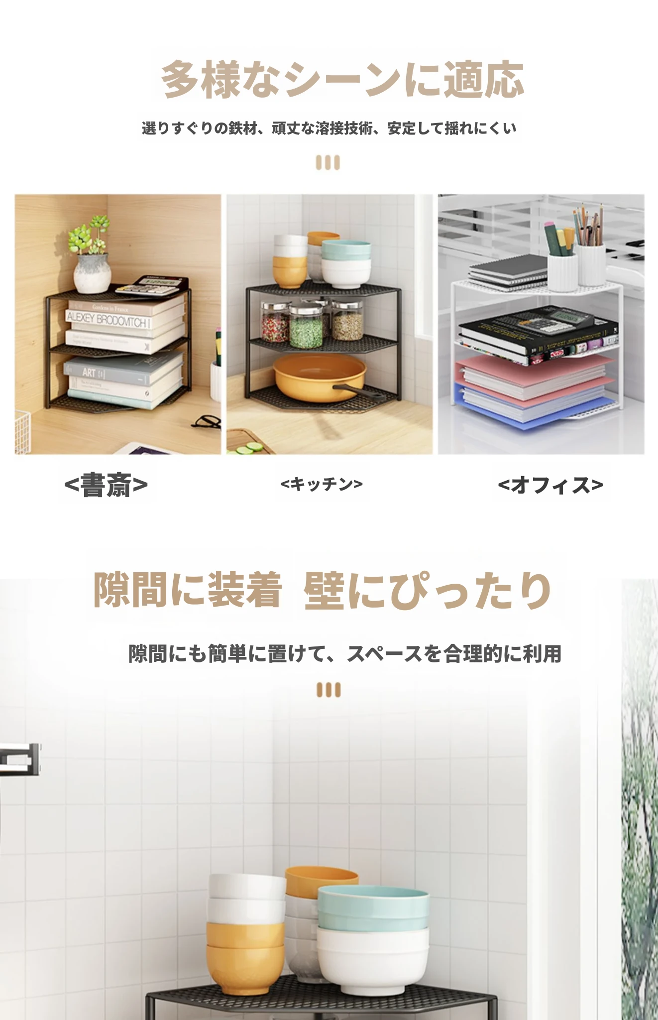 白の三段コーナーラック-ハイタイプ 白の三段コーナーラック-ハイタイプ