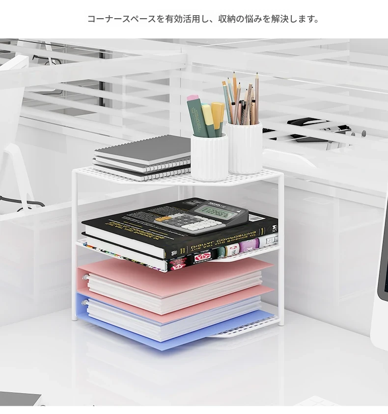 コーナー書棚デスク置き物ラック オフィス用シンプル多層整理収納ラック デスク上の小型トレンディ書棚で、スッキリとした空間を演出!