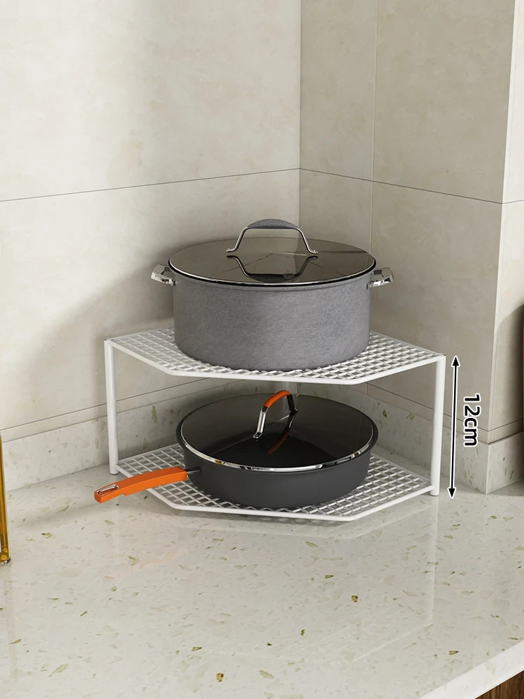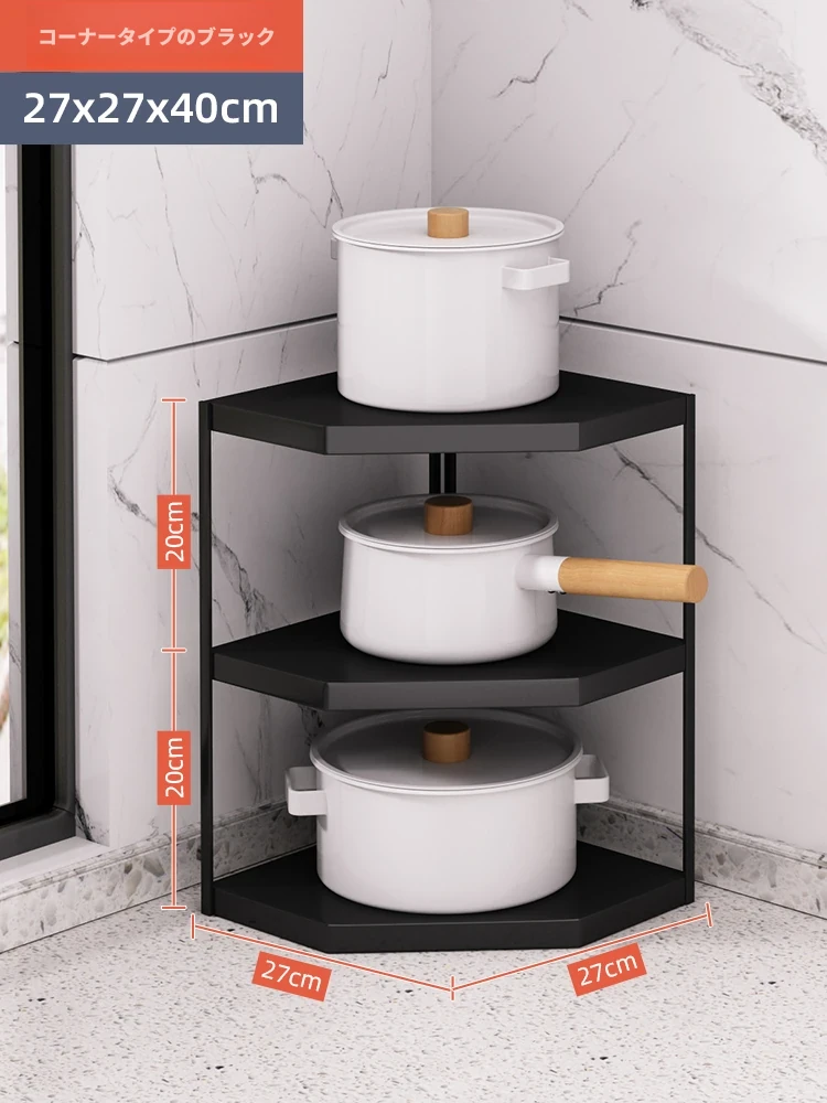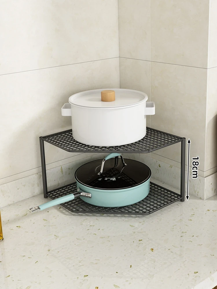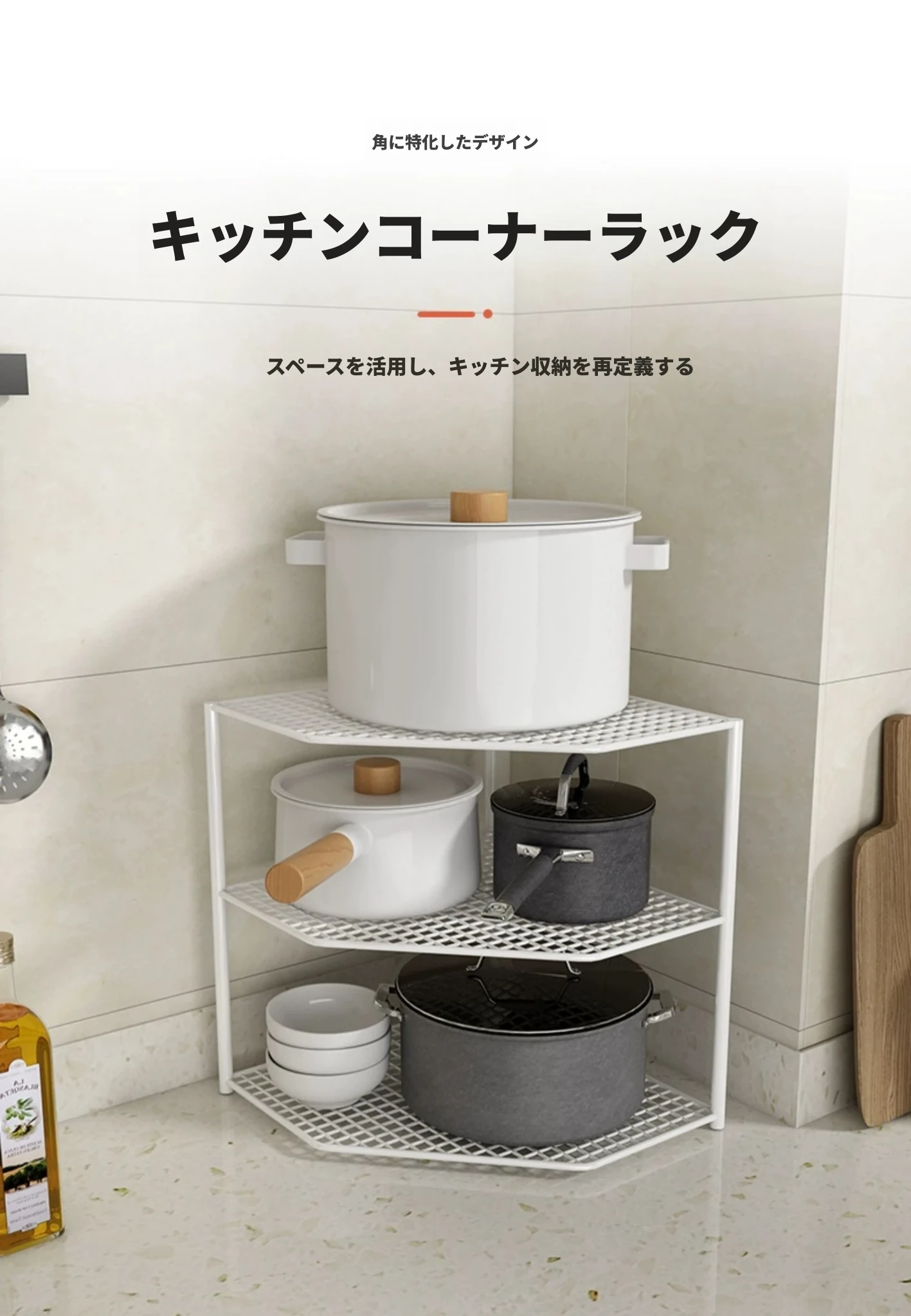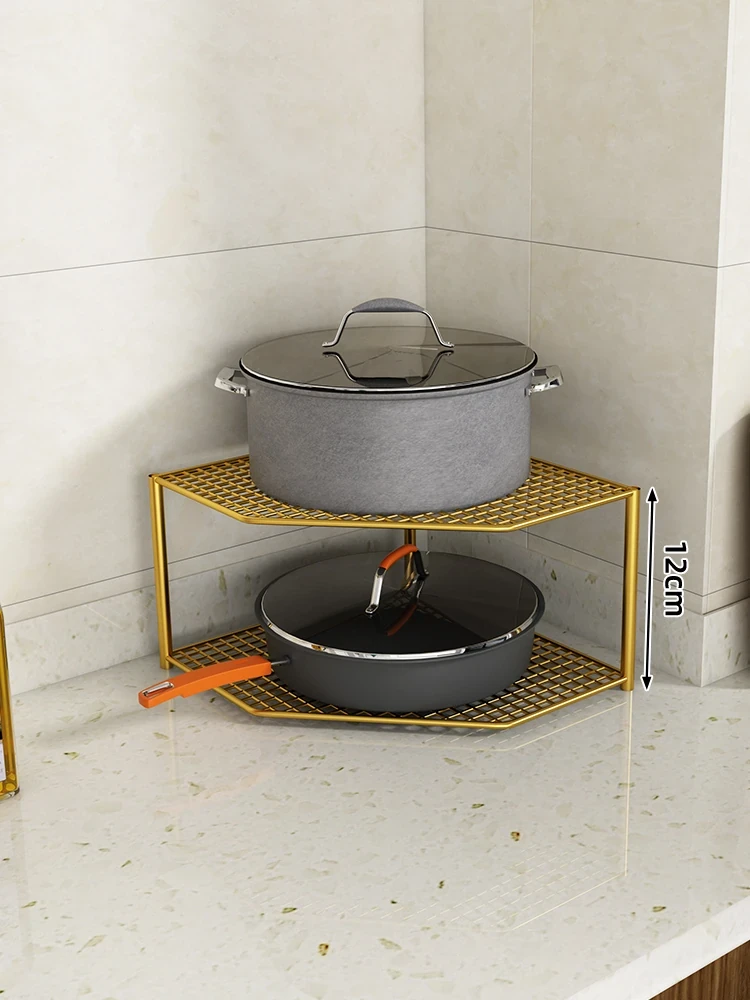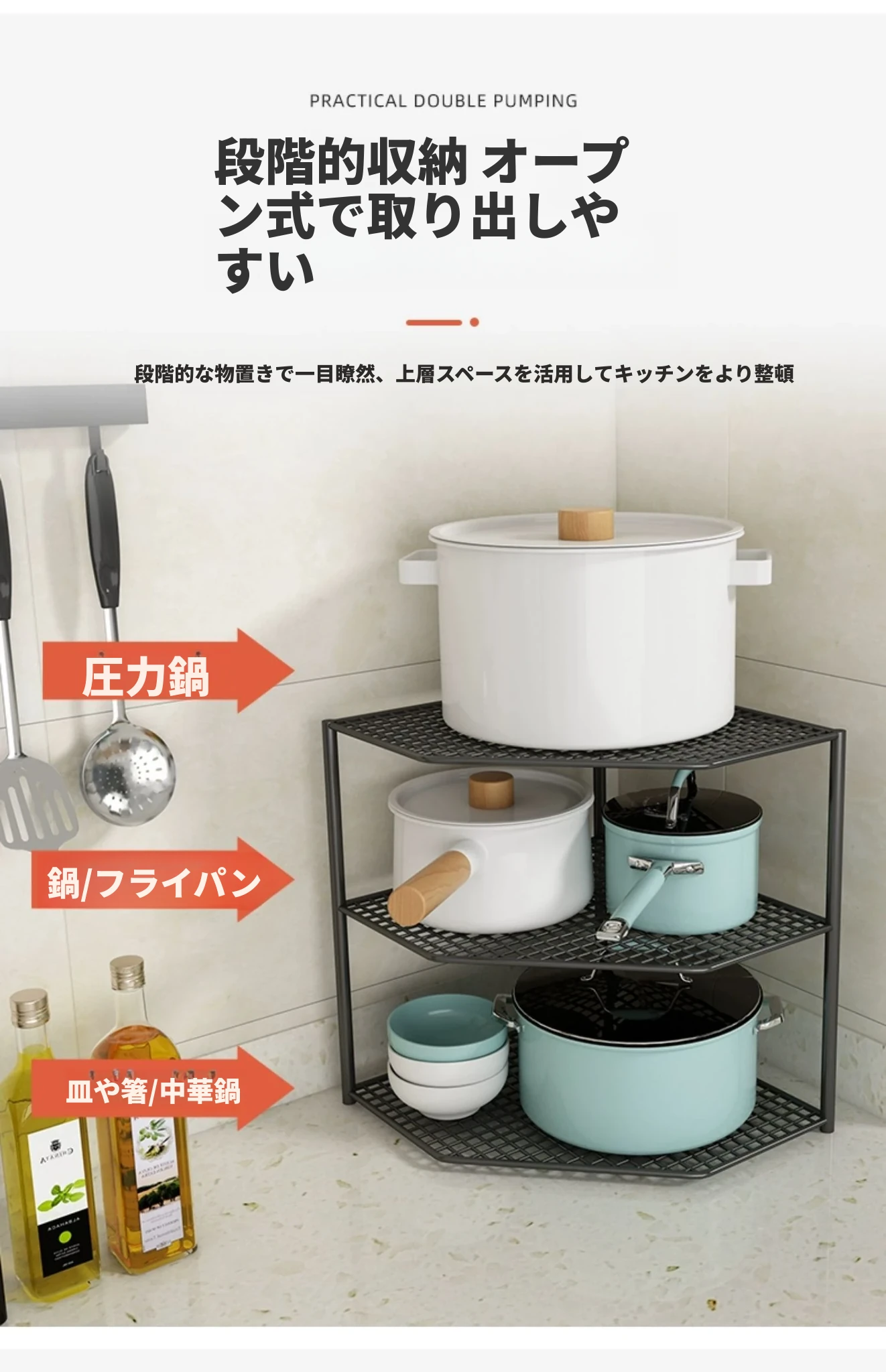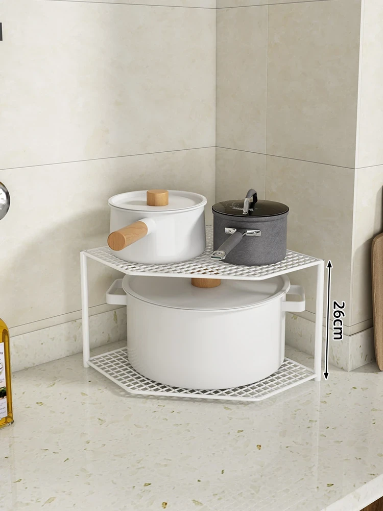キッチン用鍋具収納ラック | コーナーにぴったりの台面置き | 家庭用シンク下鍋置き | 壁面キャビネット用の多層棚 | スペースを有効活用し、整理整頓を簡単に!