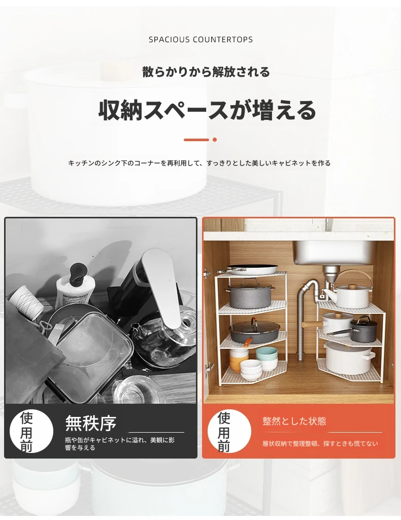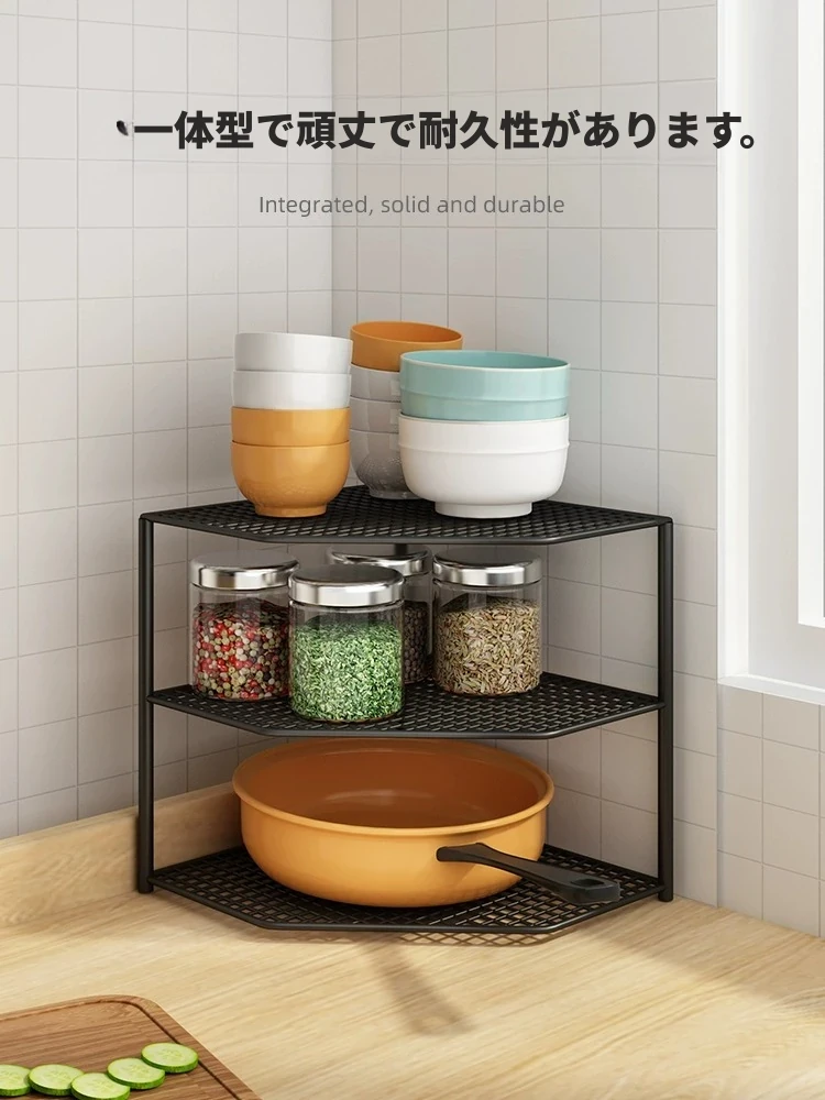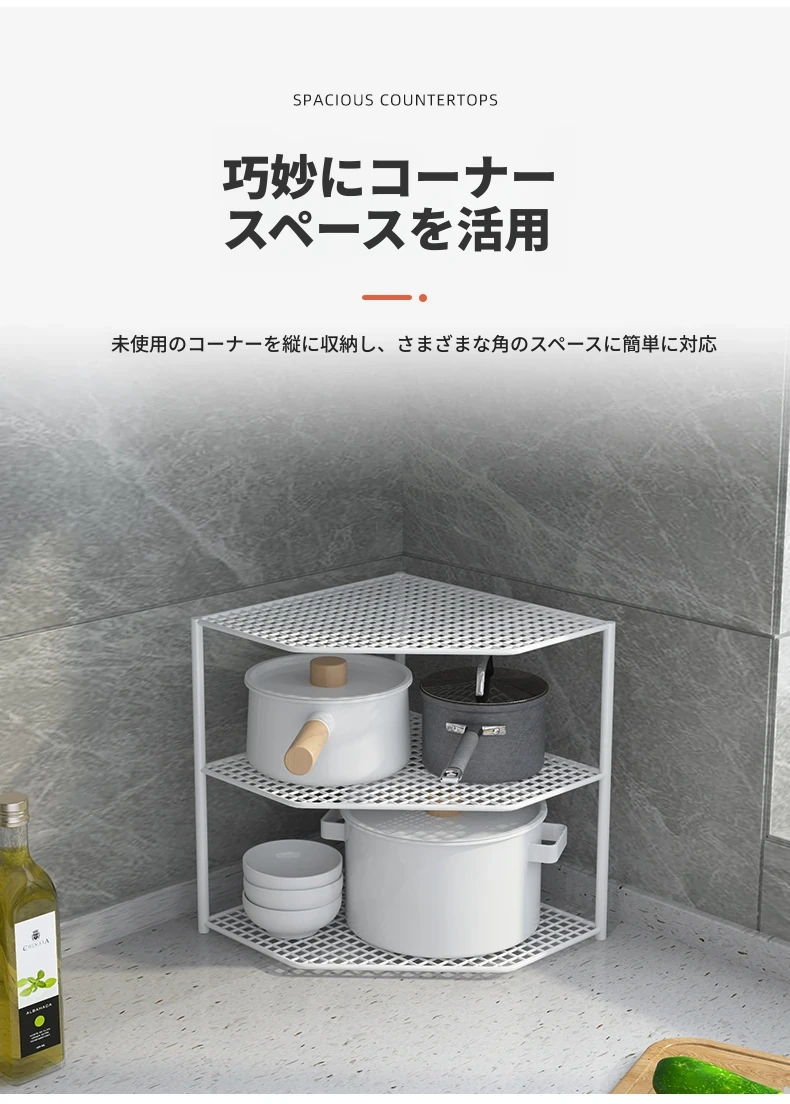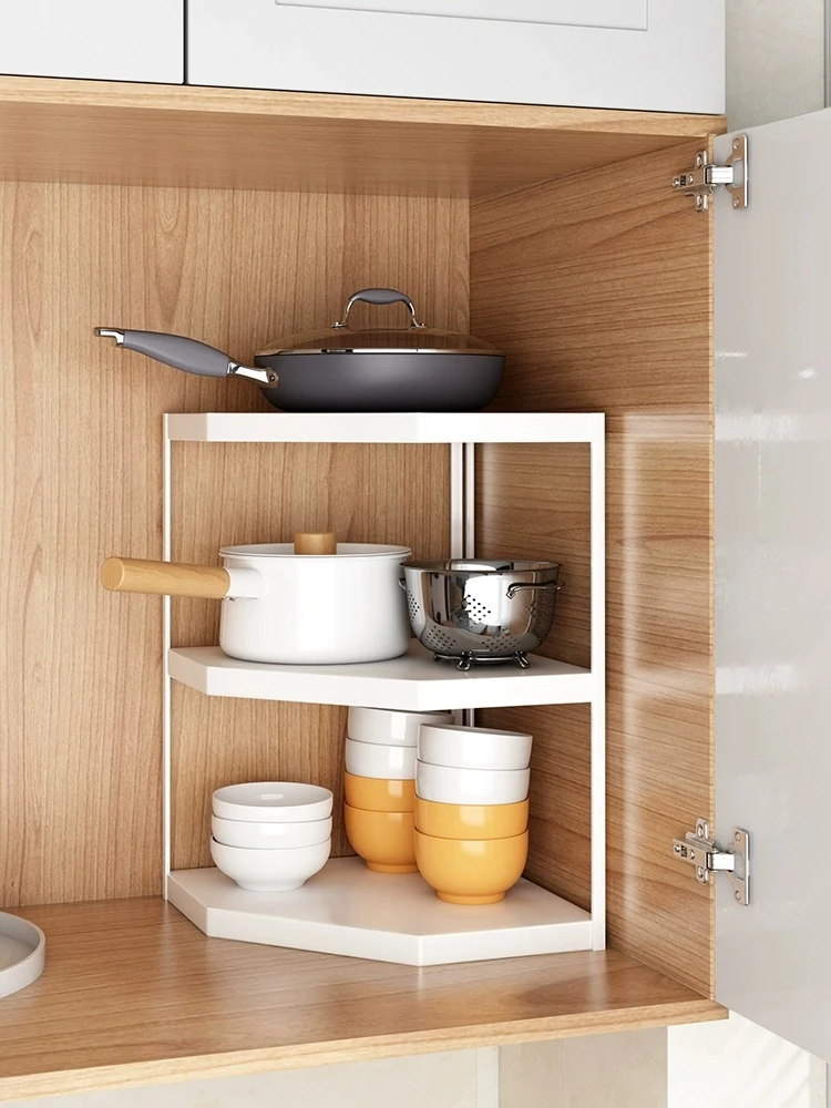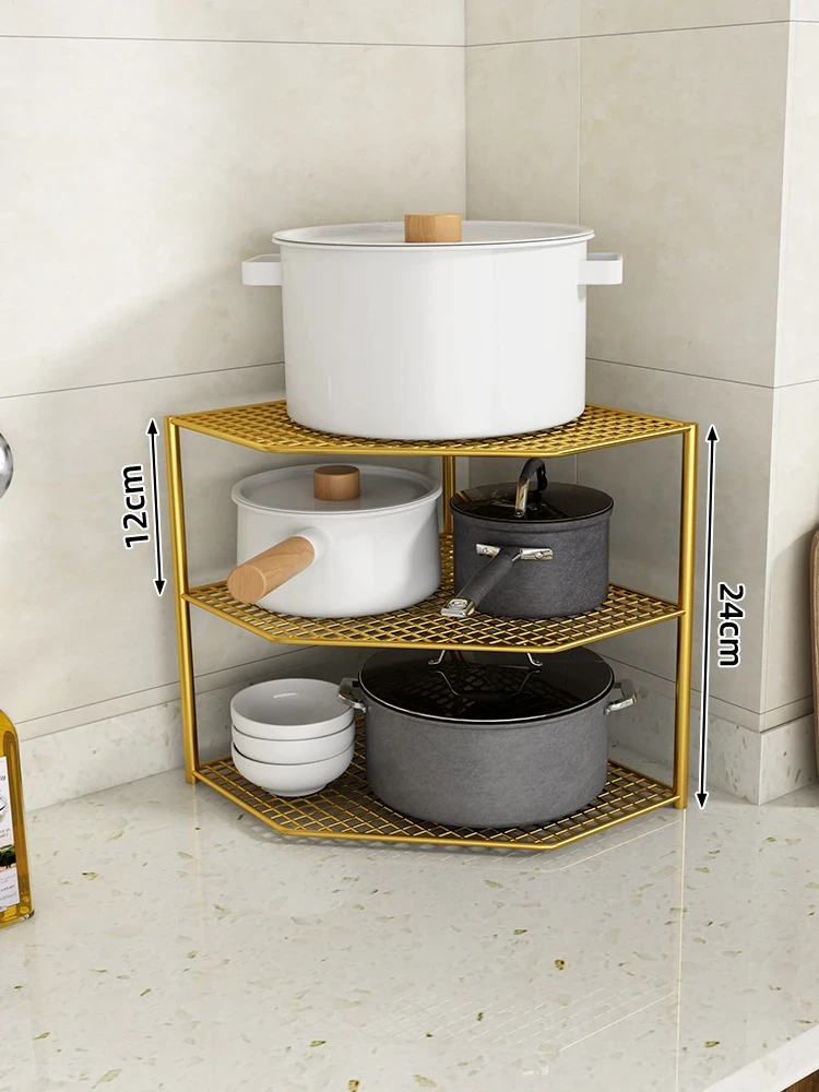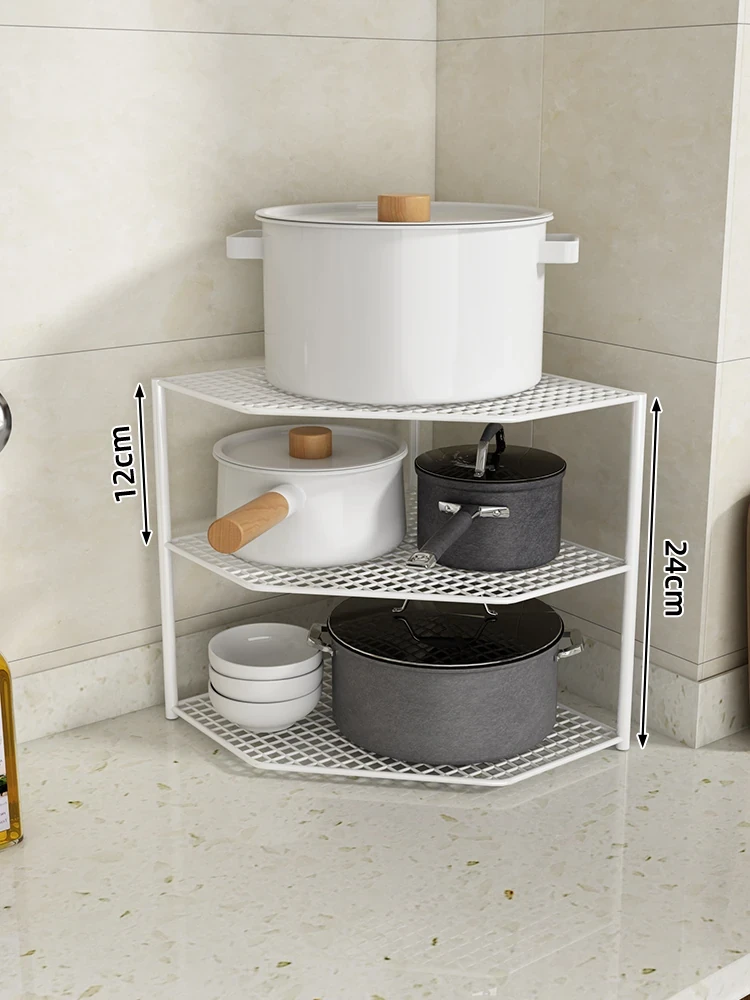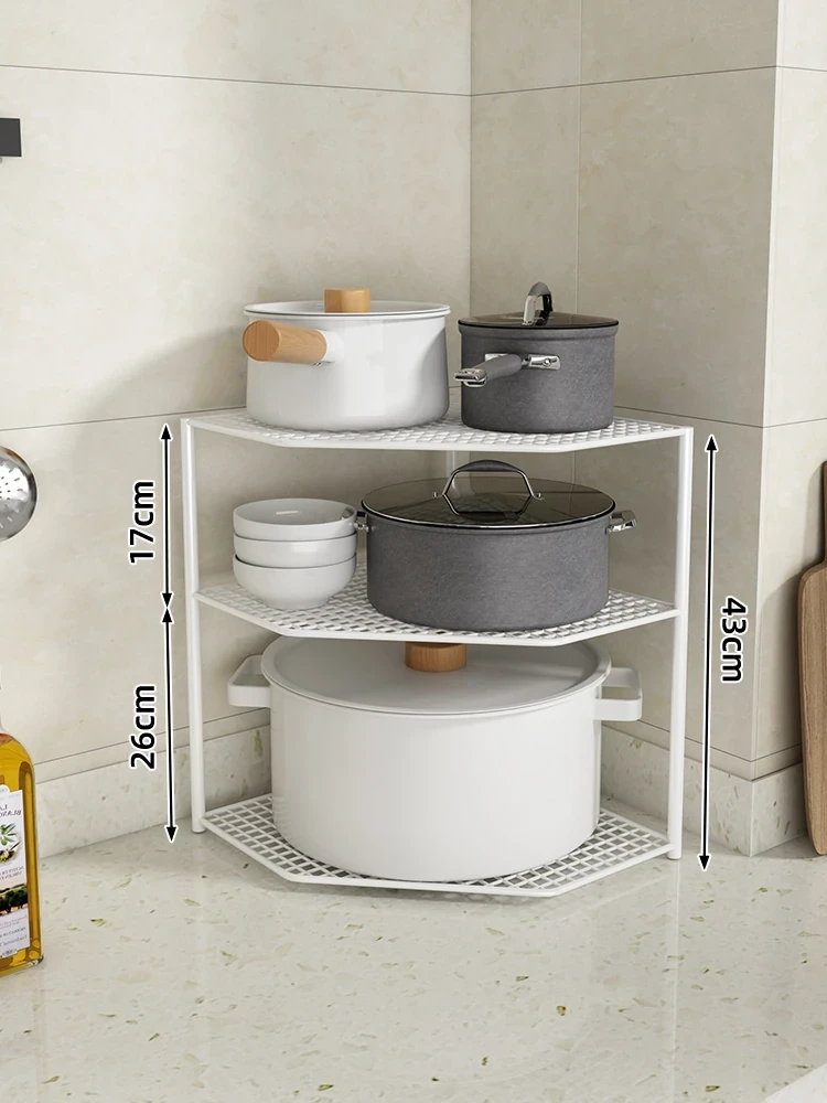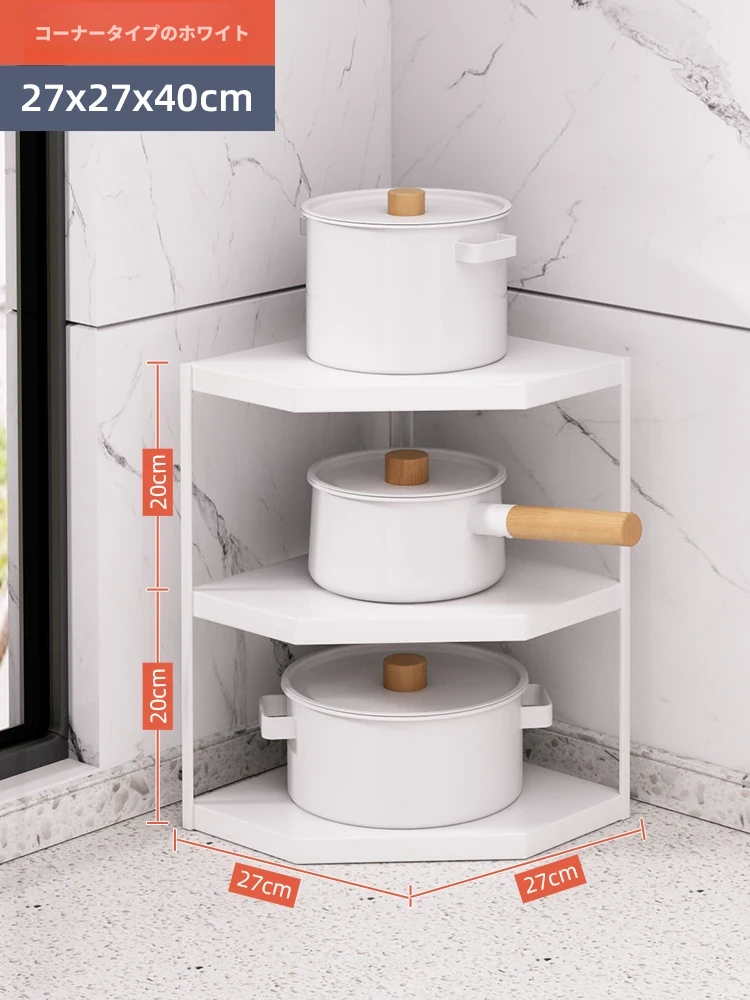 キッチン用鍋具収納ラック | コーナーにぴったりの台面置き | 家庭用シンク下鍋置き | 壁面キャビネット用の多層棚 | スペースを有効活用し、整理整頓を簡単に!