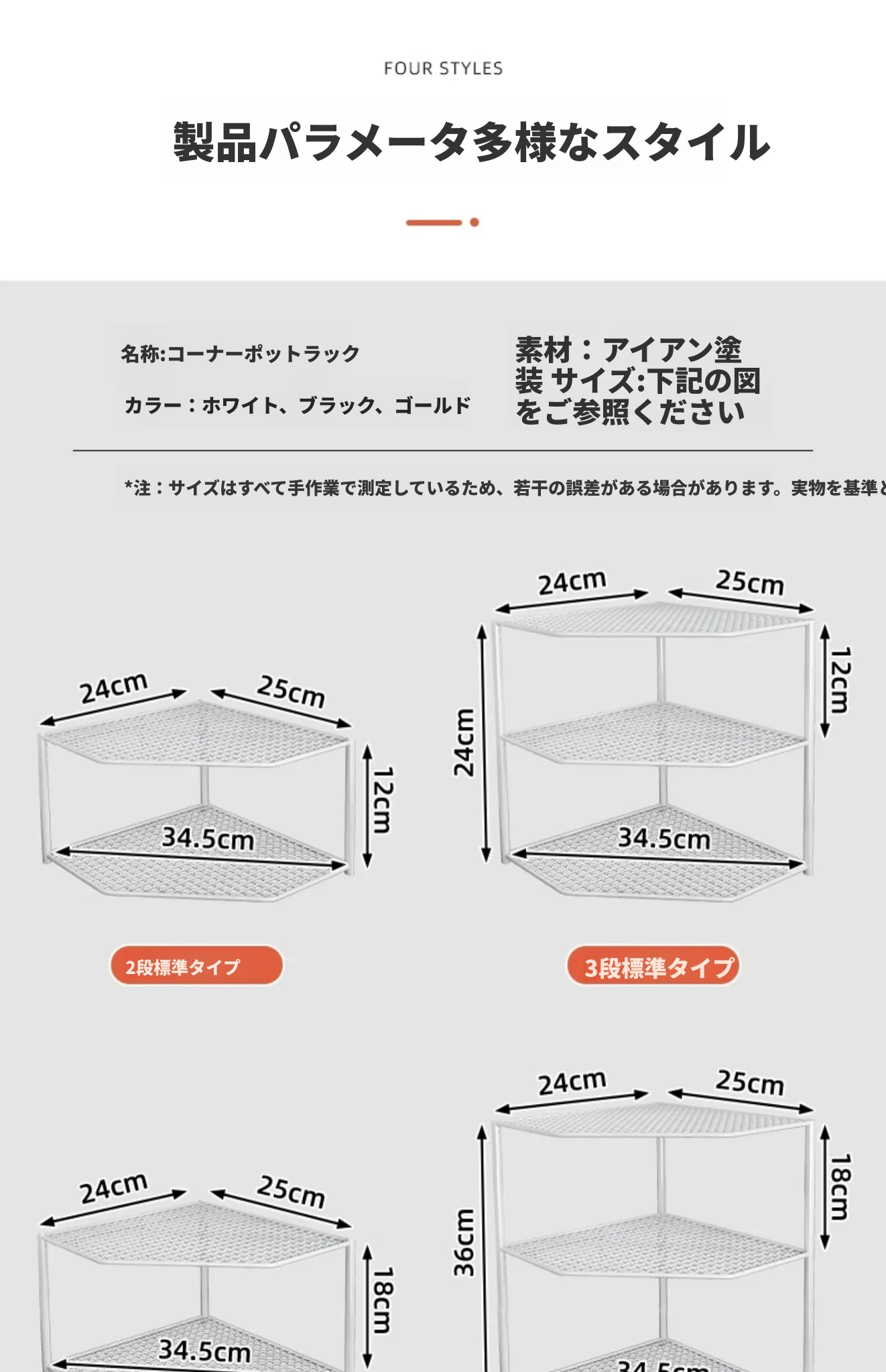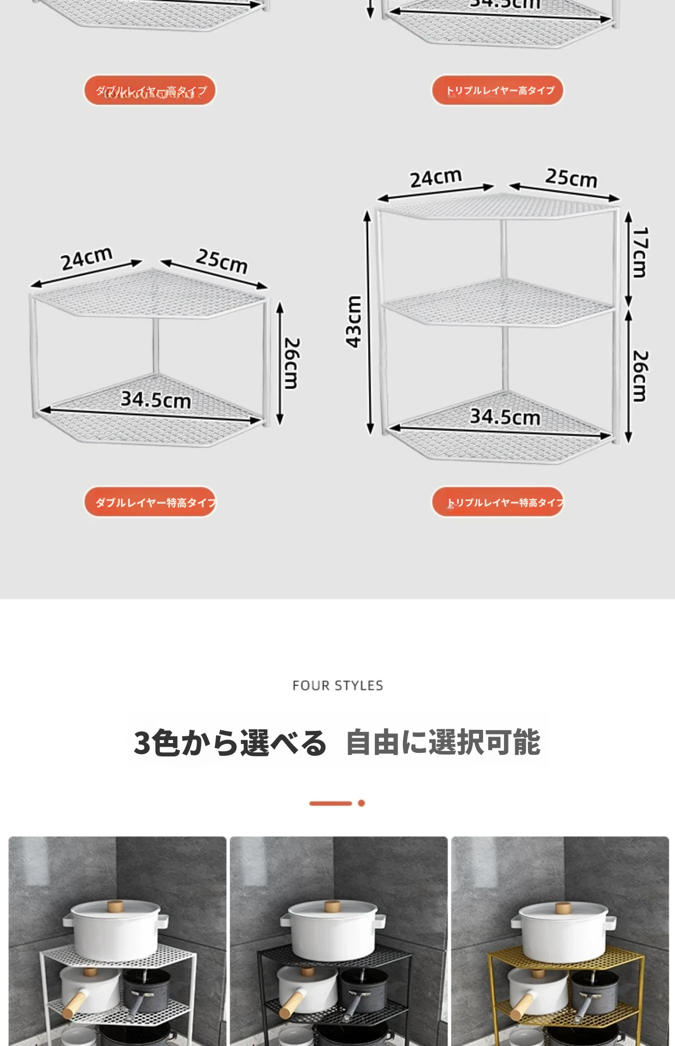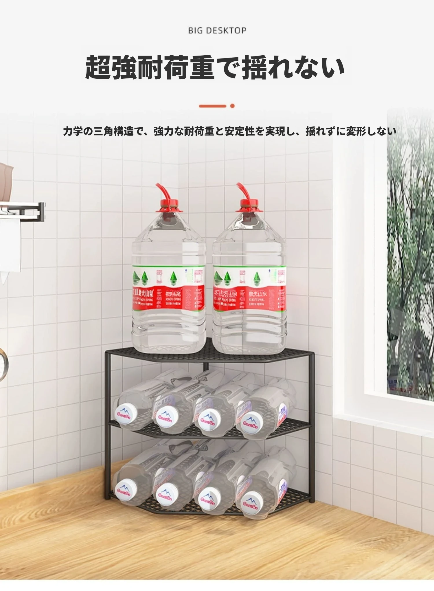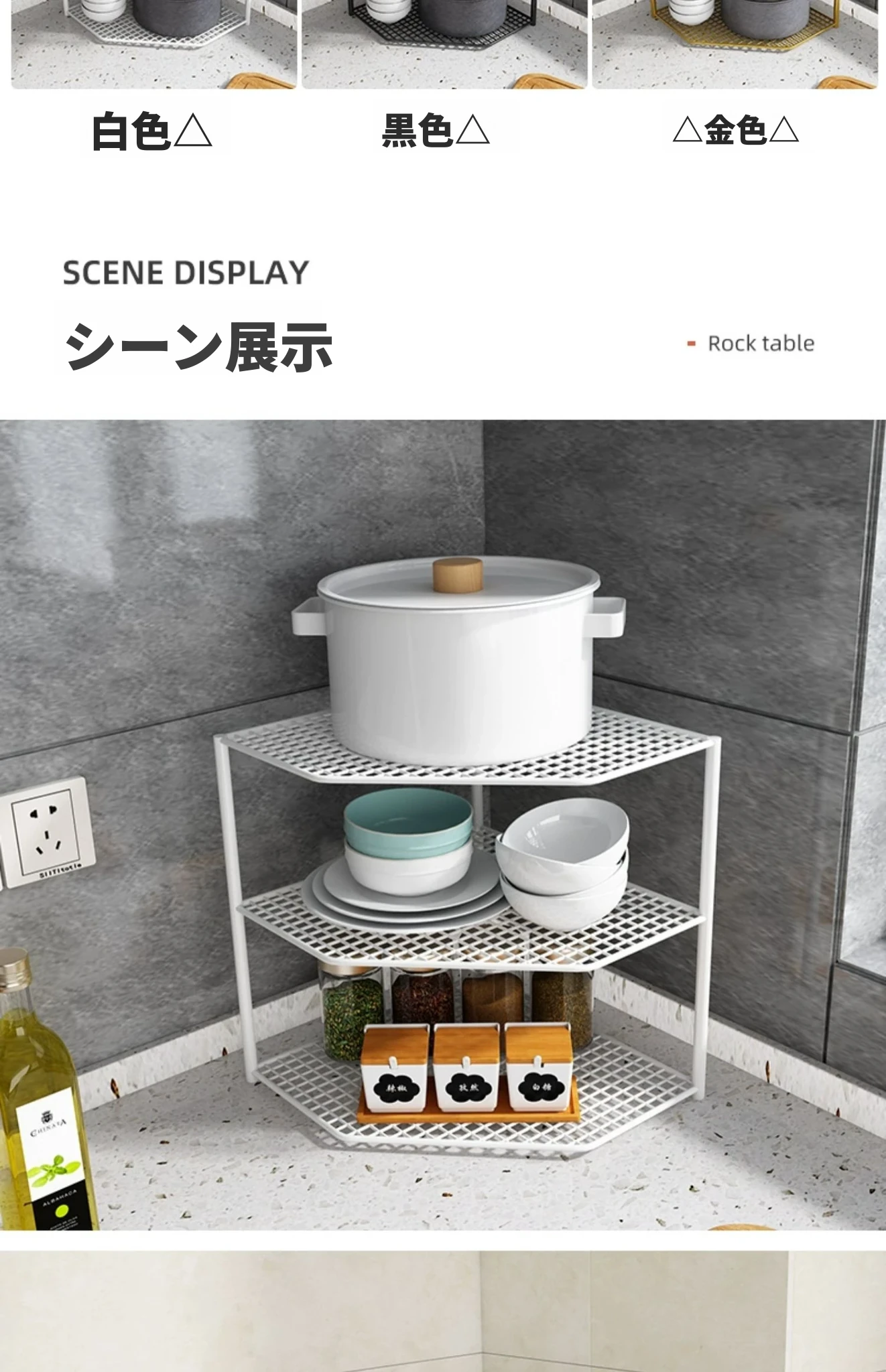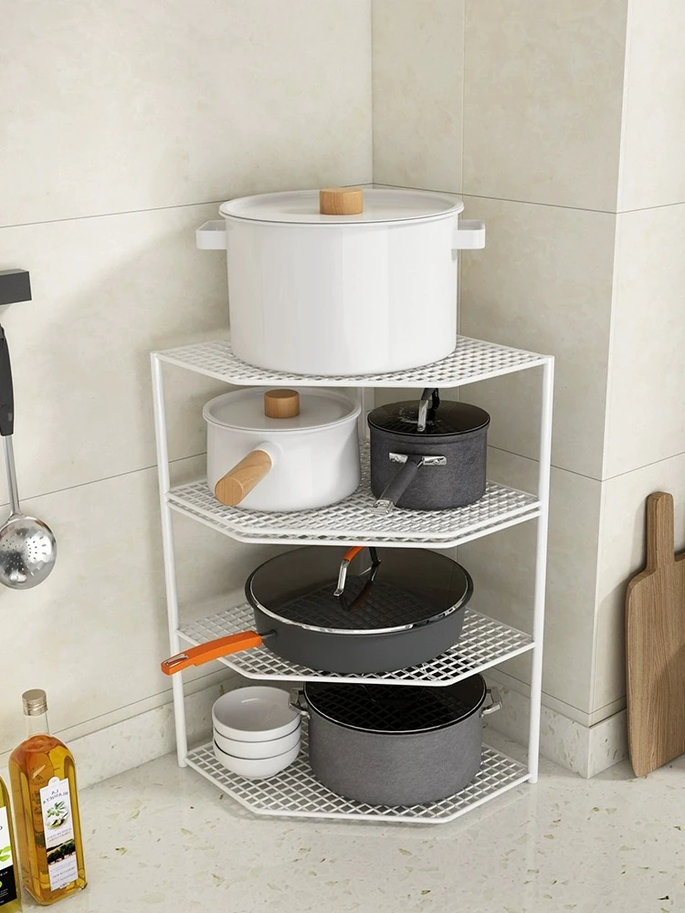 キッチン用鍋具収納ラック | コーナーにぴったりの台面置き | 家庭用シンク下鍋置き | 壁面キャビネット用の多層棚 | スペースを有効活用し、整理整頓を簡単に!