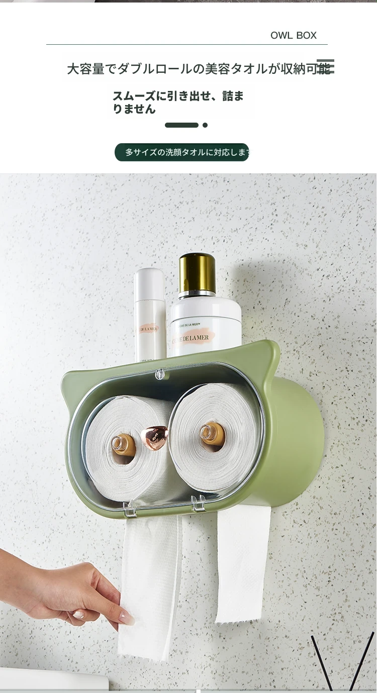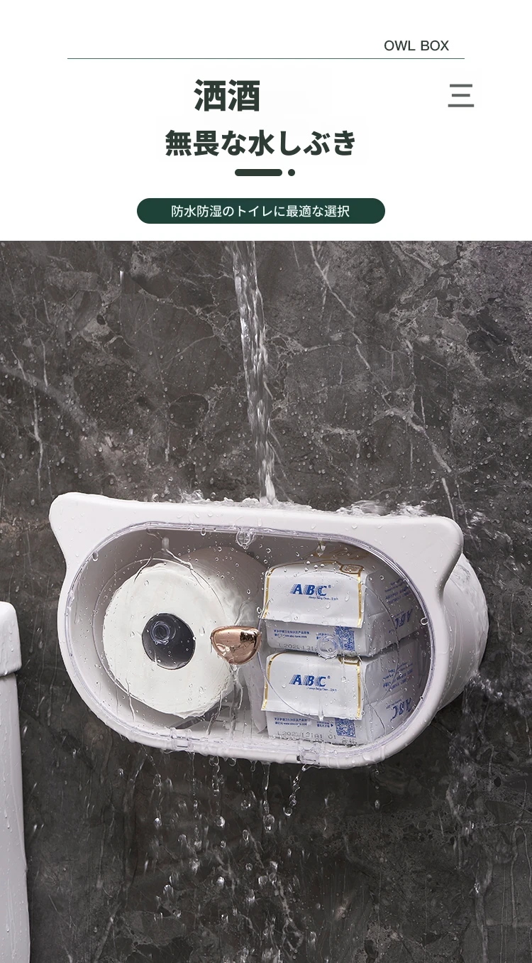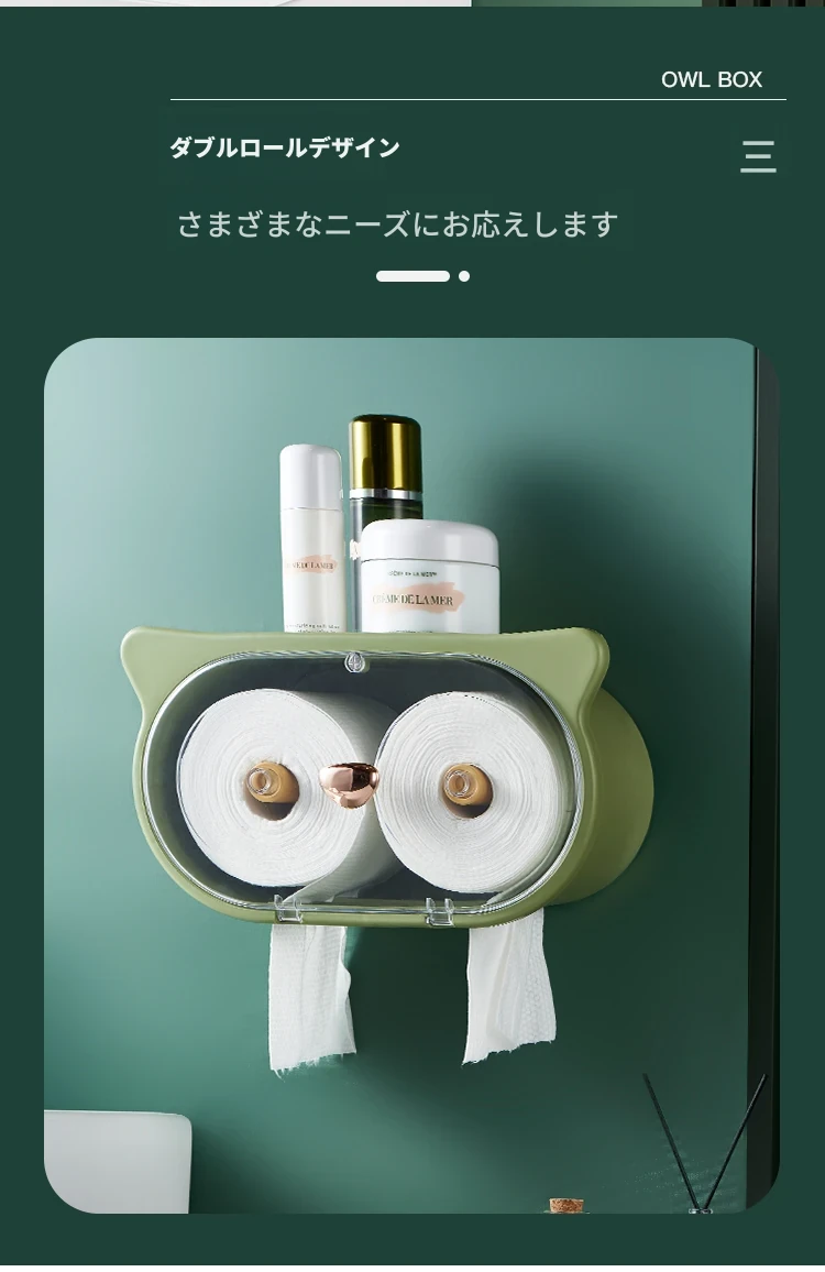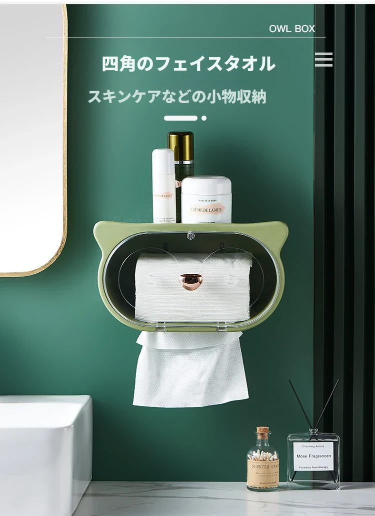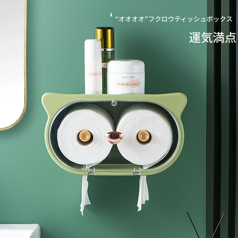 壁掛け式おしゃれなフクロウデザイン洗顔タオル収納ボックス|衛生的で便利なトイレットペーパー&ティッシュラック【お風呂場に最適】