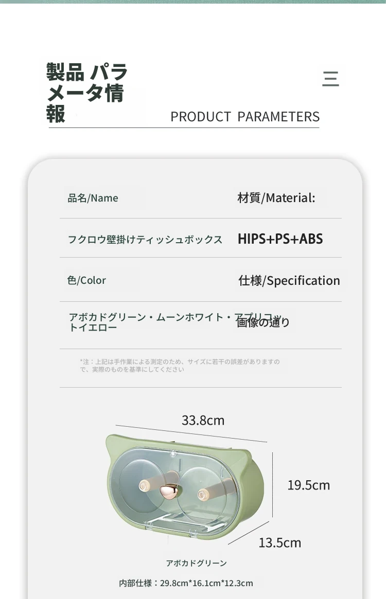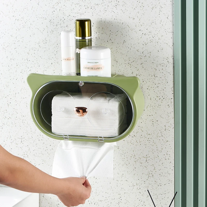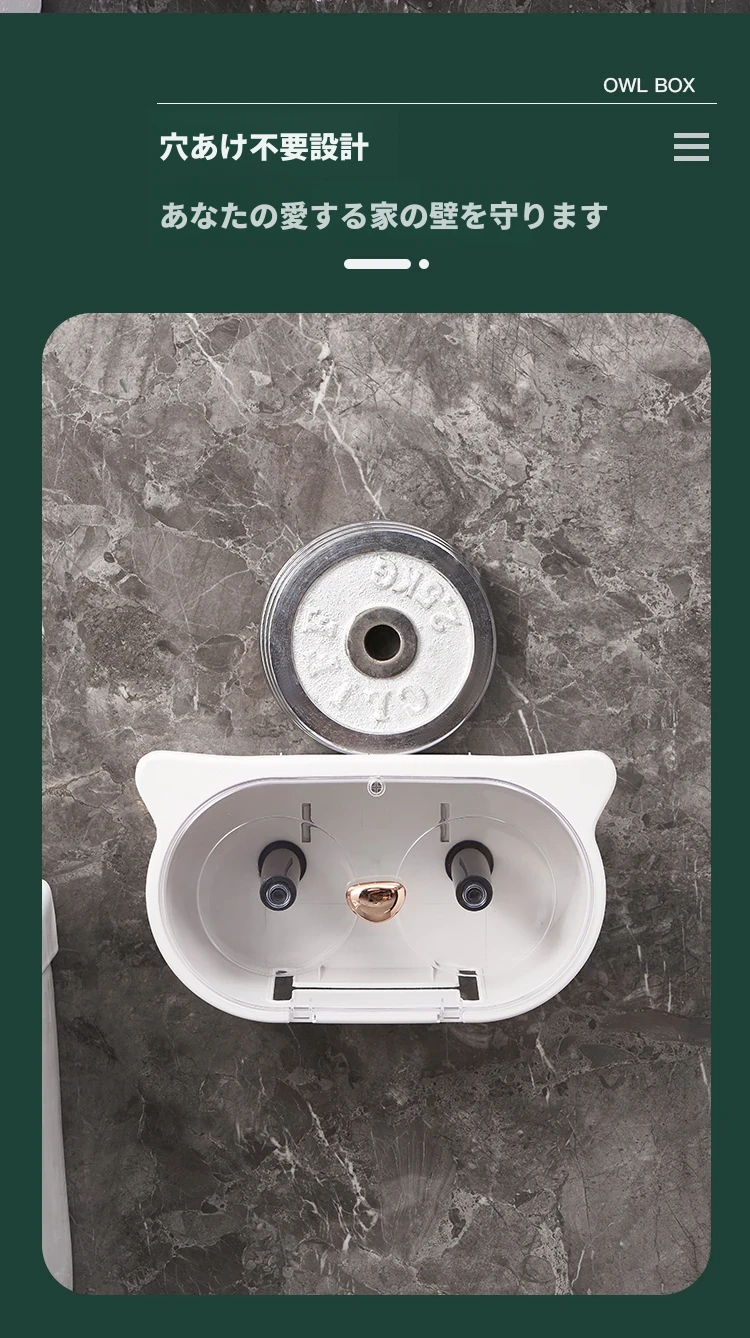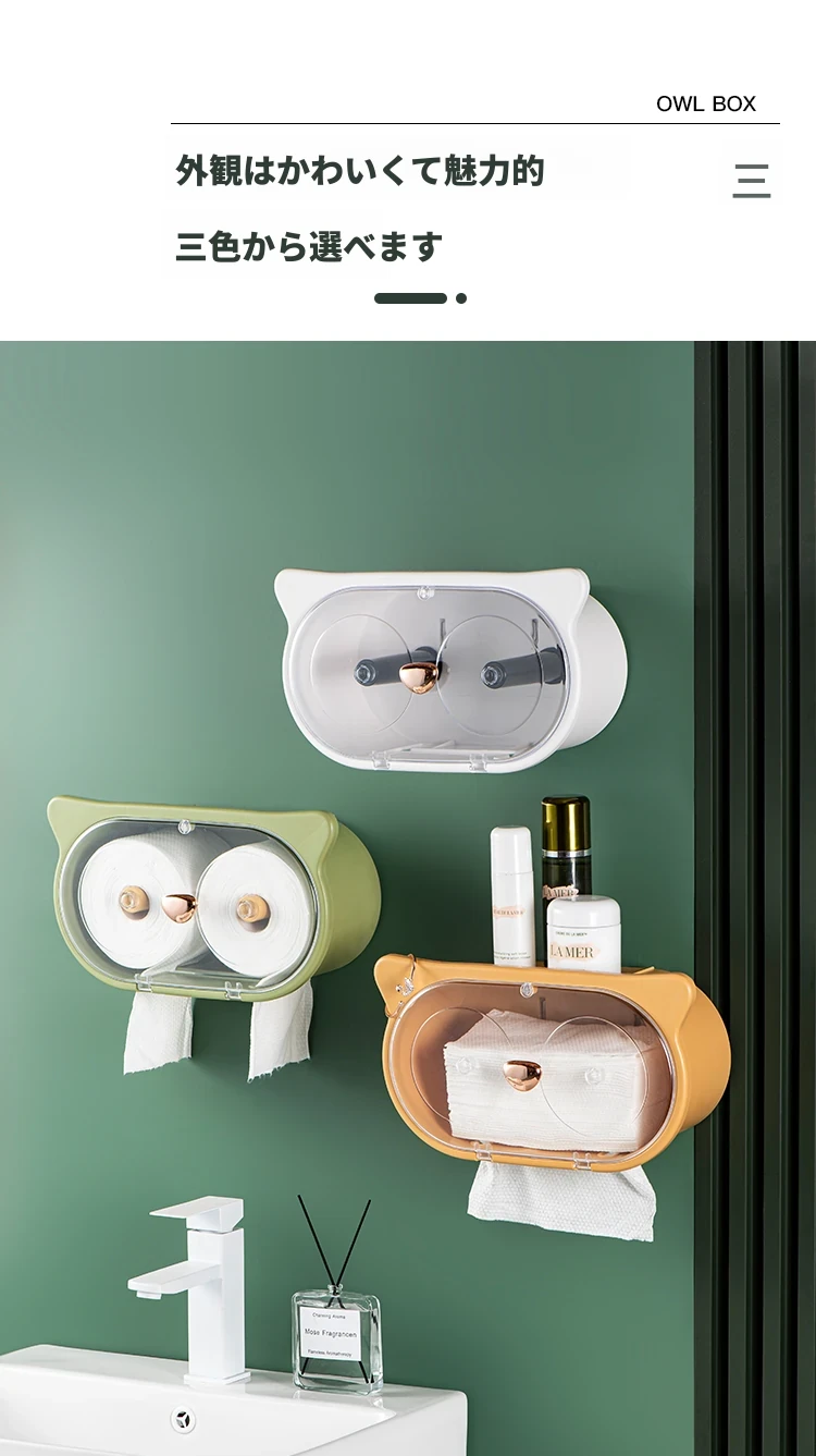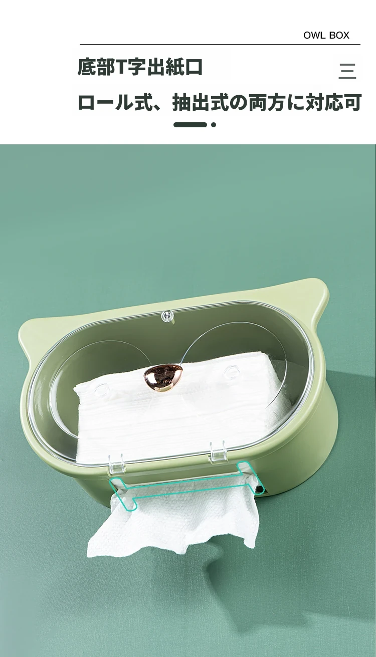 壁掛け式おしゃれなフクロウデザイン洗顔タオル収納ボックス|衛生的で便利なトイレットペーパー&ティッシュラック【お風呂場に最適】