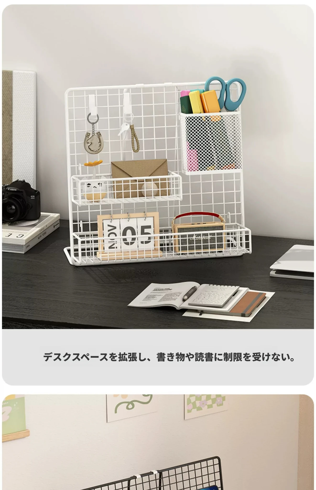 幼稚園の美術作品を魅力的に展示!デスクトップ収納ラック - アイアンメッシュフォトハンガー、子供たちのクリエイティブな作品を素敵に飾ろう!収納力抜群で、お部屋もスッキリ!