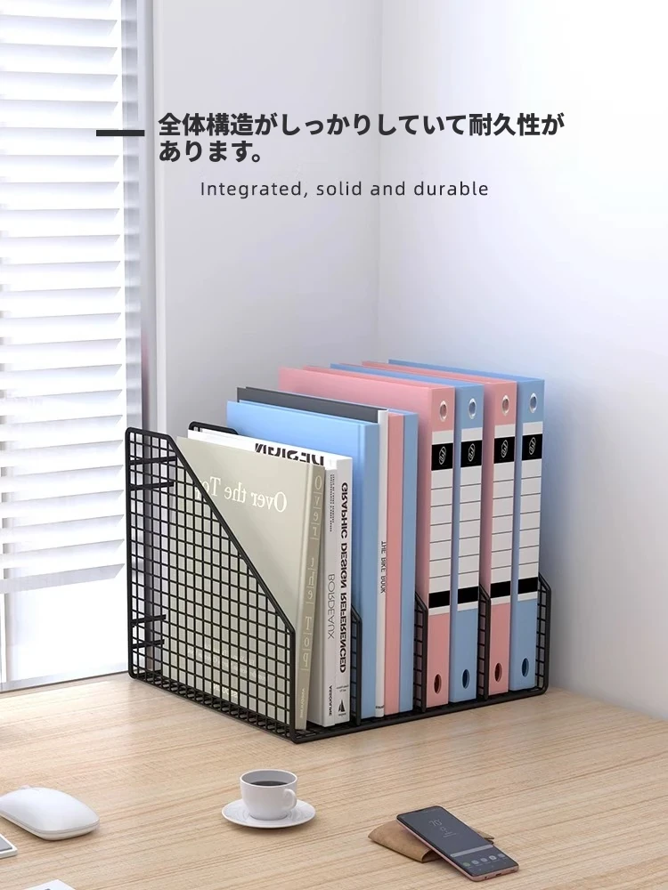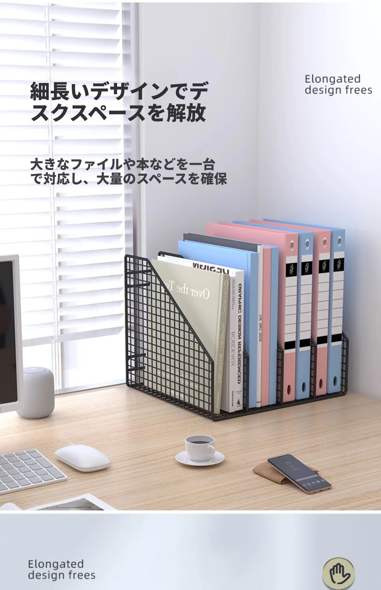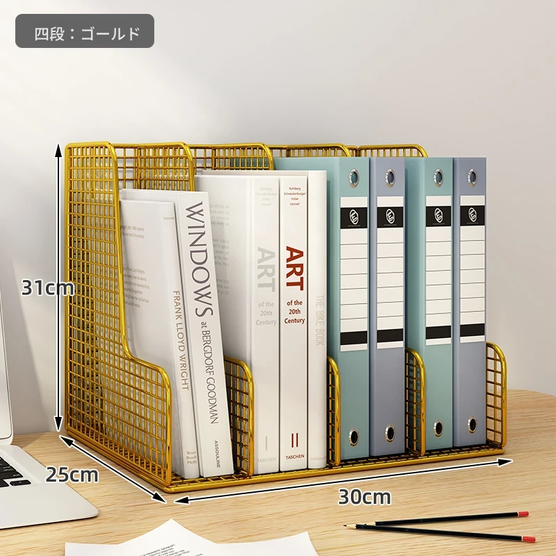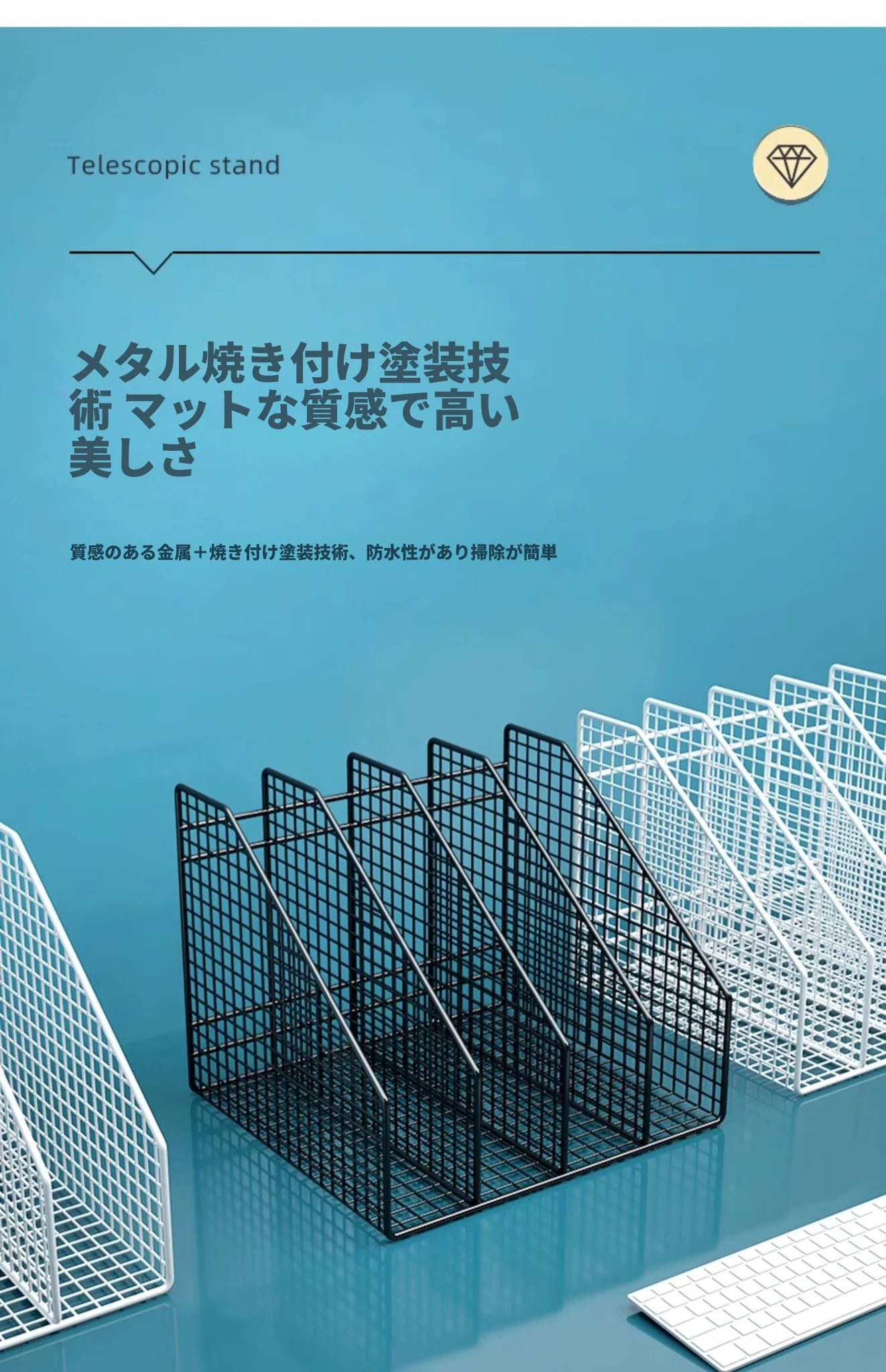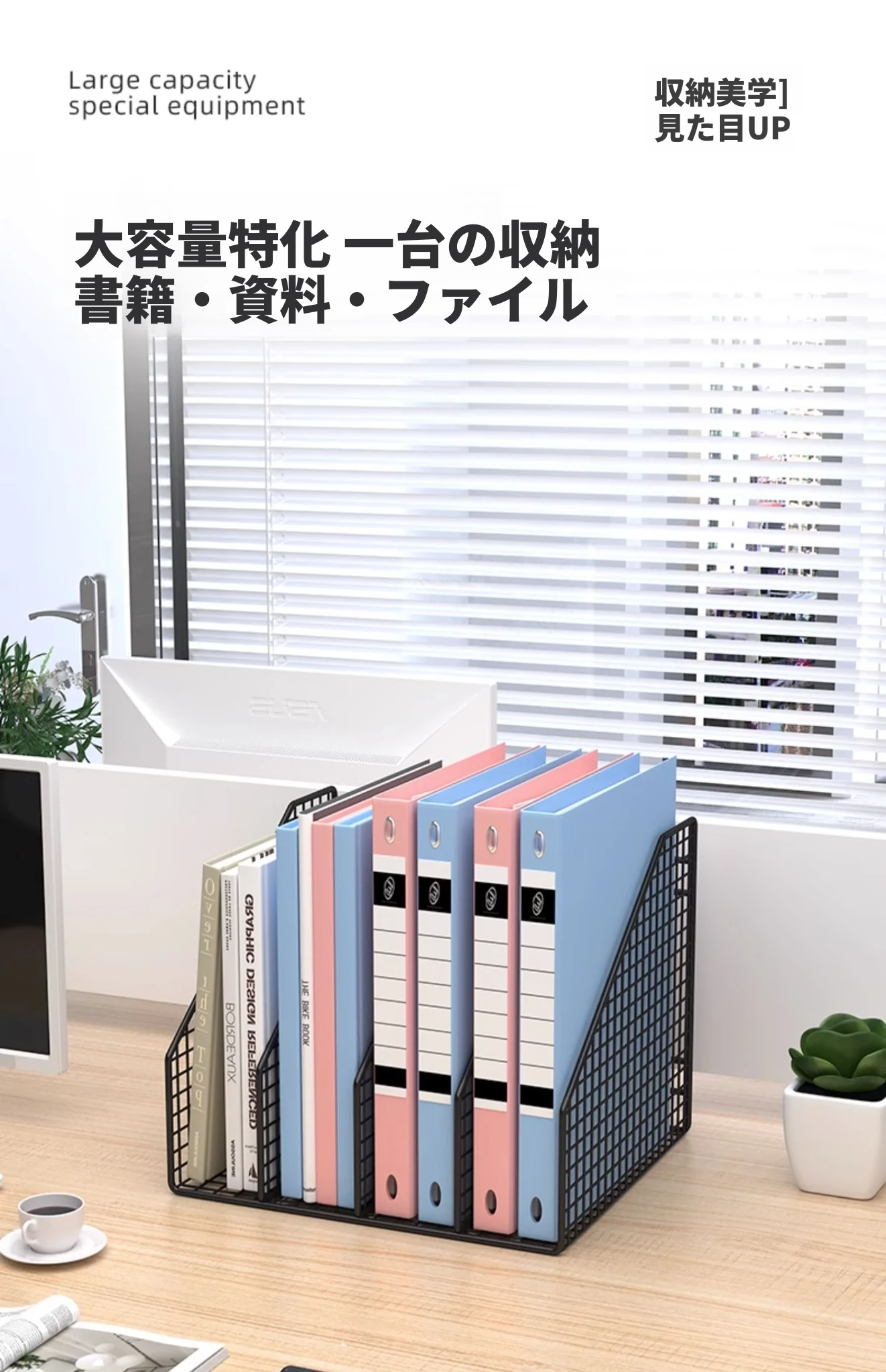デスク上のファイル収納ラック|オフィス資料整理に最適!金属製のスタイリッシュな書類立て|卓上ミニブックシェルフでスッキリ整頓!
