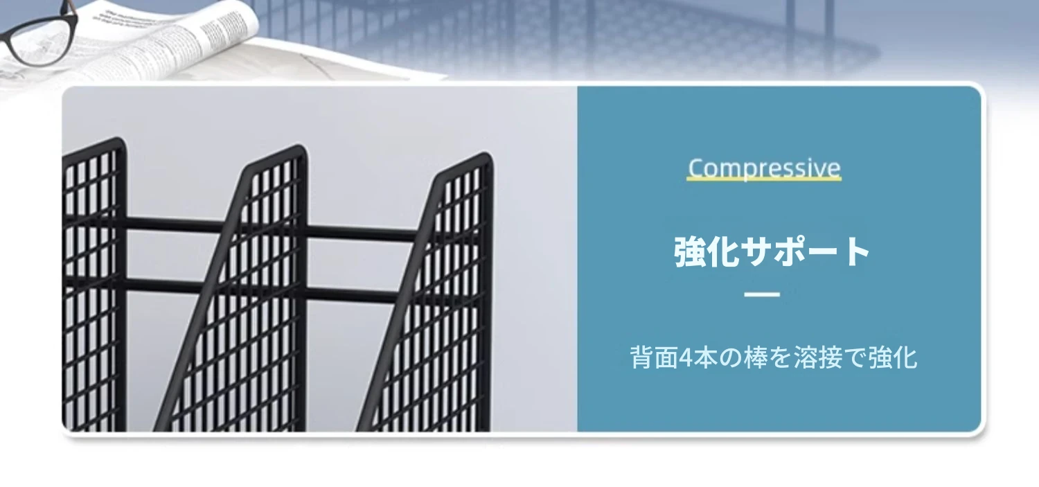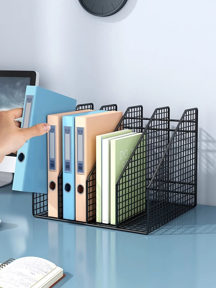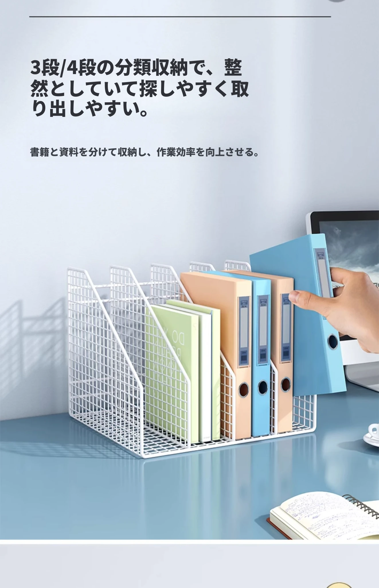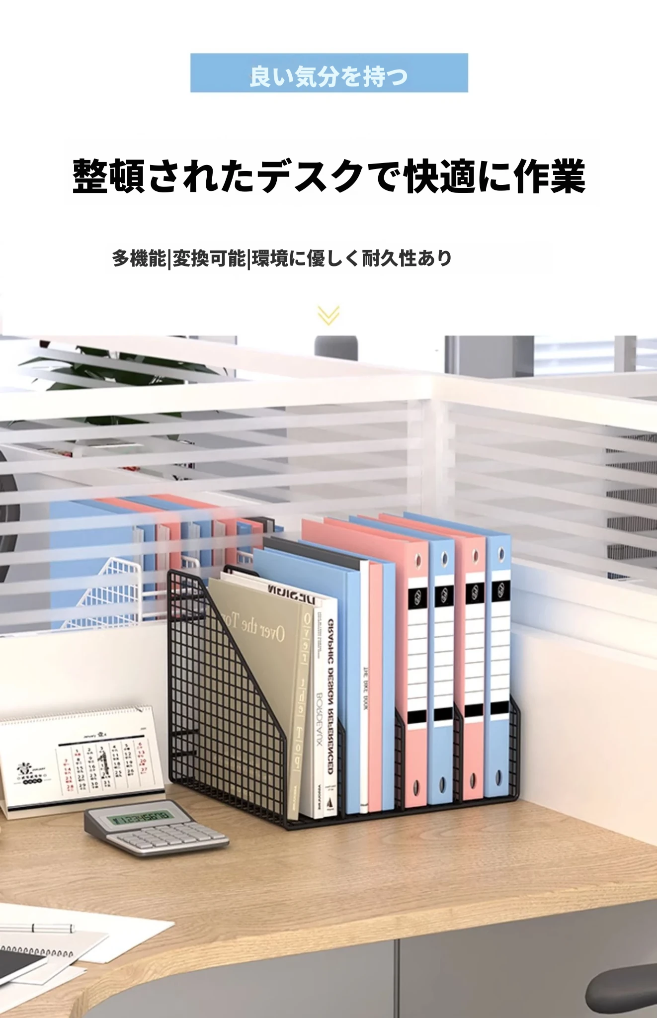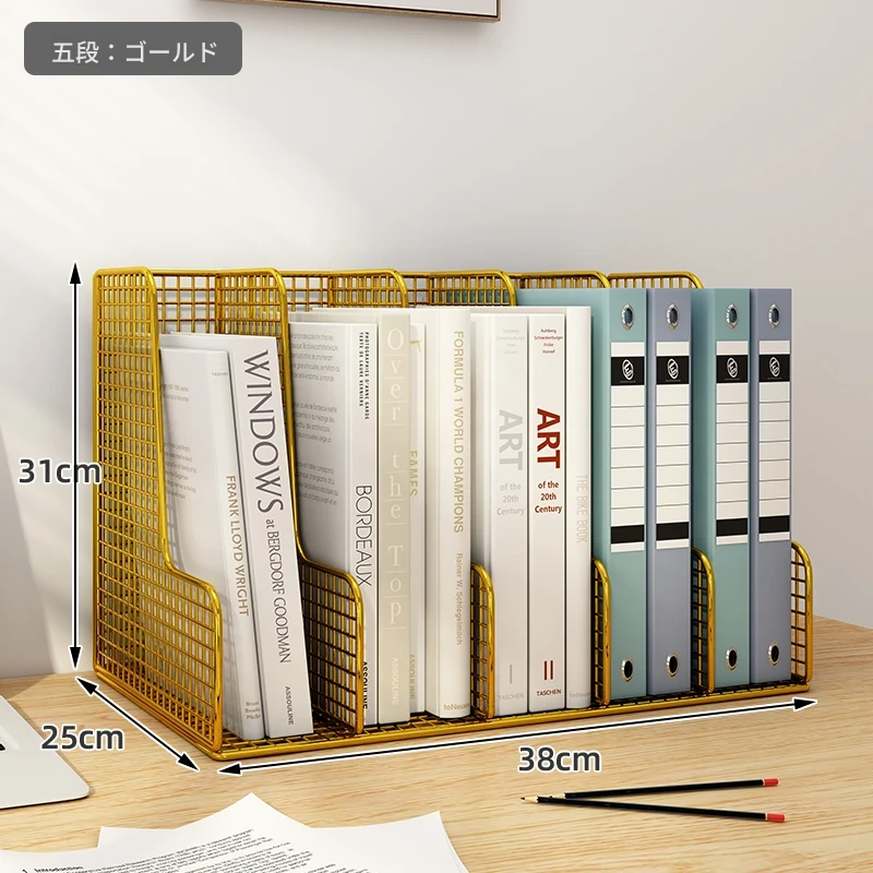 デスク上のファイル収納ラック|オフィス資料整理に最適!金属製のスタイリッシュな書類立て|卓上ミニブックシェルフでスッキリ整頓!