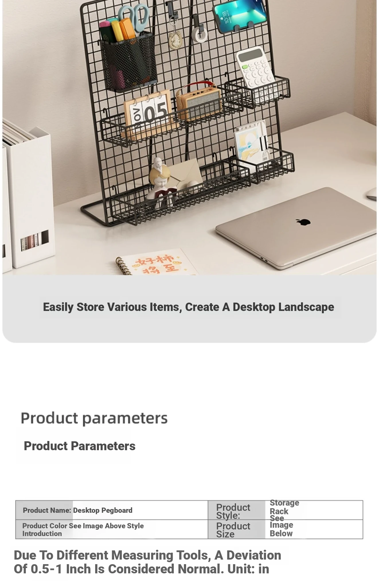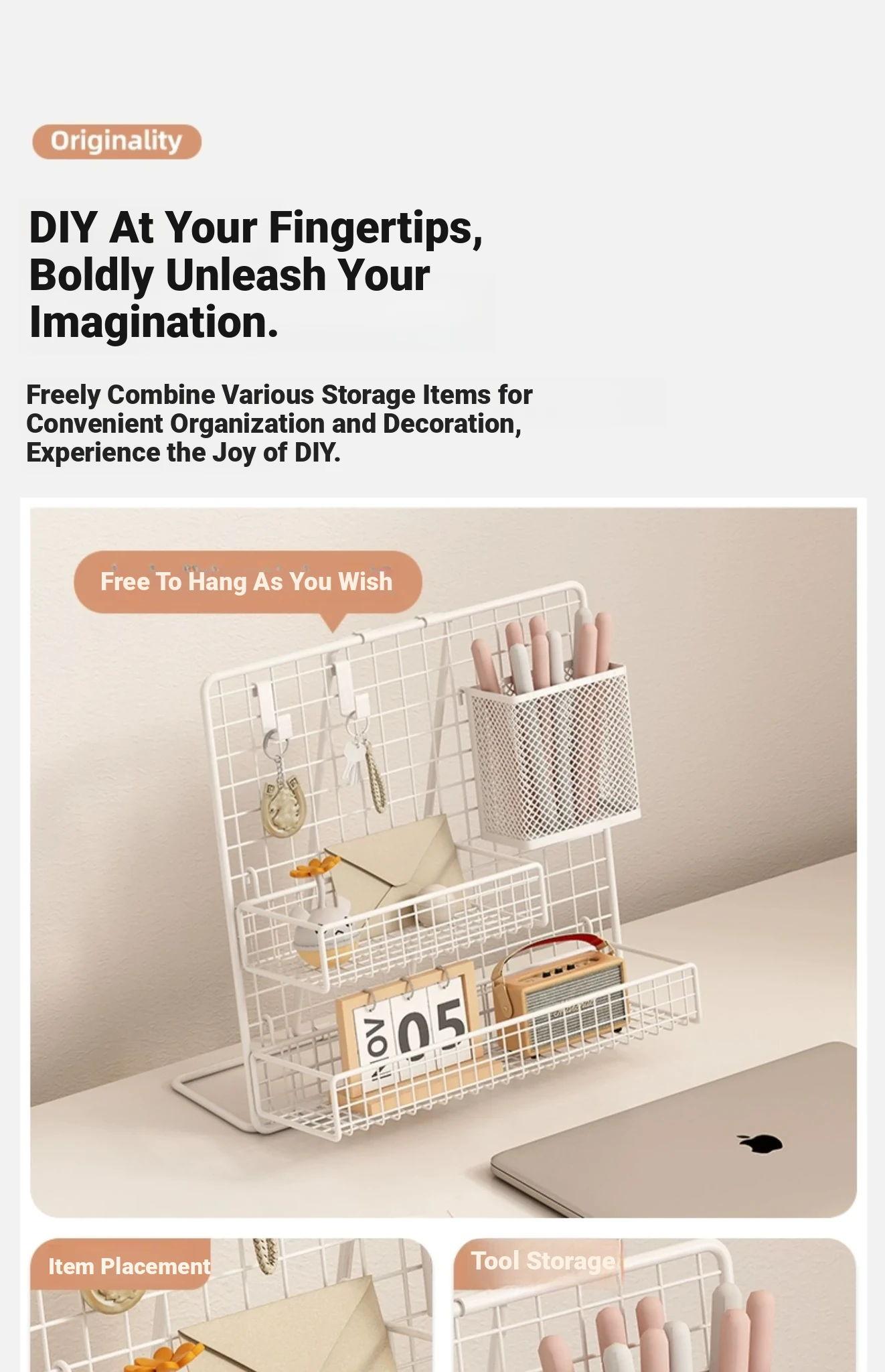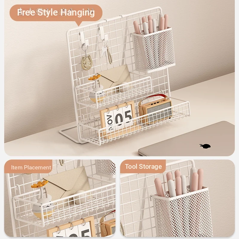 Desktop Pegboard Organizer - Versatile No-Drill Storage Rack for Easy Display - Compact Multi-Layer Bookshelf for Efficient Space Management