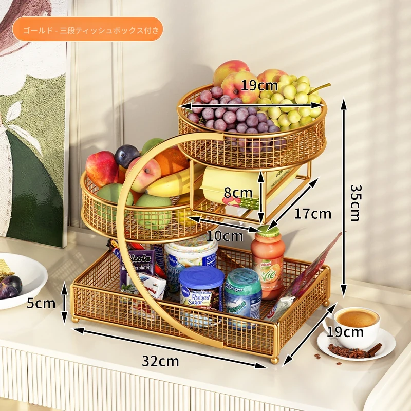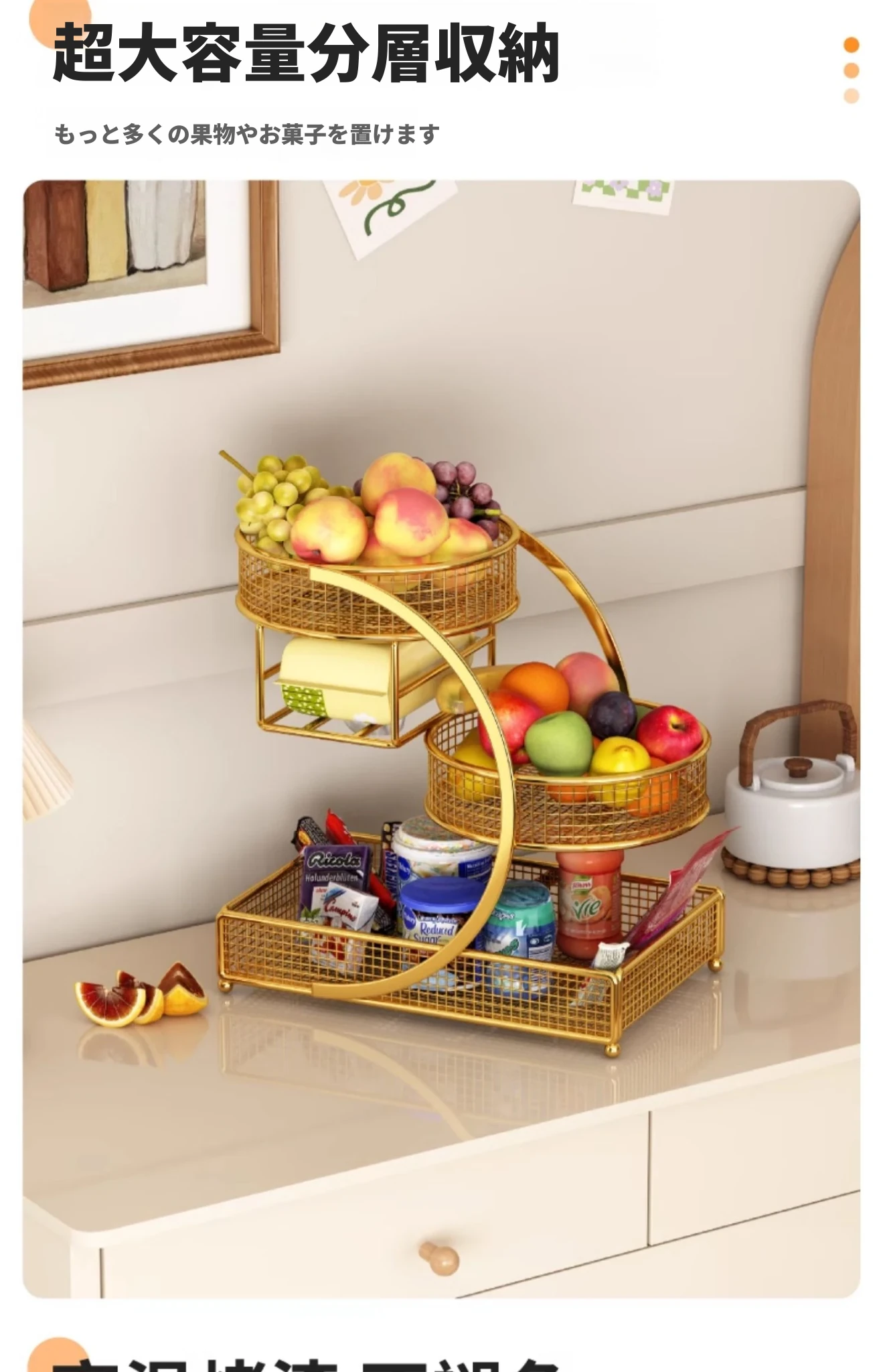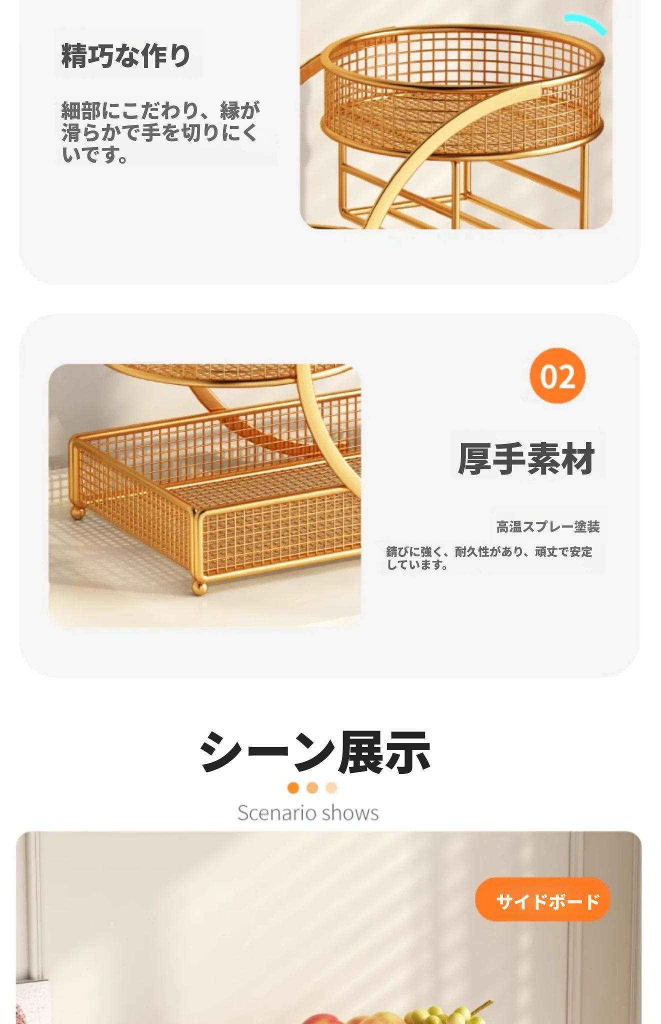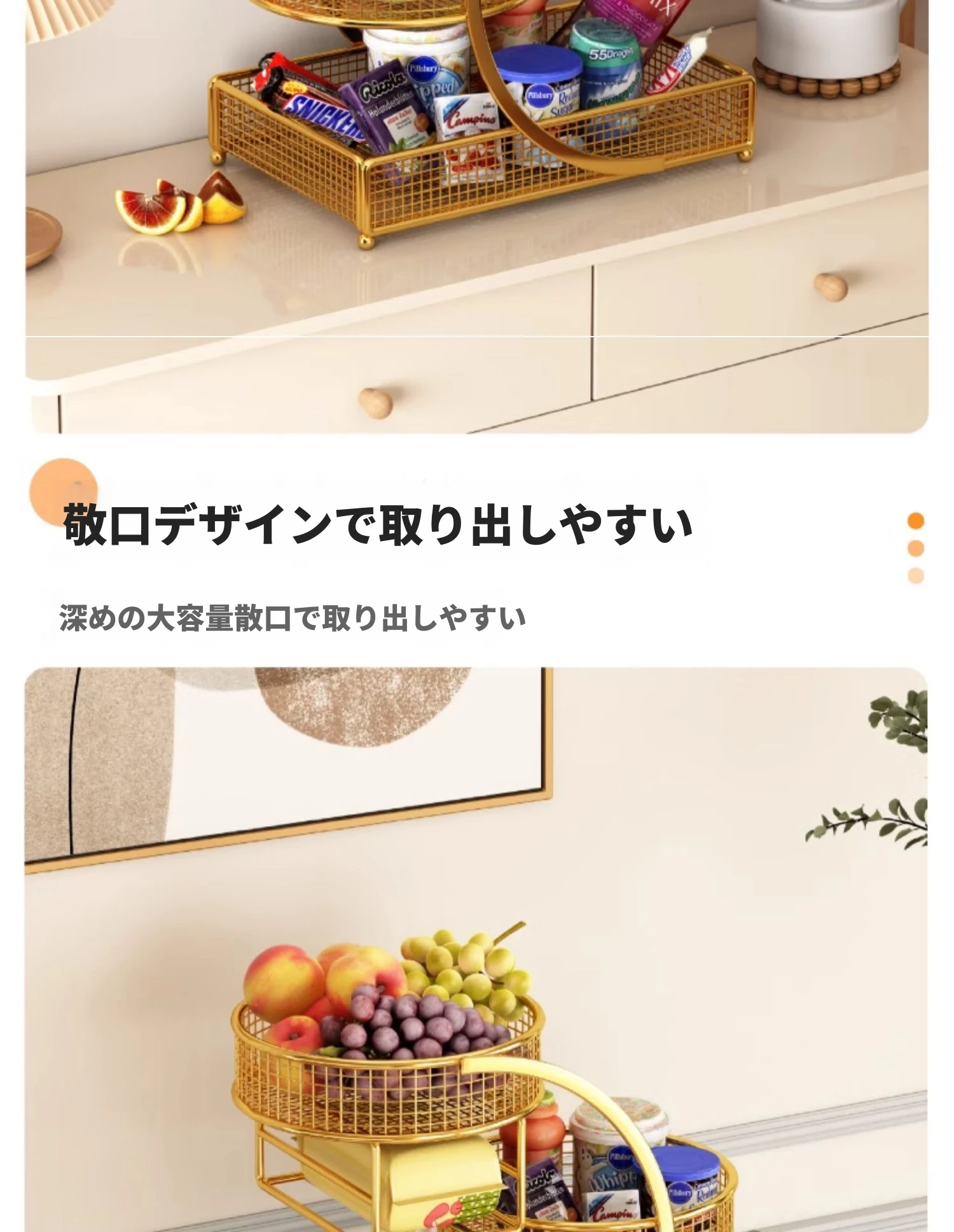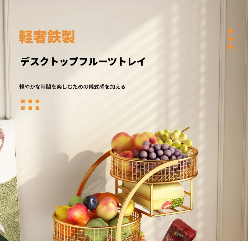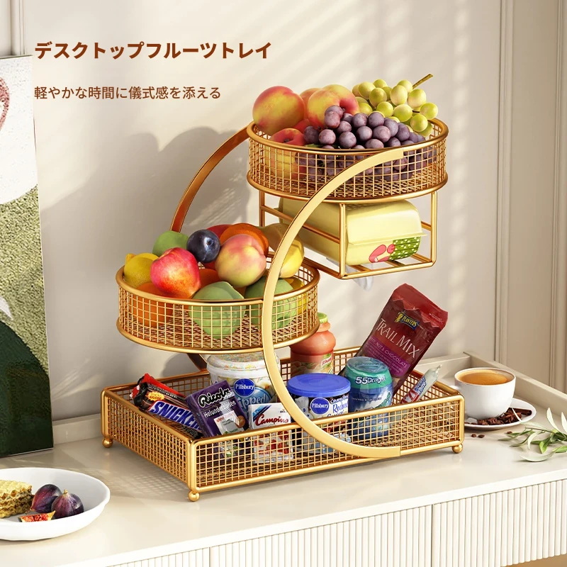 リビングルームにぴったり!高級感溢れるフルーツバスケット - テーブルを彩るおしゃれな果物・お菓子収納トレイ。おもてなしにも最適な軽やかなデザインで、スマートな収納が実現します。